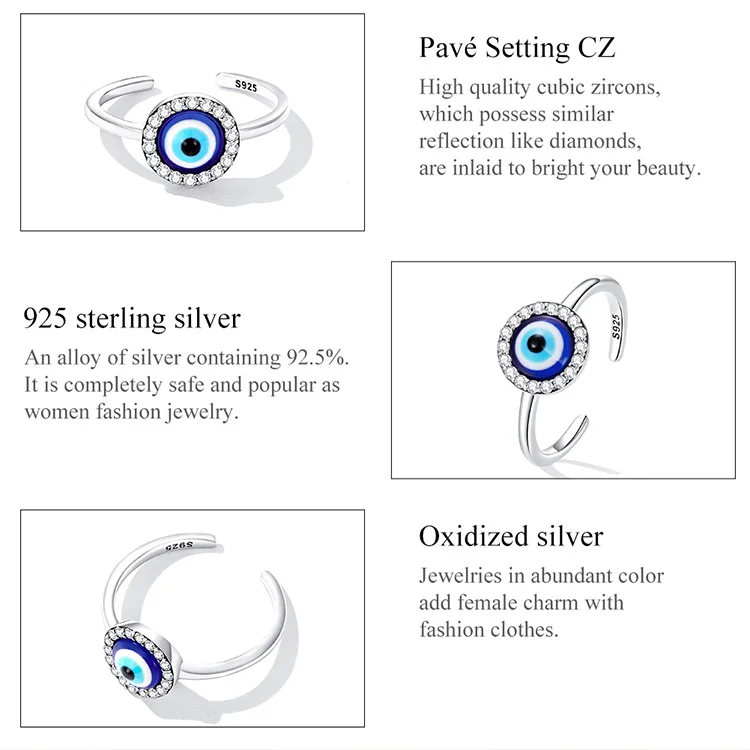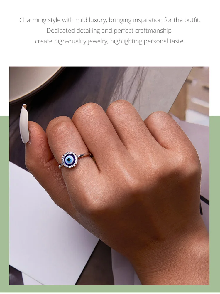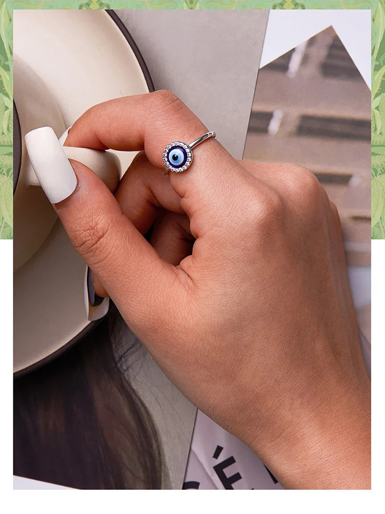 Bamoer 925 Sterling Silver Adjustable Resin Devil Eye Open Ring for Women Original Design Band Ring Fine Jewelry Wedding Gift