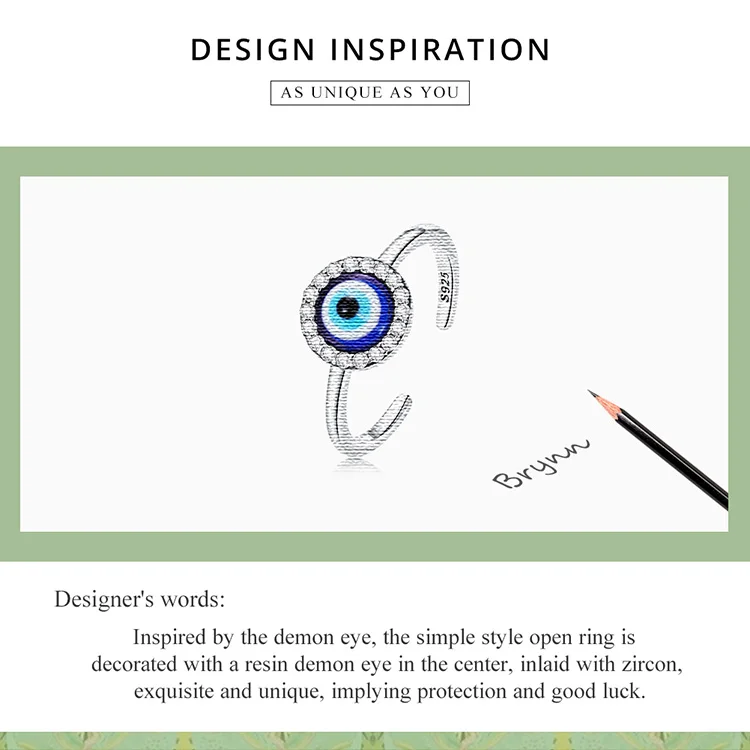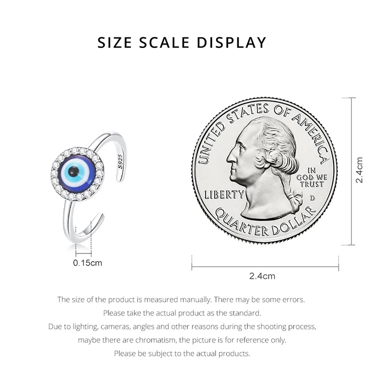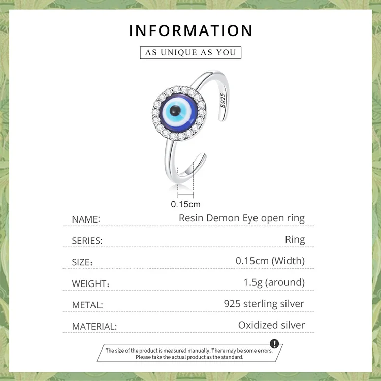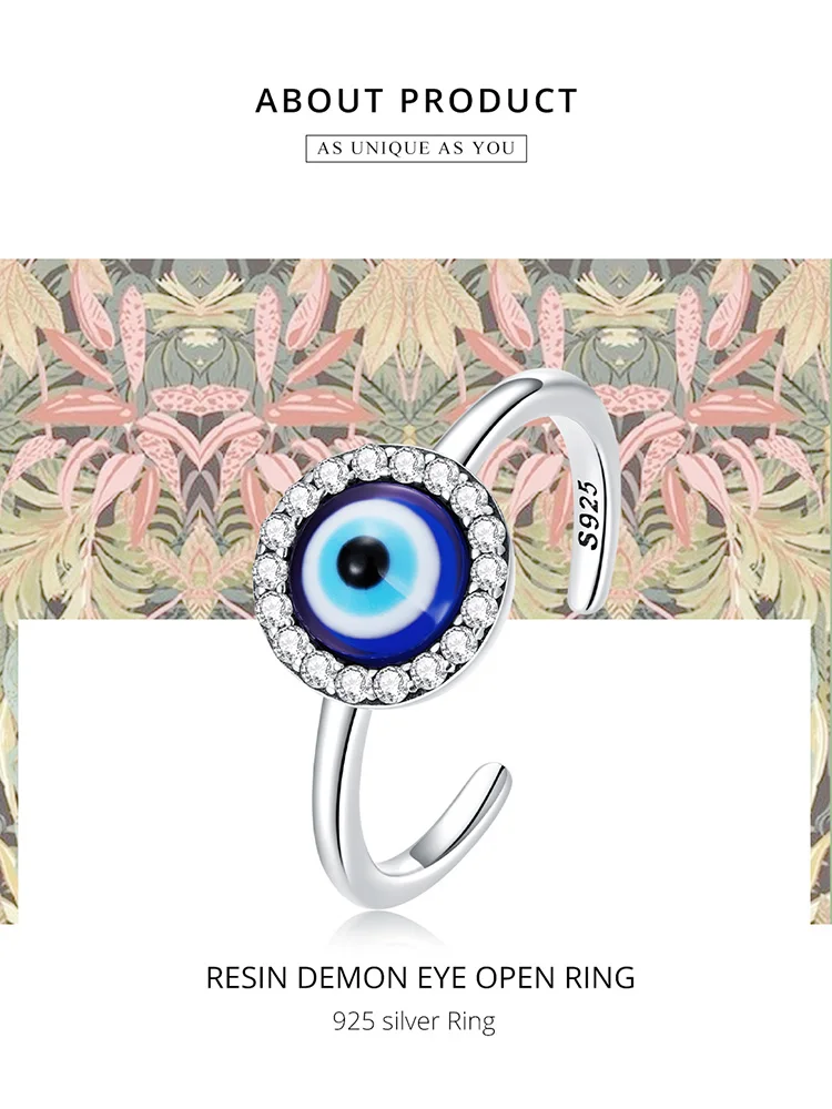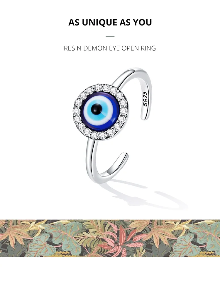❤ [Description] Inspired by the demon eye, the simple style open ring is decorated with a resin demon eye in the center, inlaid with zircon, exquisite and unique, implying protection and good luck.