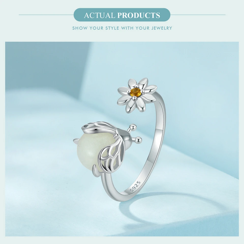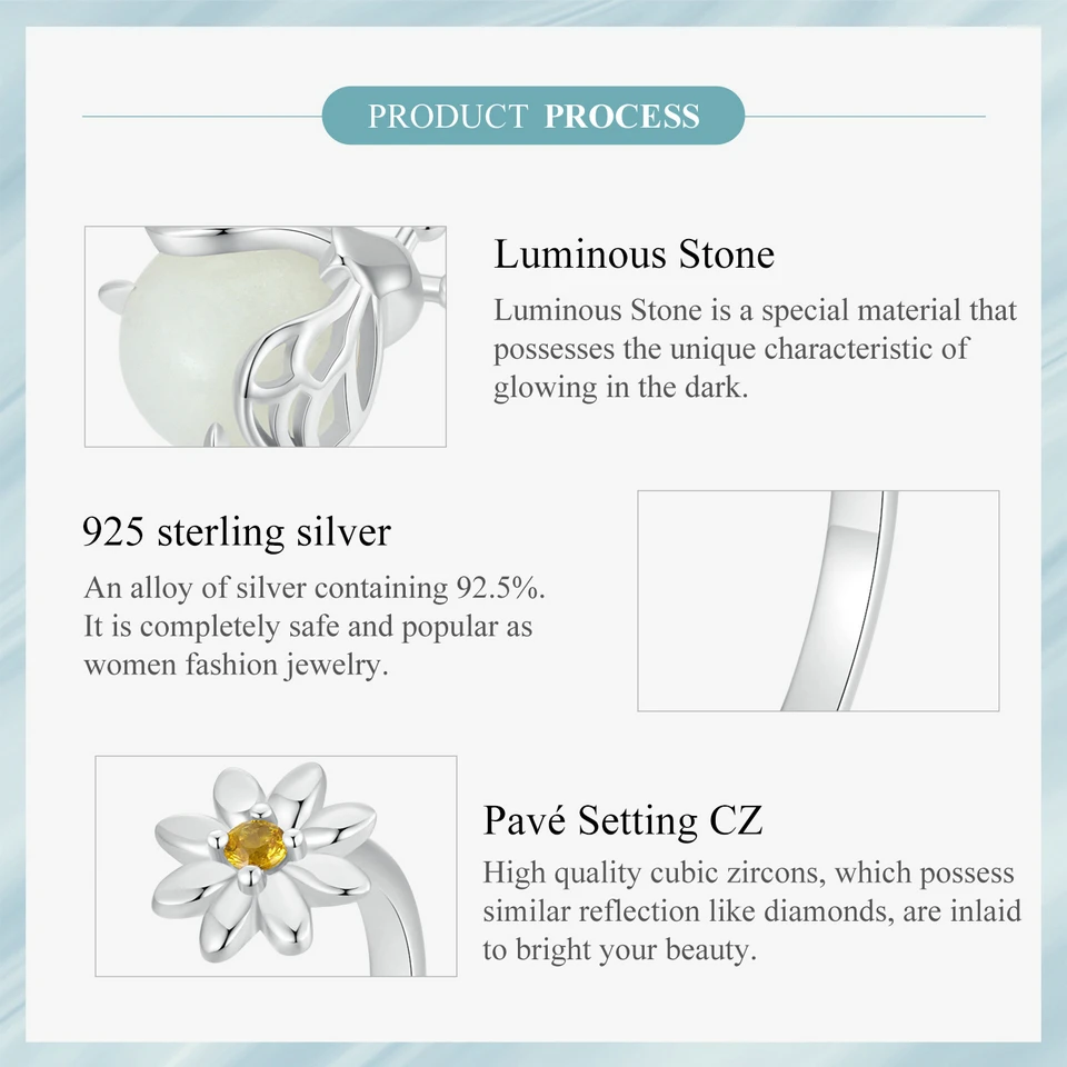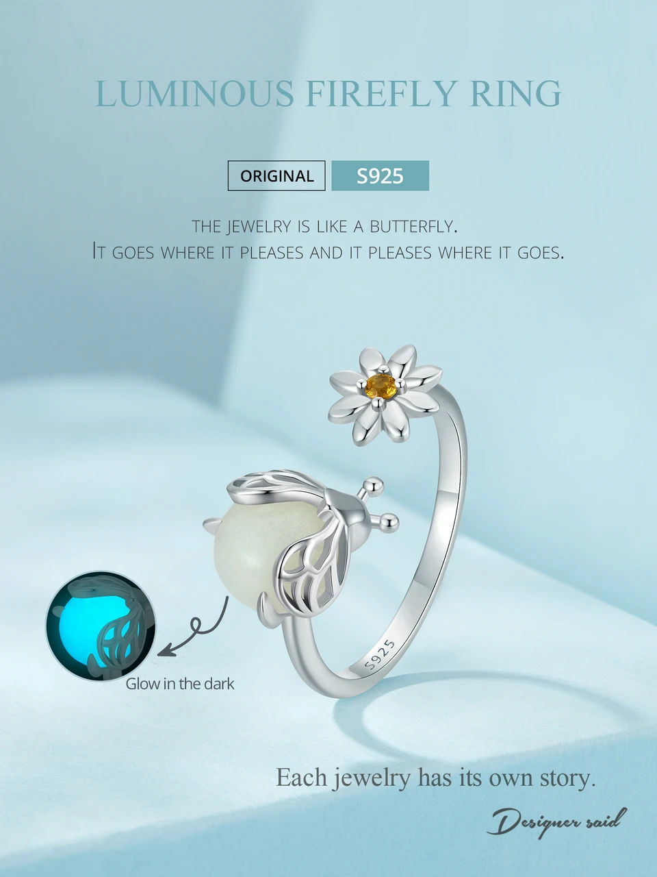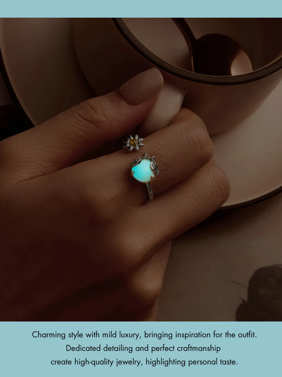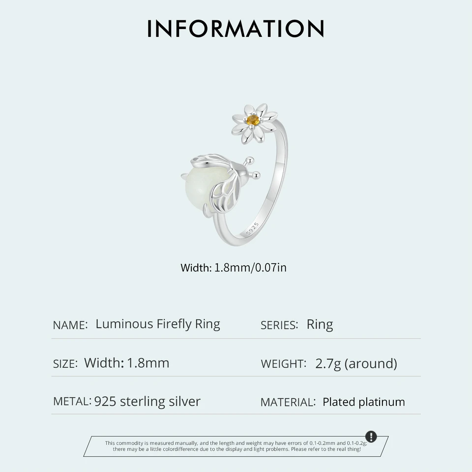 ❤ [Description] Luminous firefly daisy ring lights up your fingers. Its design inspiration is drawn from a fairy tale in the summer night, merging the night glow firefly and adorable daisy to create a magical and heartwarming ambiance. Wearing it feels like stepping into a fairy tale world beneath the starry sky.