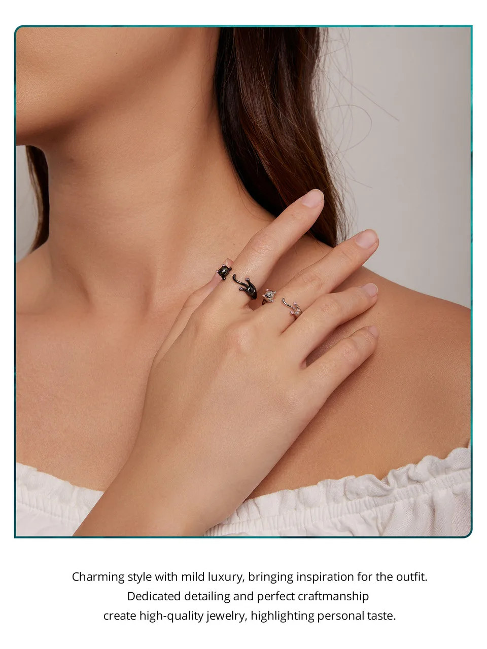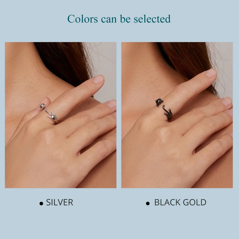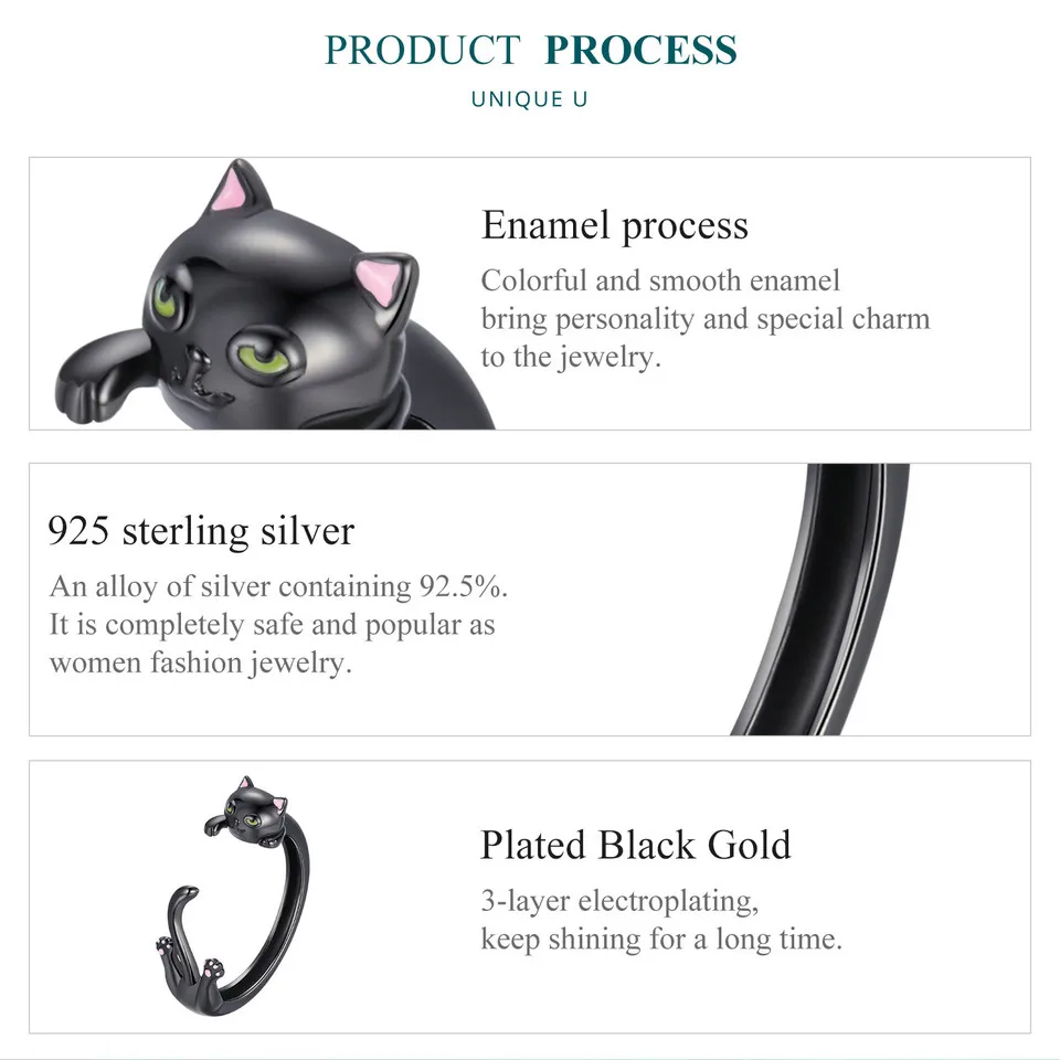 ❤ 【Description】The black cat open ring is unique and eye-catching. It is electroplated with black gold and has a delicate and shiny texture, and the pink drops of oil decorate the cat's ears and cute paws.