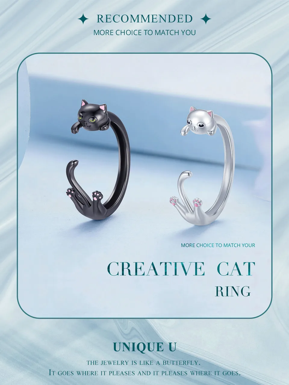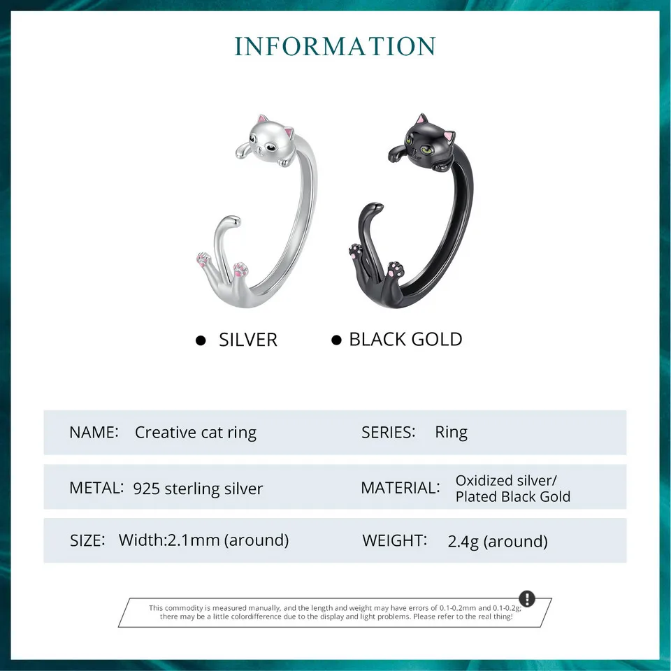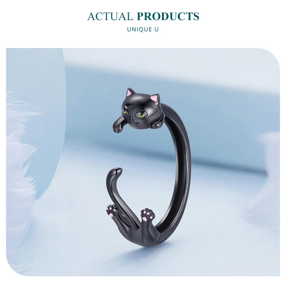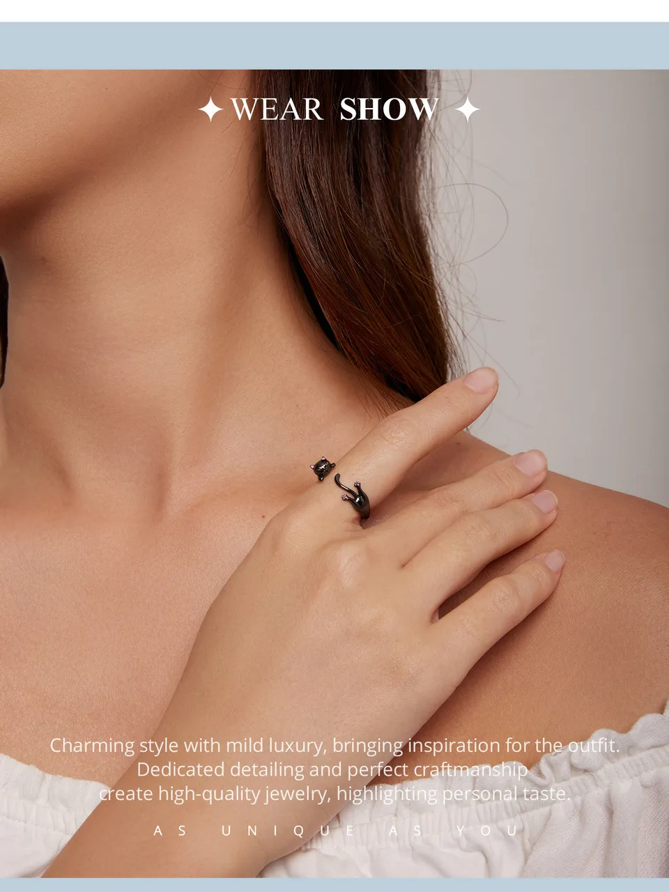 ❤ 【Description】The black cat open ring is unique and eye-catching. It is electroplated with black gold and has a delicate and shiny texture, and the pink drops of oil decorate the cat's ears and cute paws.