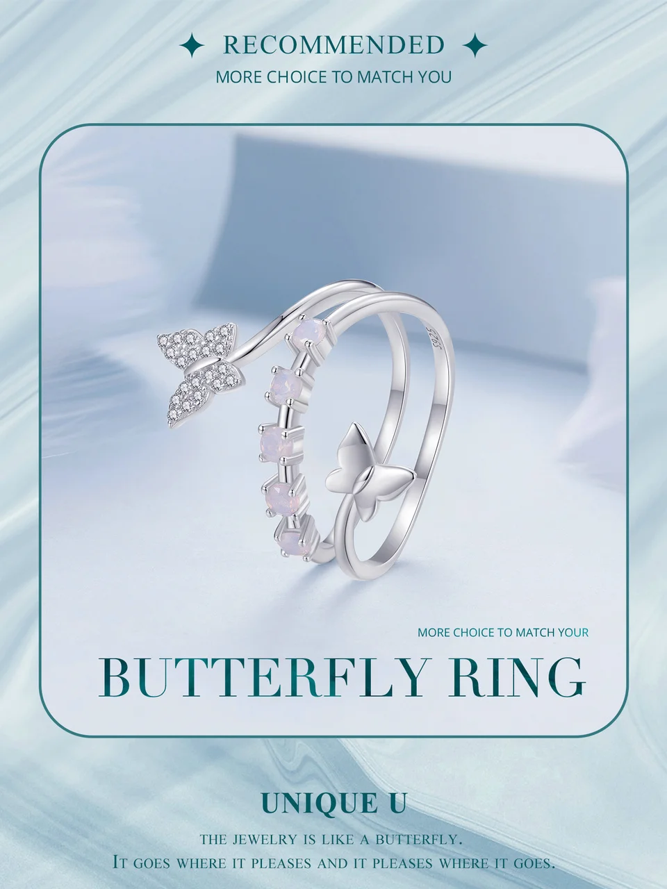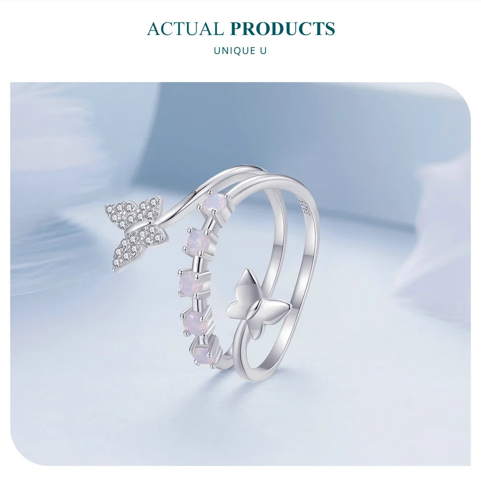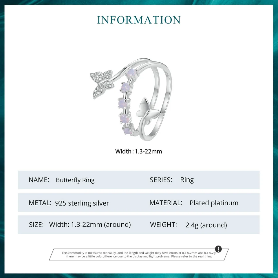 ❤ [Description]Dancing butterflies rest on the fingertips, and the ring is decorated with iridescent nano opals, showing a sweet temperament.