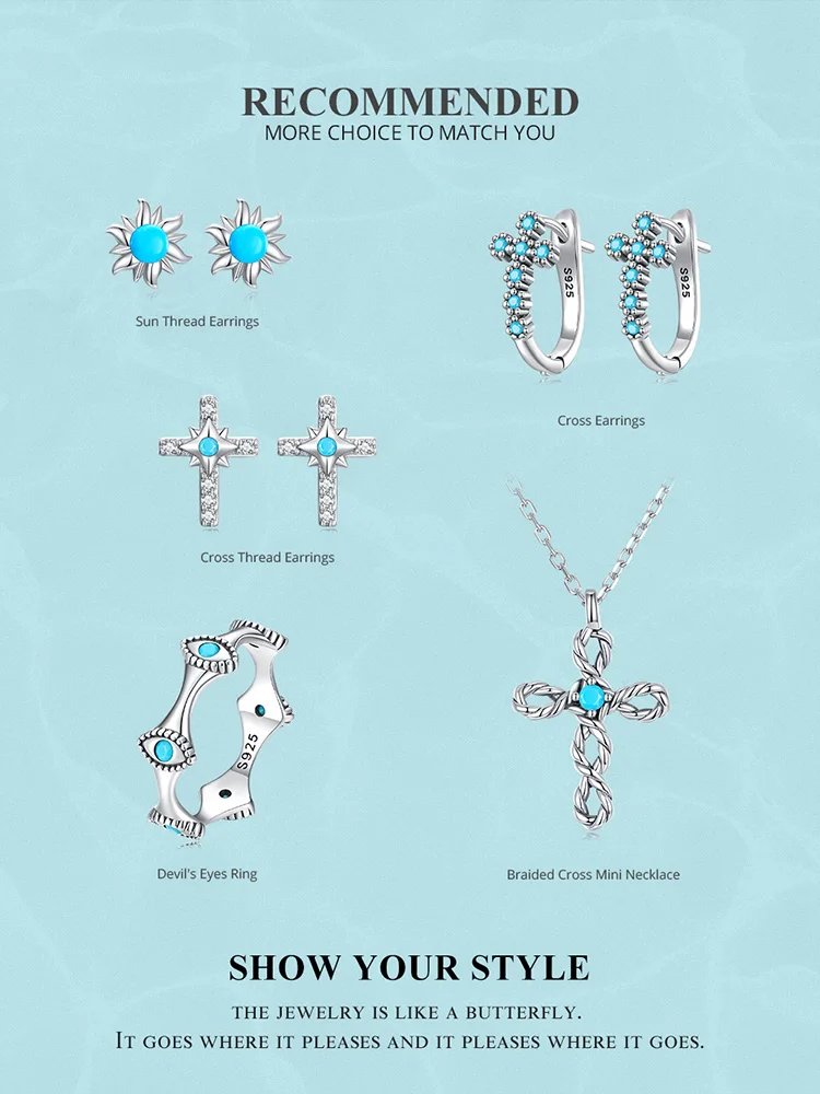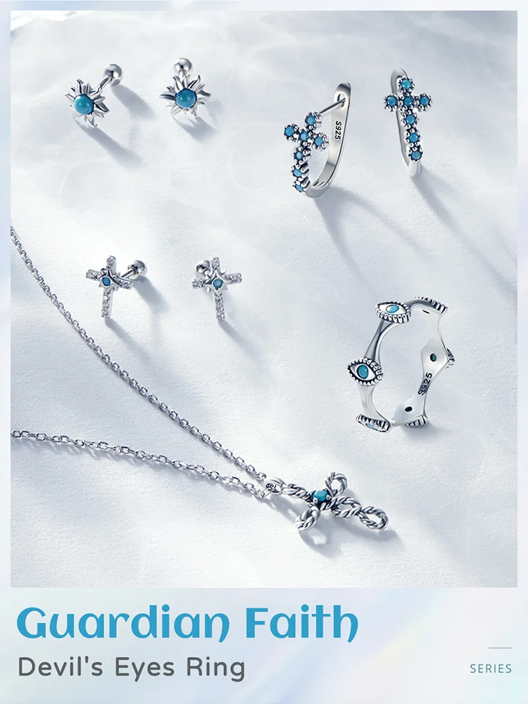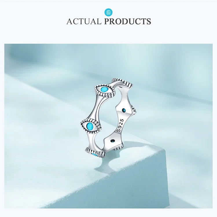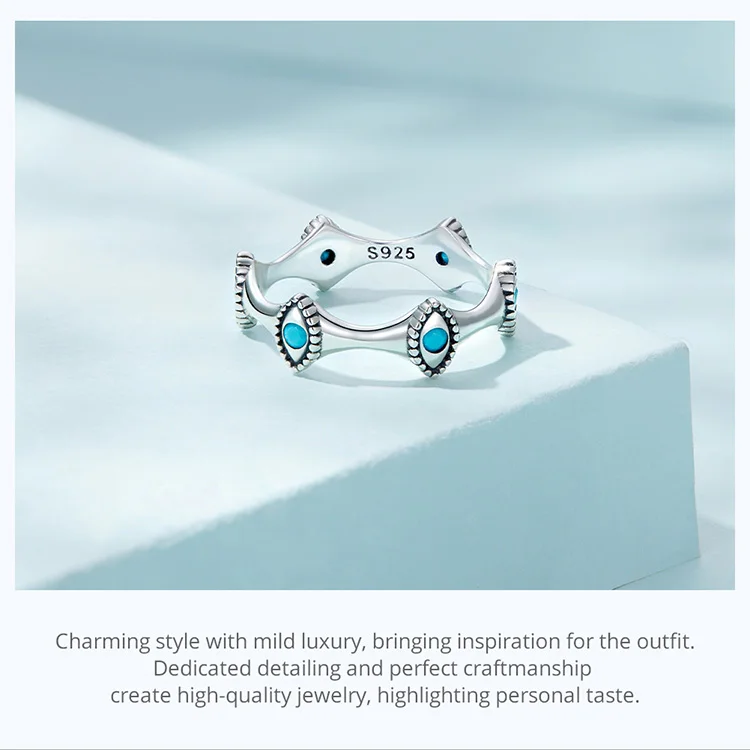Bamoer 925 Sterling Silver Devil's Eyes Ring for Women 6-8 Size Fashion Wedding Gift Eternity Bands Turquoise Anillos SCR858