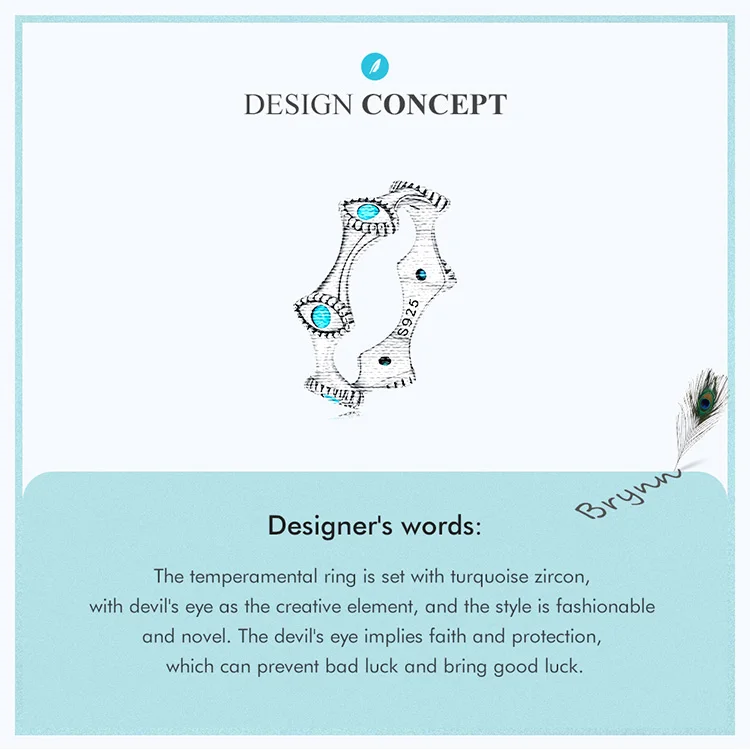 ❤ [Description] The temperamental ring is set with turquoise zircon, with devil's eye as the creative element, and the style is fashionable and novel. The devil's eye implies faith and protection, which can prevent bad luck and bring good luck.