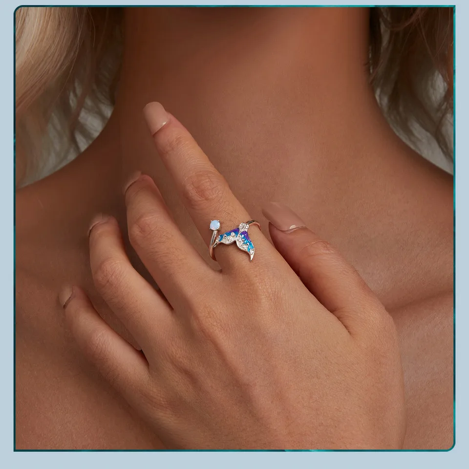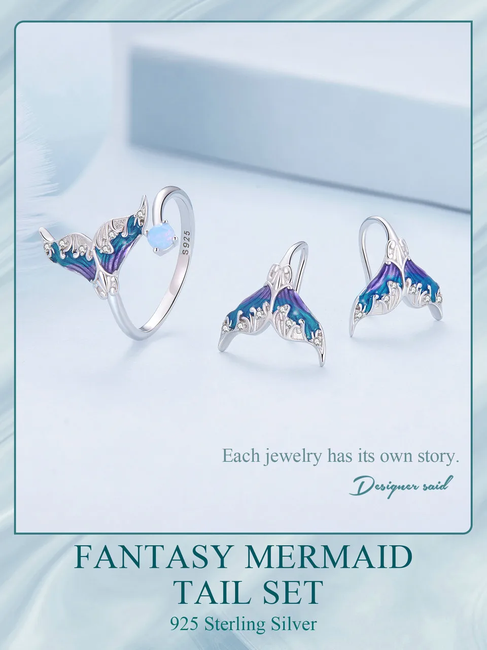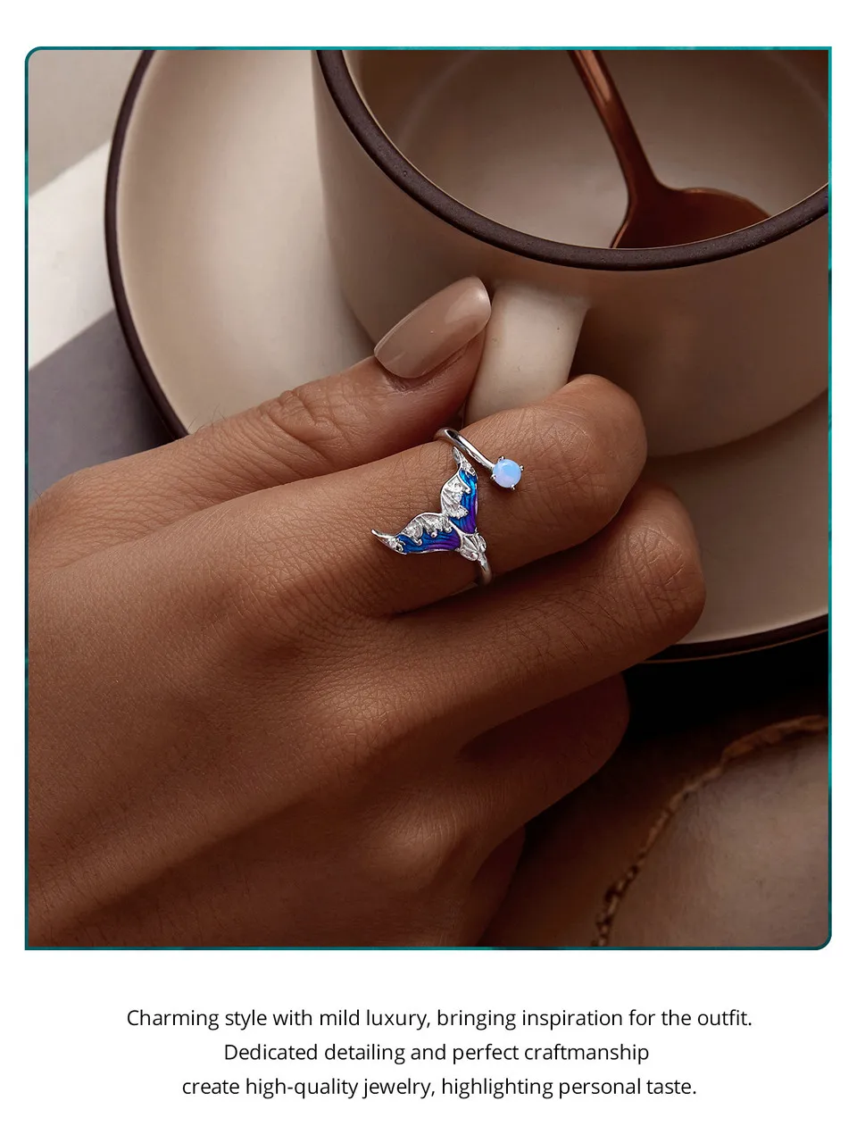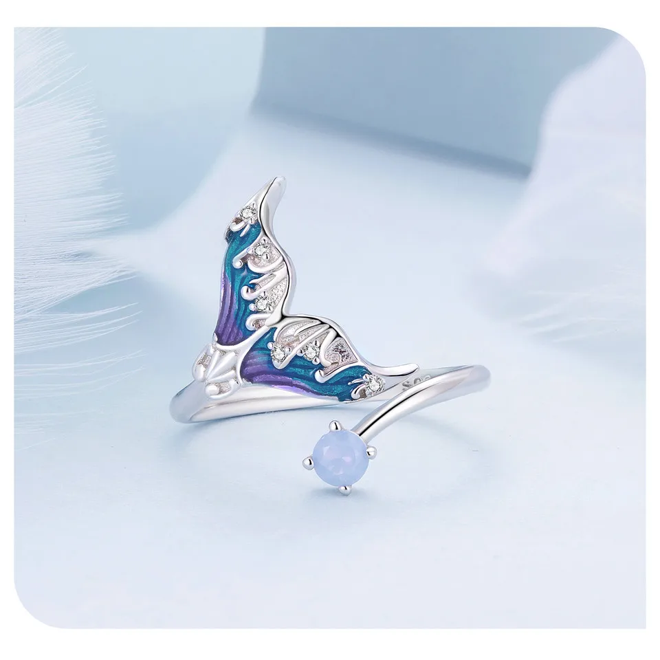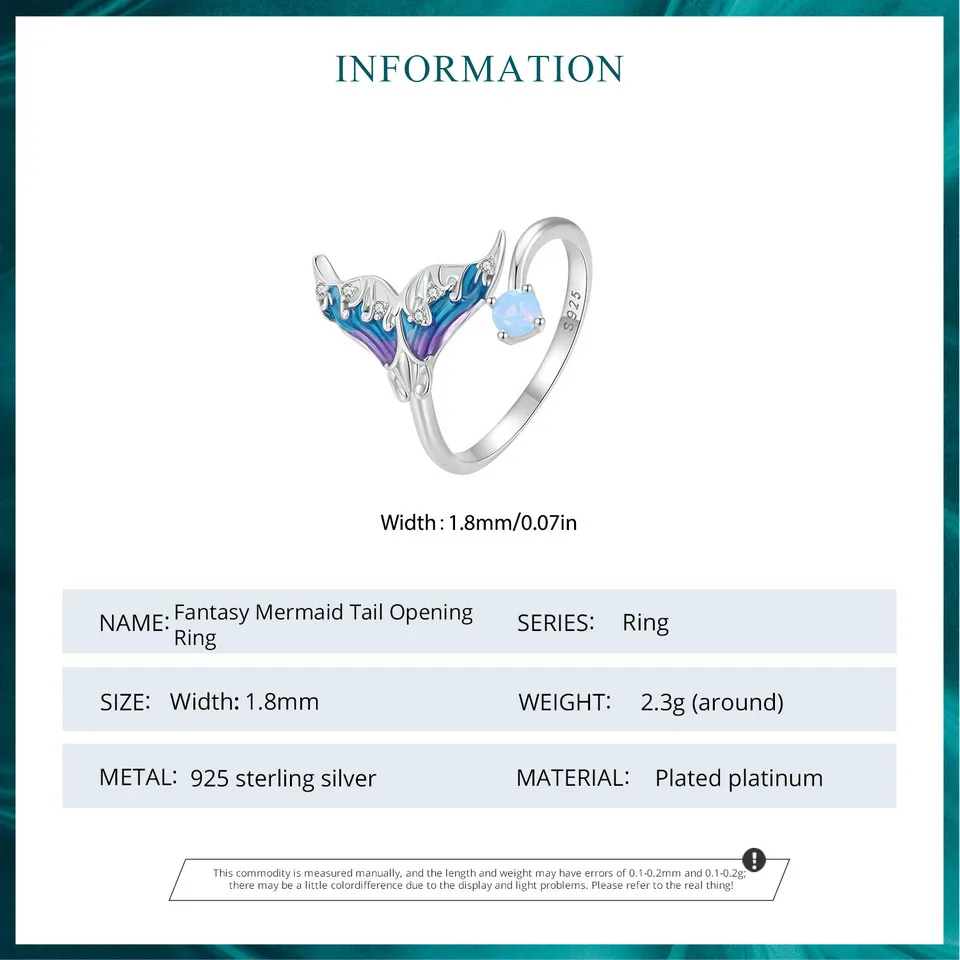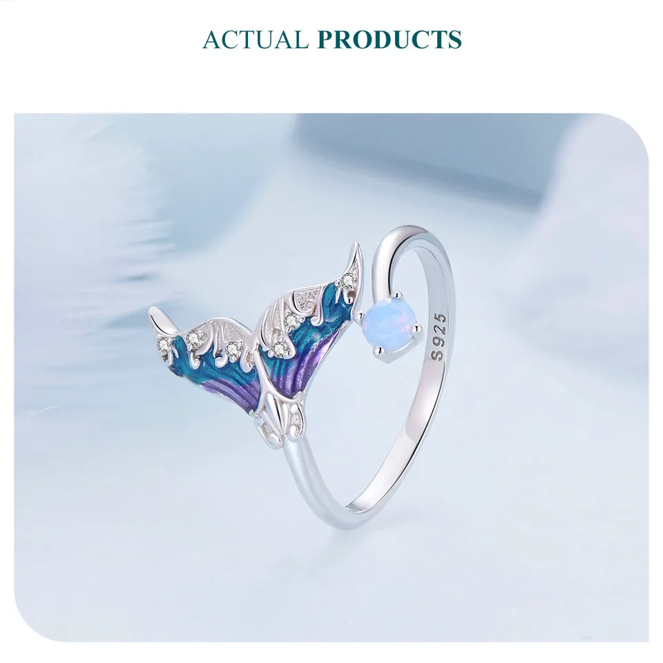 Bamoer 925 Sterling Silver Fantasy Mermaid Tail Opening Ring Colorful Enamel Adjustable Ring for Women Party Fine Jewelry