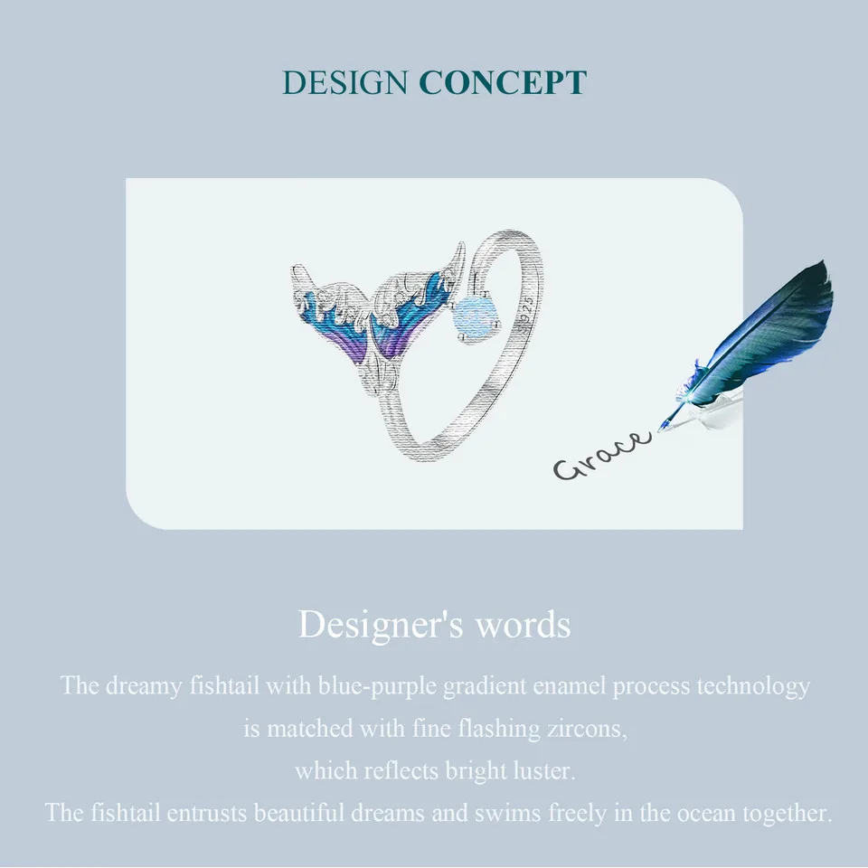 ❤ [Description] The dreamy fishtail with blue-purple gradient enamel process technology is matched with fine flashing zircons, which reflects bright luster. The fishtail entrusts beautiful dreams and swims freely in the ocean together.