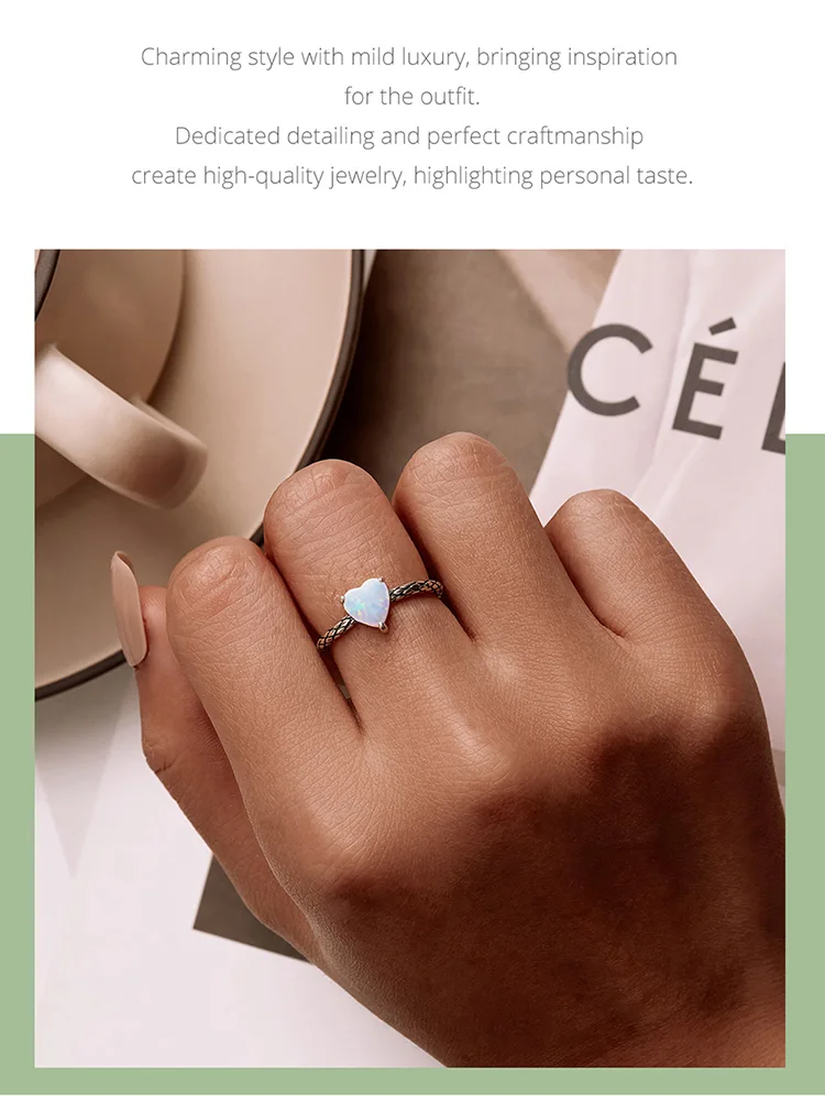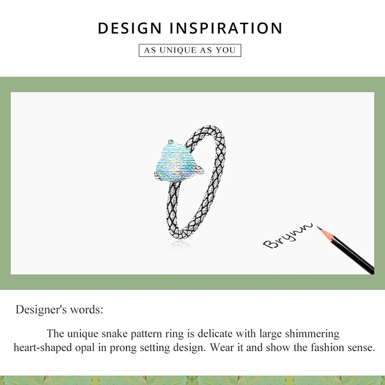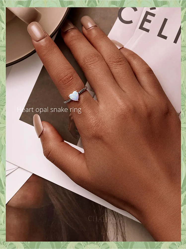 ❤ [Description] The unique snake pattern ring is delicate with large shimmering heart-shaped opal in prong setting design. Wear it and show the fashion sense.