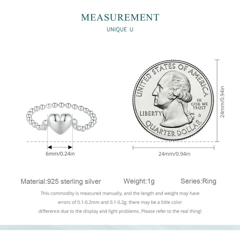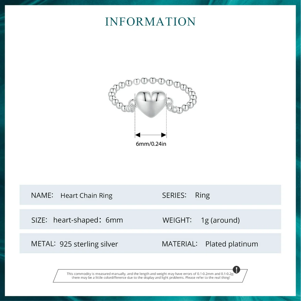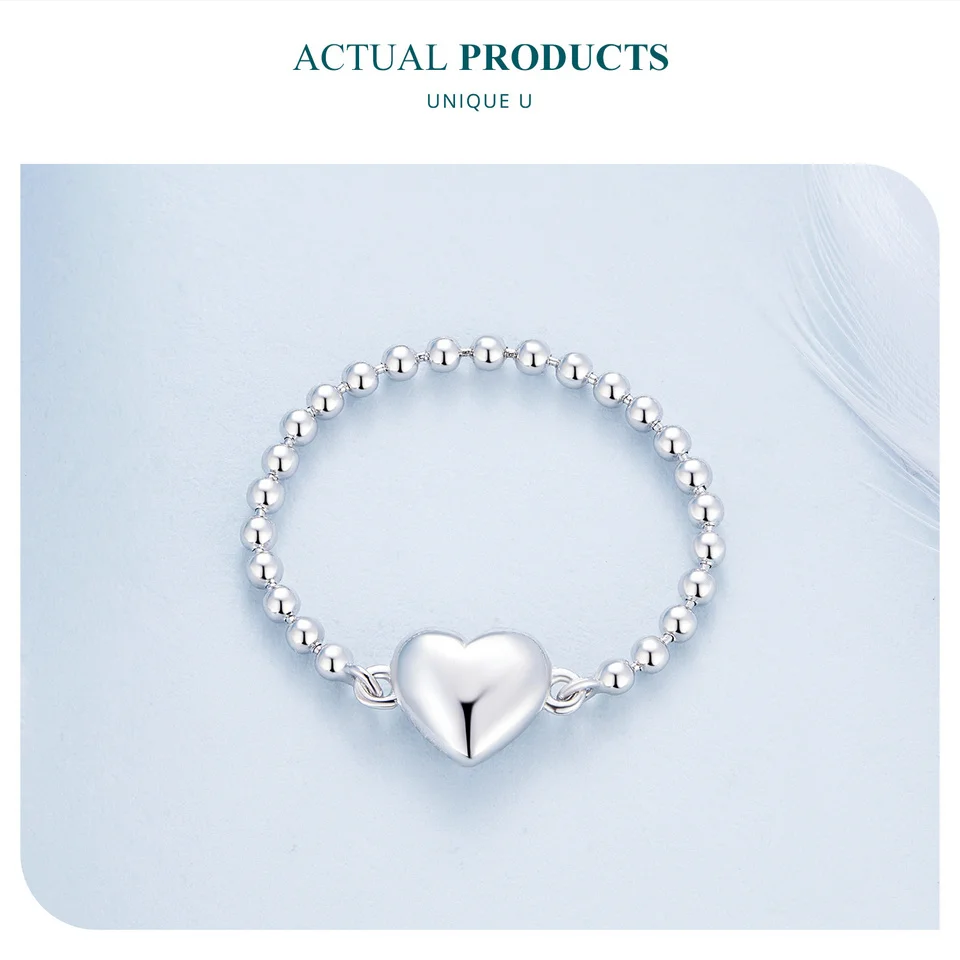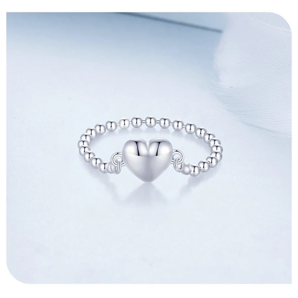 Bamoer 925 Sterling Silver Heart Ring Bead Chain Ring Original Design Fine Jewelry Gift for Women Party BSR488