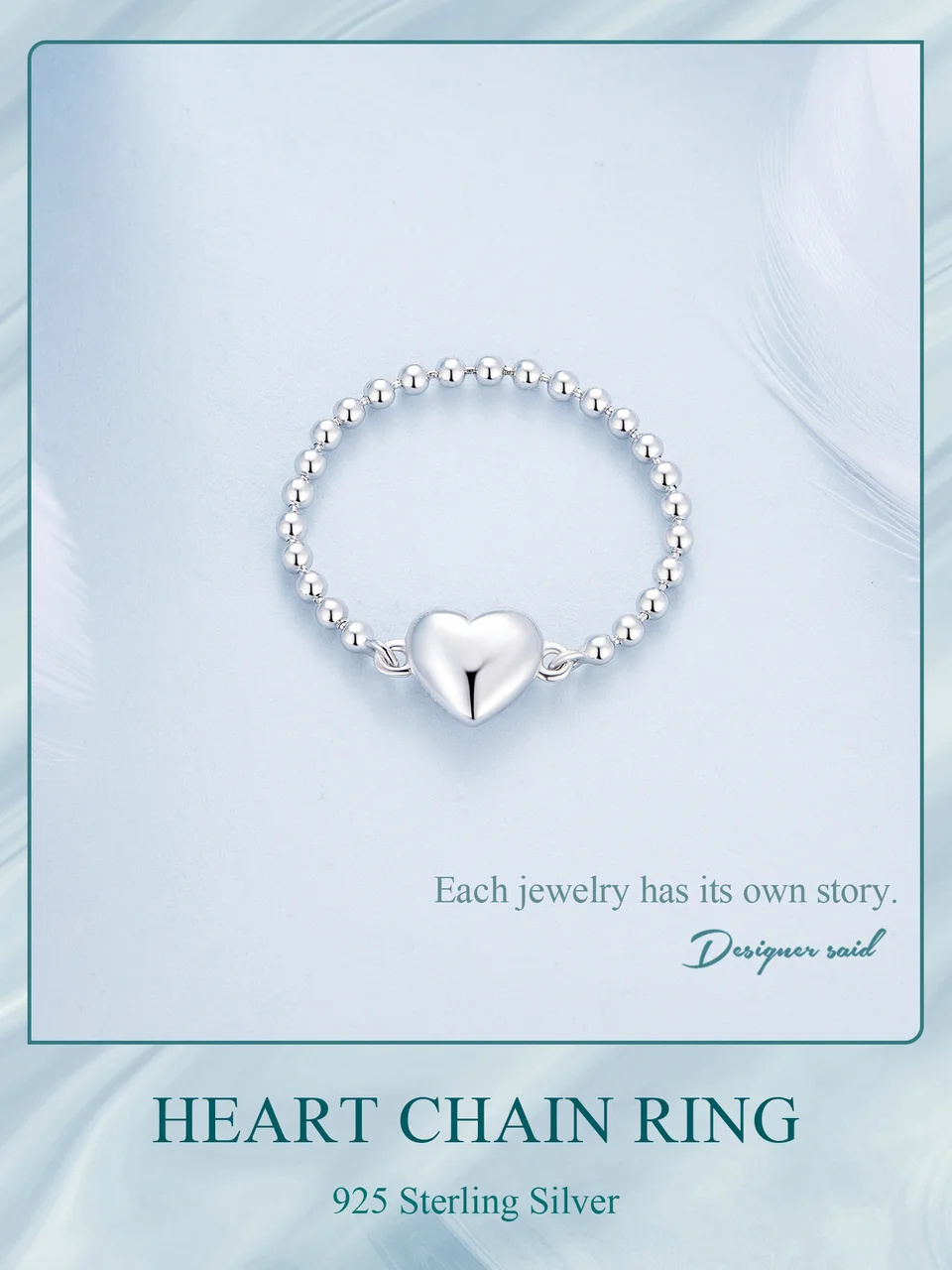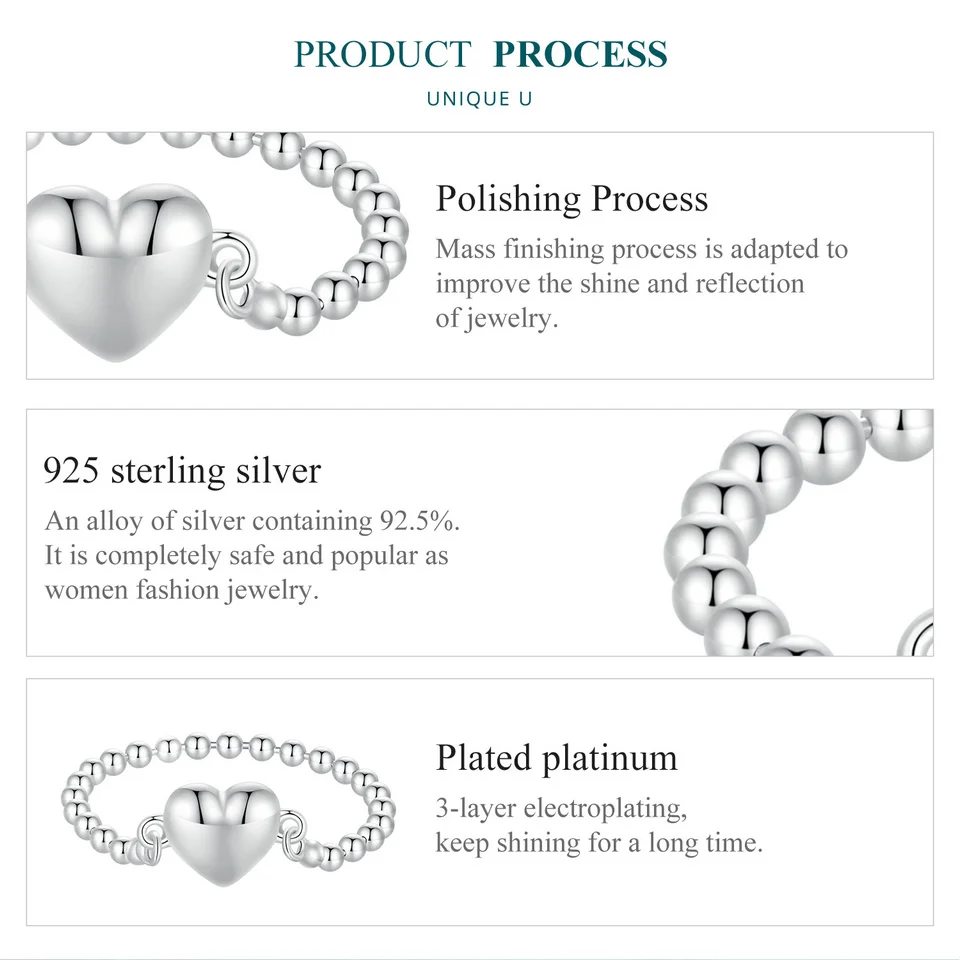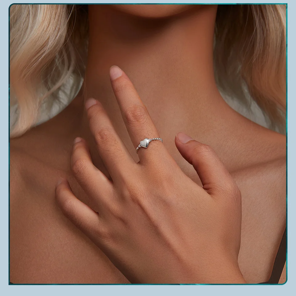 Bamoer 925 Sterling Silver Heart Ring Bead Chain Ring Original Design Fine Jewelry Gift for Women Party BSR488
