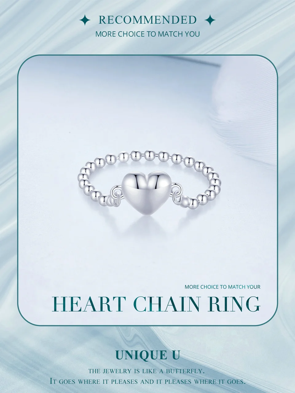 ❤ [Description] A heart chain ring, representing love, intertwined love, romantic and sweet.