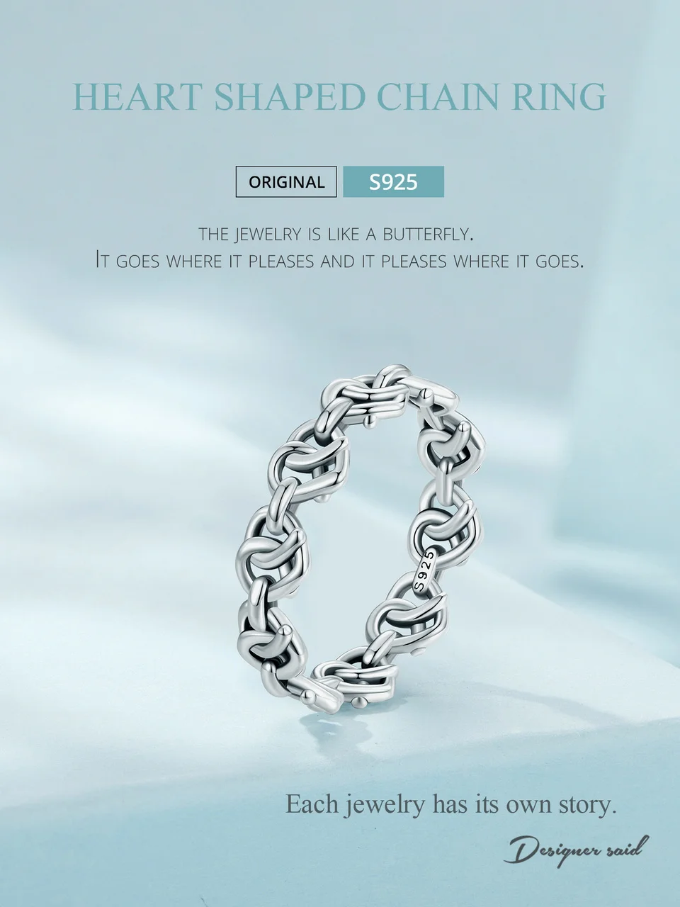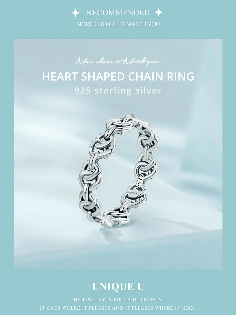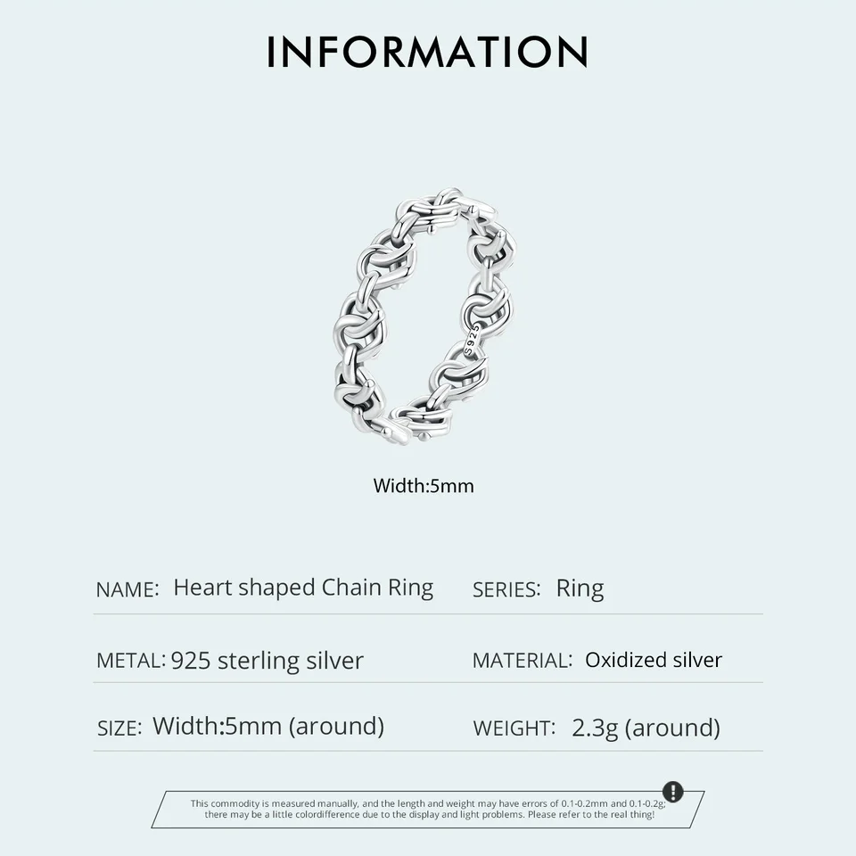 ❤【Description】Heart-shaped chain ring, the hearts are intertwined, representing the love that goes in both directions. Beautiful love will always meet and approach each other, which is excitement and ecstasy.