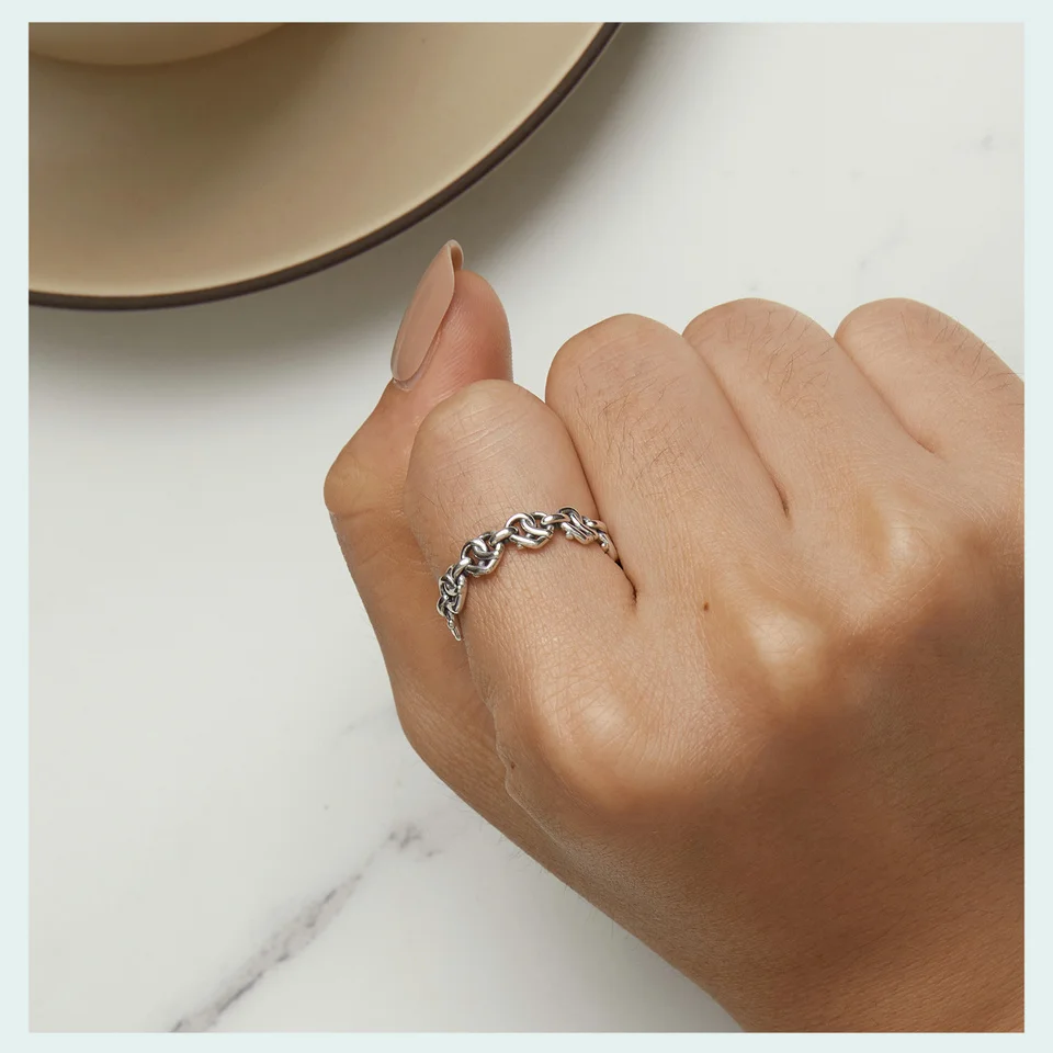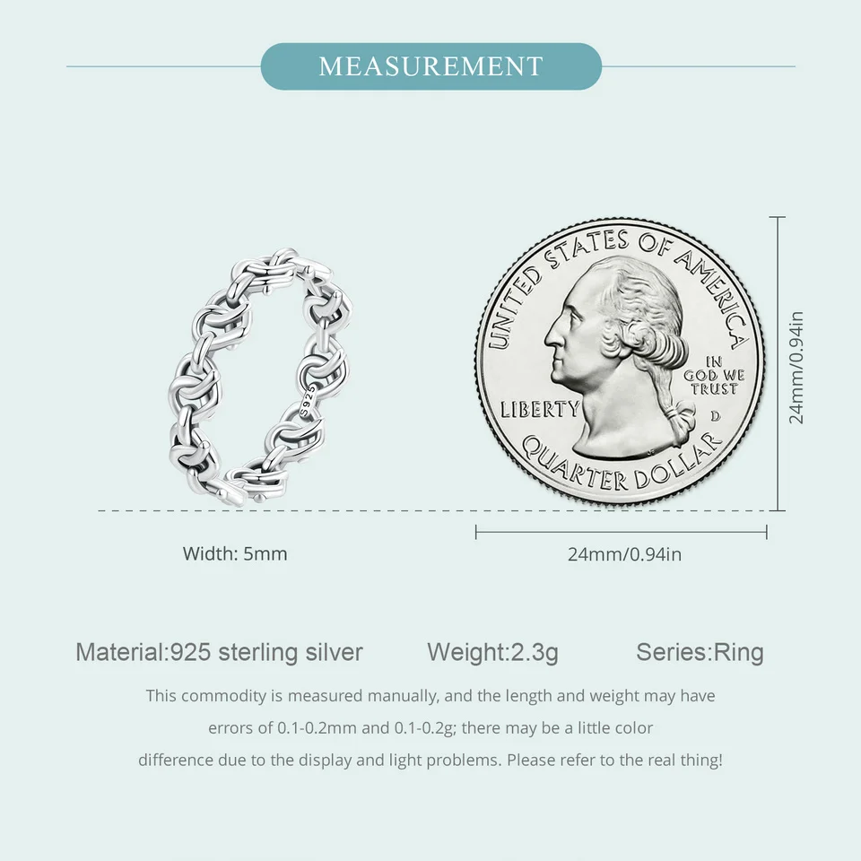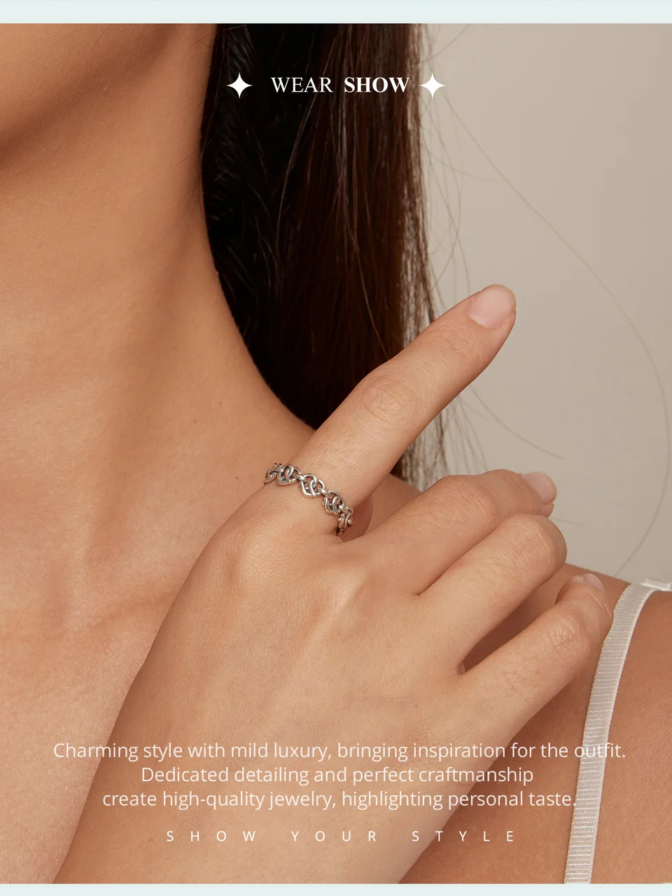 ❤【Description】Heart-shaped chain ring, the hearts are intertwined, representing the love that goes in both directions. Beautiful love will always meet and approach each other, which is excitement and ecstasy.