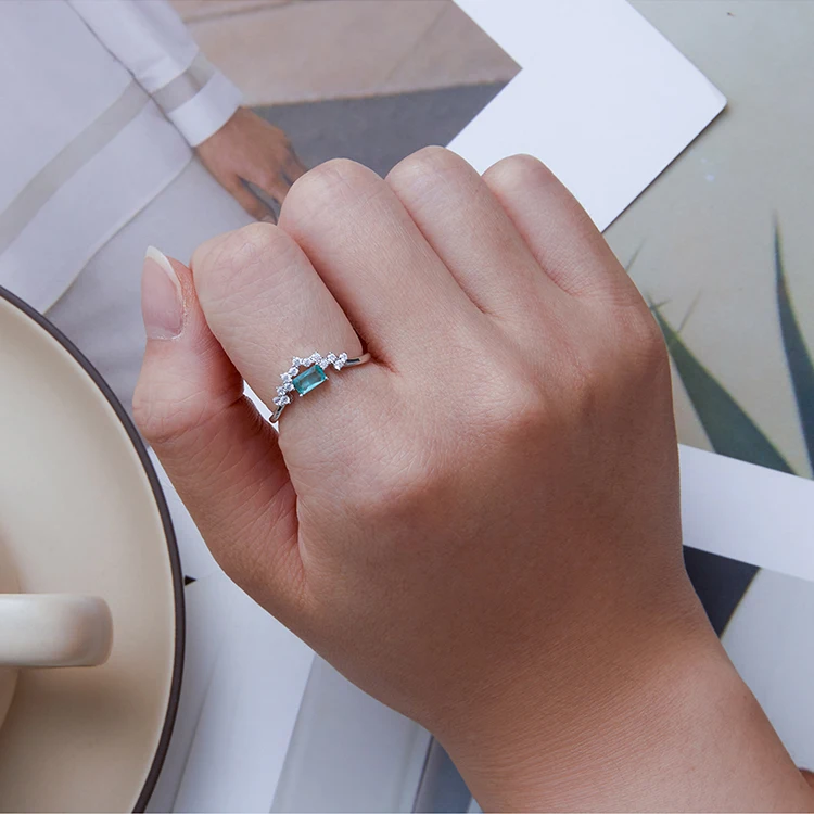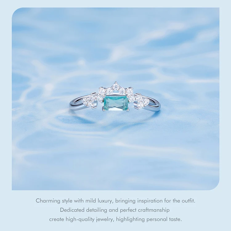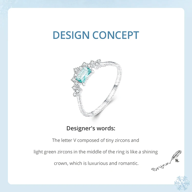 ❤ [Description] The letter V composed of tiny zircons and light green zircons in the middle of the ring is like a shining crown, which is luxurious and romantic.