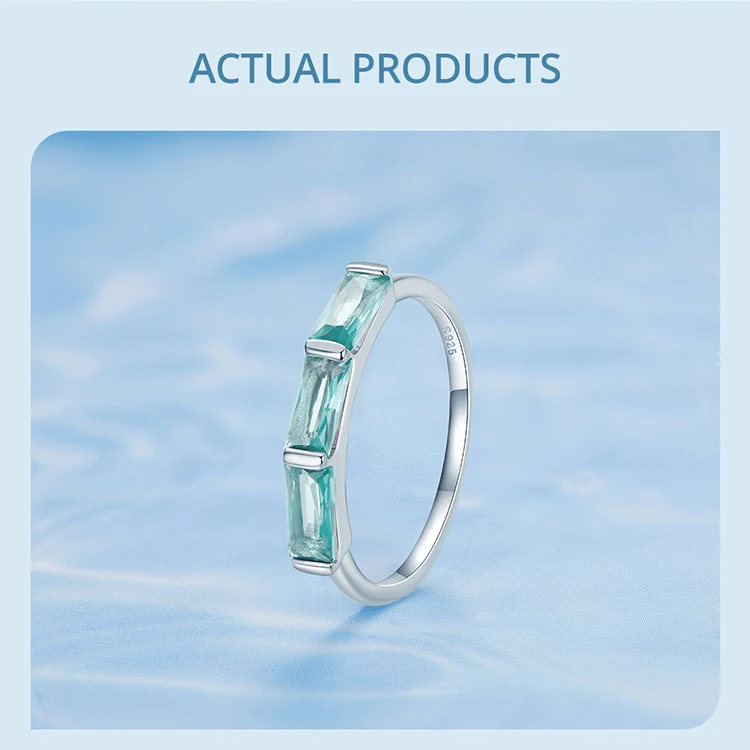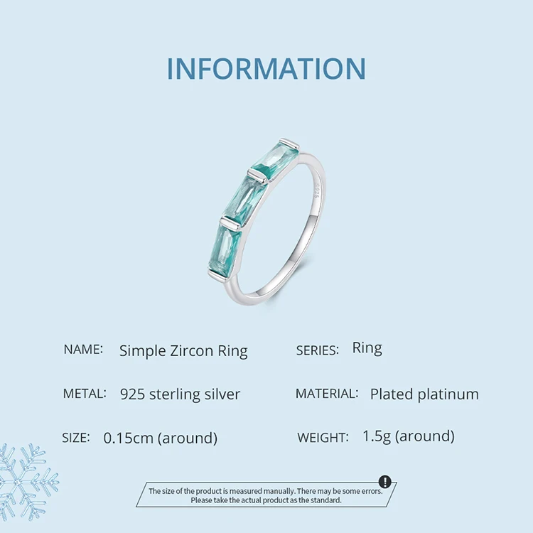 ❤ [Description] The ring takes geometry as the element. The skin-friendly plain silver ring with rectangular light green zircons is simple and fashionable.