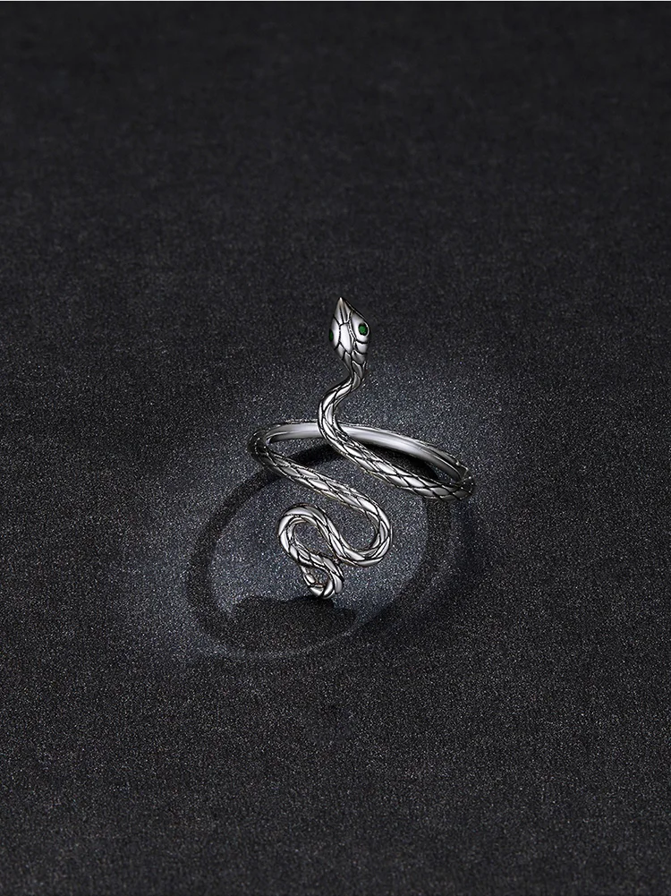 ❤ 【Description】Inspired by the element of the snake, the snake body is rich in natural texture, vivid and lifelike; and the eyes of the silver snake are dotted with black zircons, exquisitely shining. The snake ring has a unique shape and a retro personality.