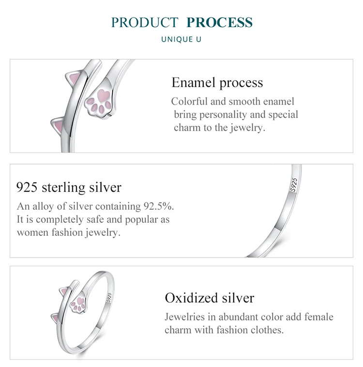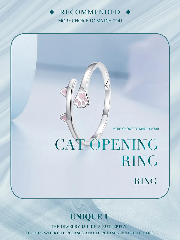 ❤ [Description] This simple open ring is made of cat ears and cat claws, making the ring cute and lovable, and sprouting your girly heart.