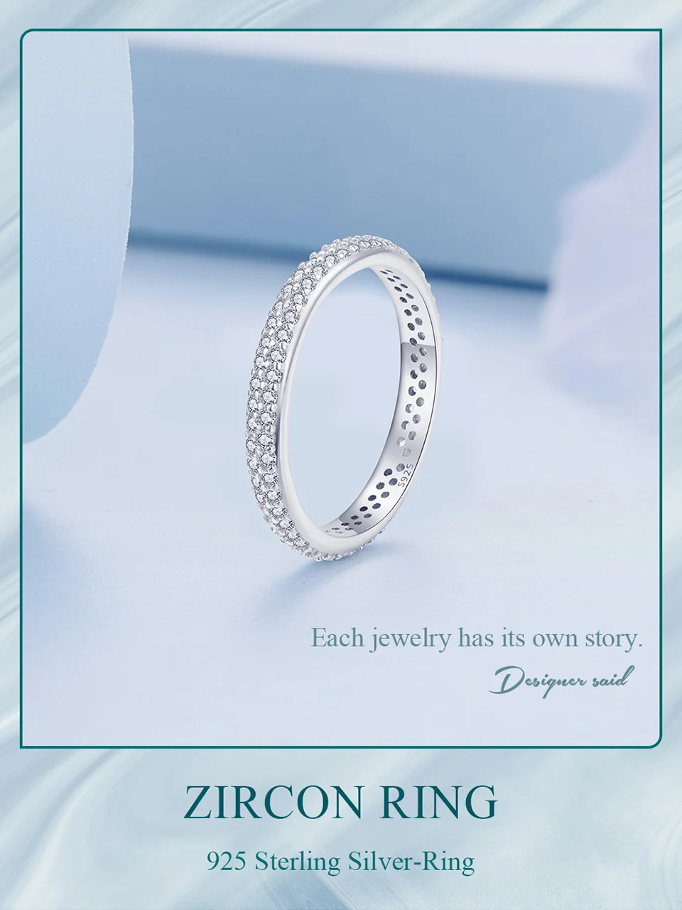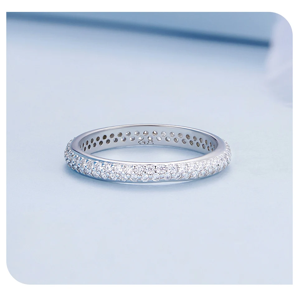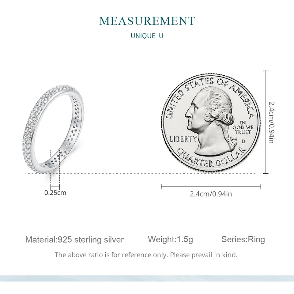 Bamoer 925 Sterling Silver Shiny Zircon Finger Ring Simple Eternity Band For Women Valentine's Day Gift Fine Jewelry BSR365