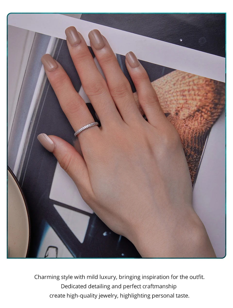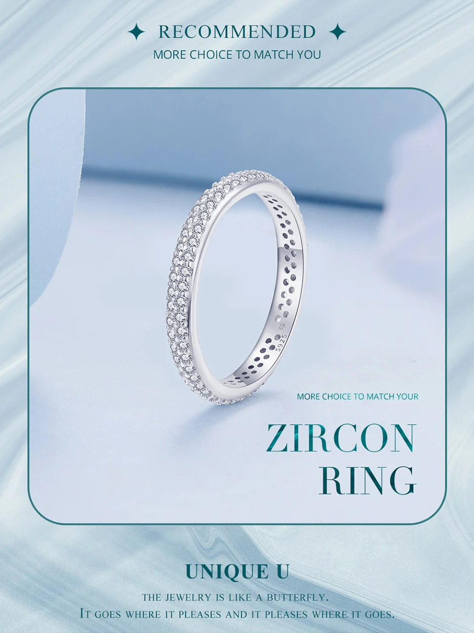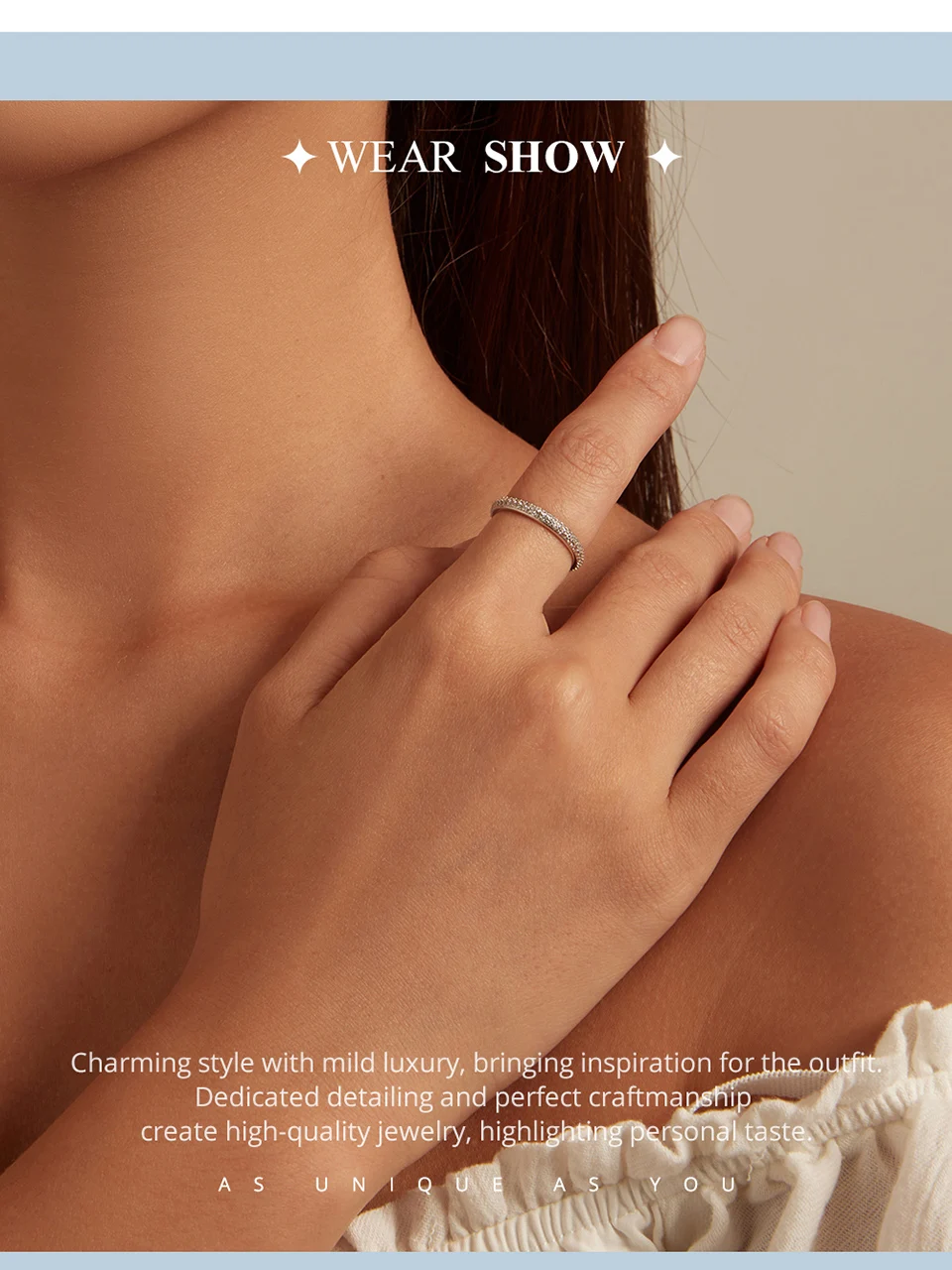 Bamoer 925 Sterling Silver Shiny Zircon Finger Ring Simple Eternity Band For Women Valentine's Day Gift Fine Jewelry BSR365