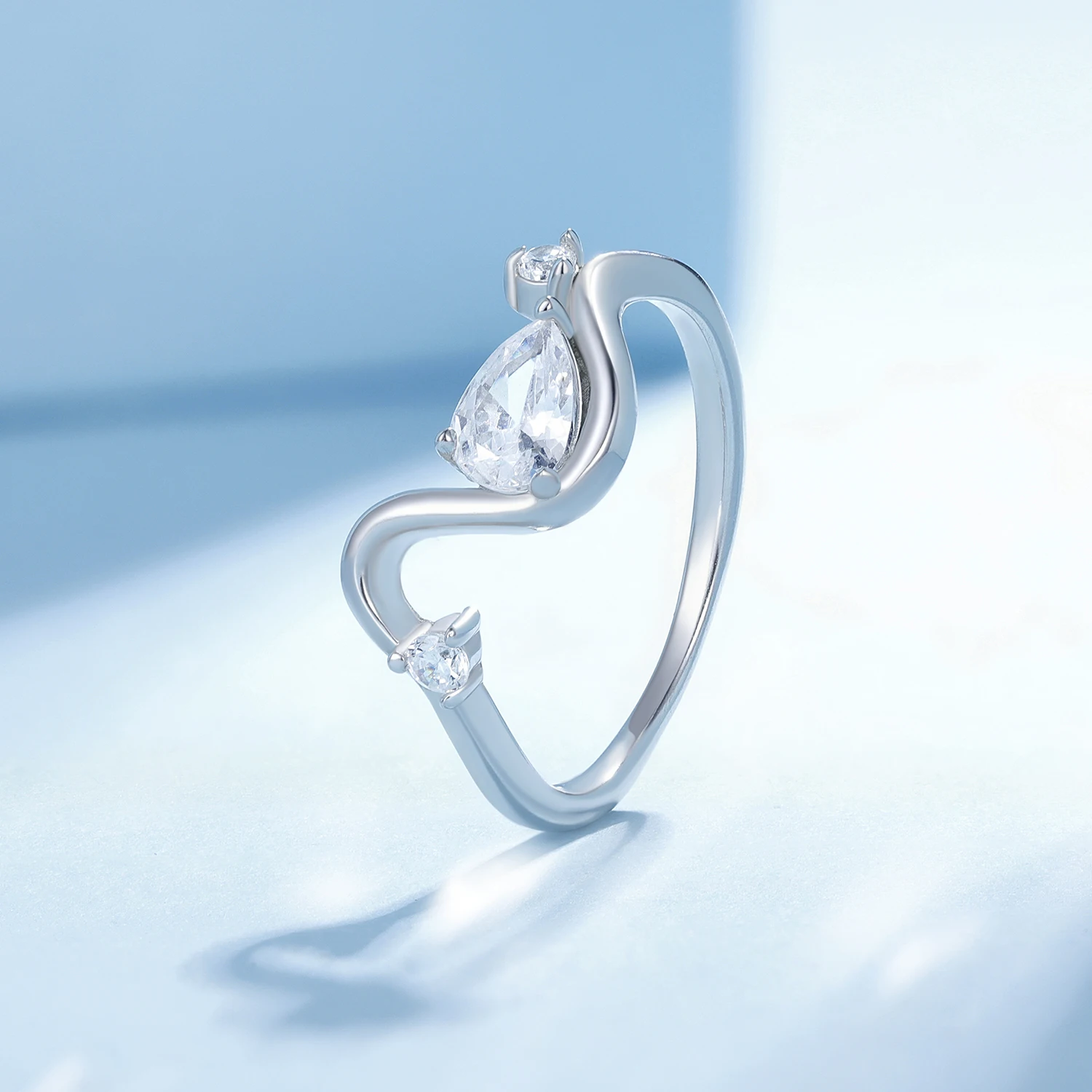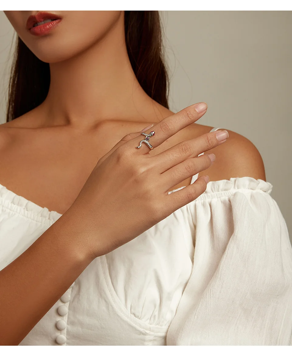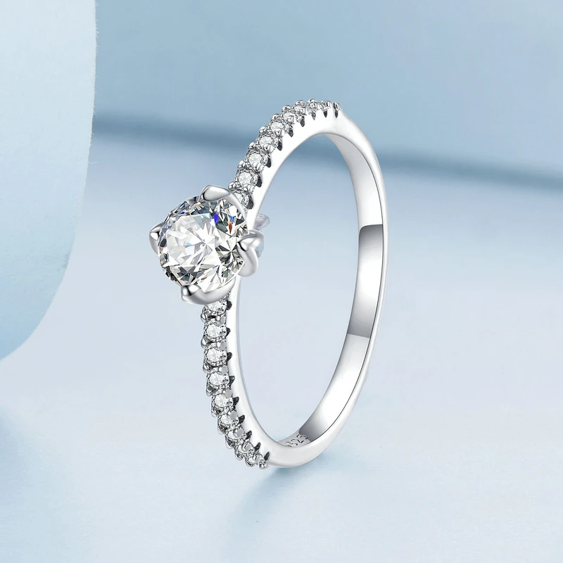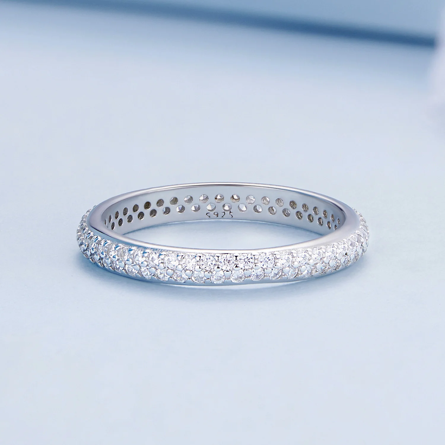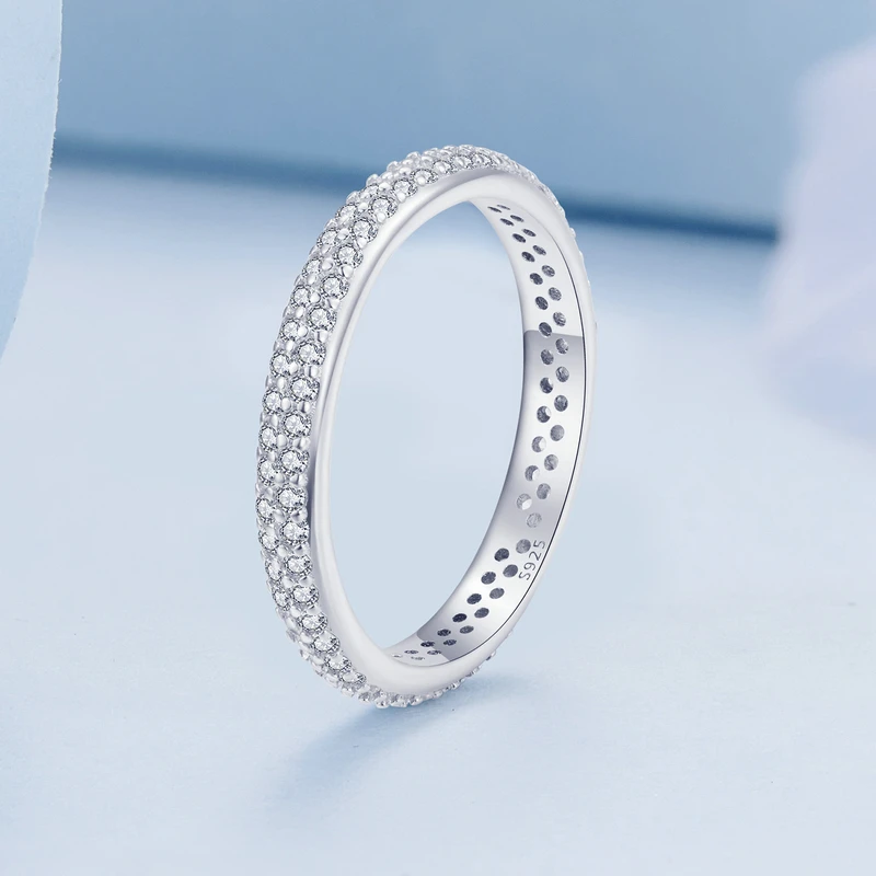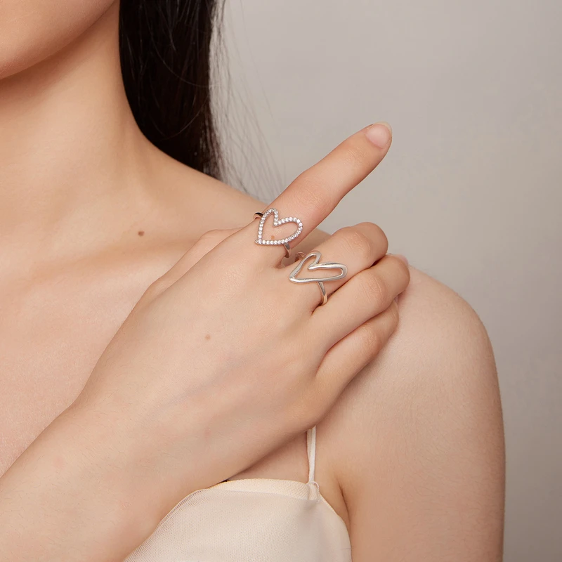 Bamoer 925 Sterling Silver Stackable Zircon Finger Ring Hollow Heart Ring for Women Fine Jewelry Birthday Gift