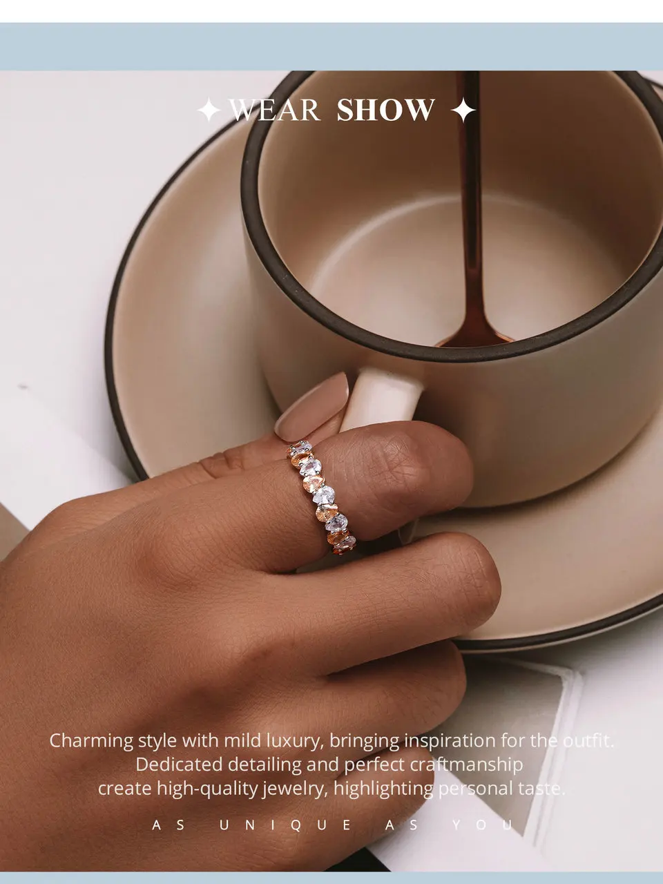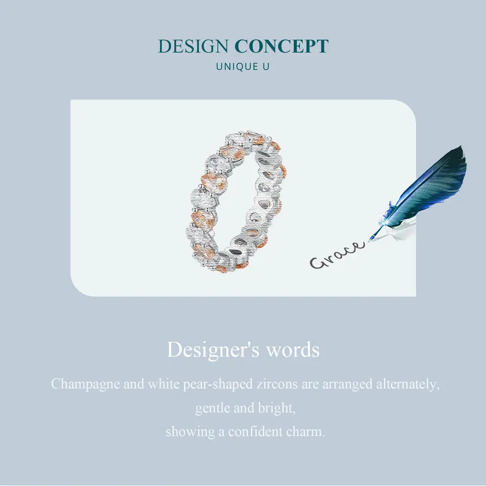 ❤ [Description] Champagne and white pear-shaped zircons are arranged alternately, gentle and bright, showing a confident charm.