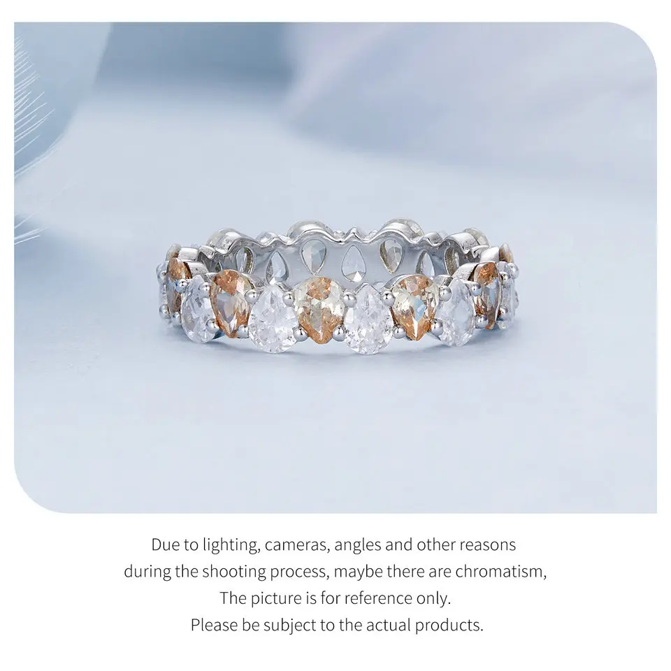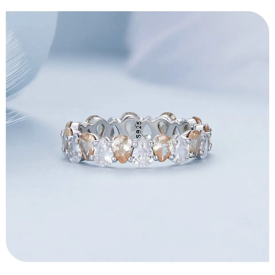 Bamoer 925 Sterling Silver Water-drop Zircon Ring Brilliant Finger Ring for Women Engagement Exquisite Fine Jewelry