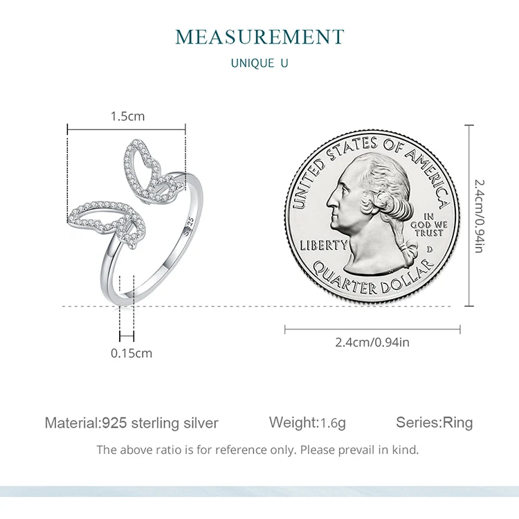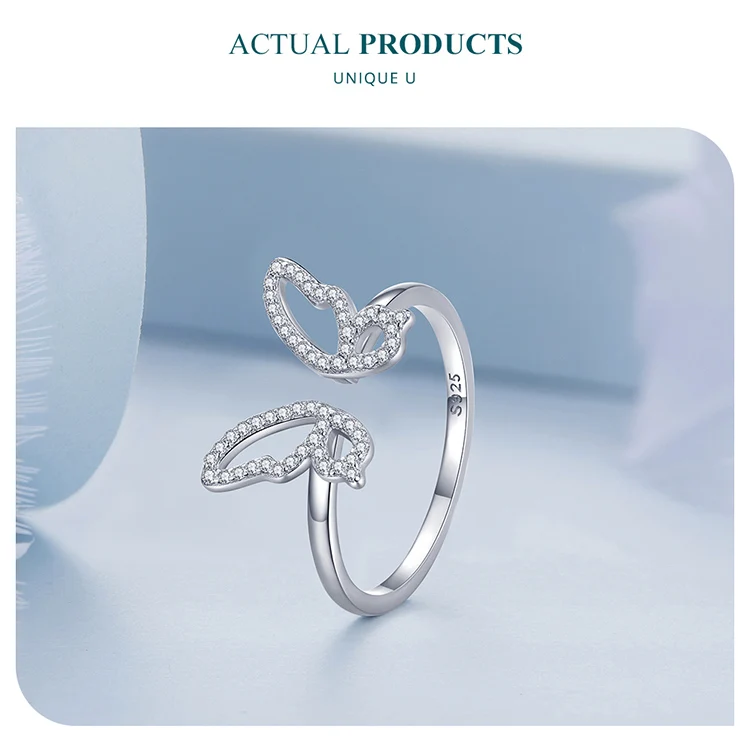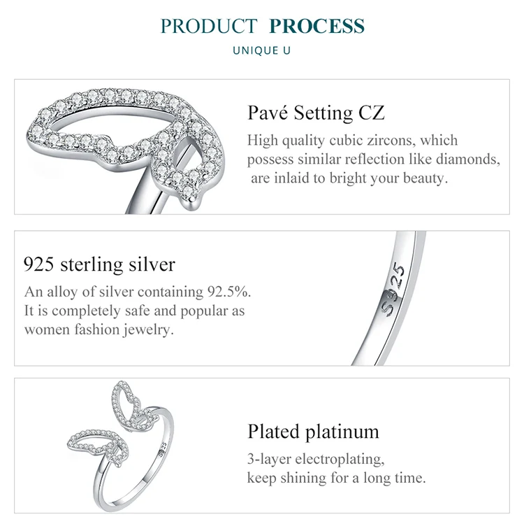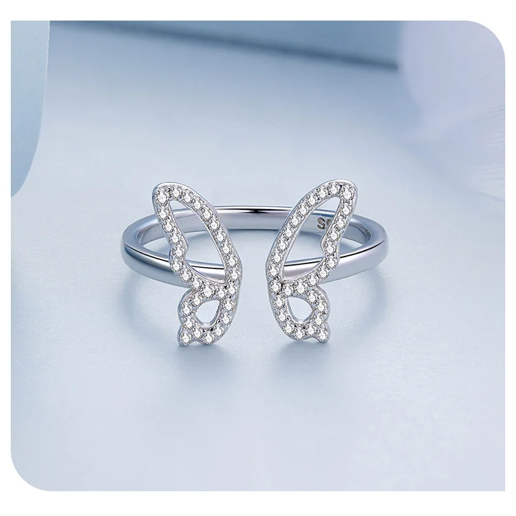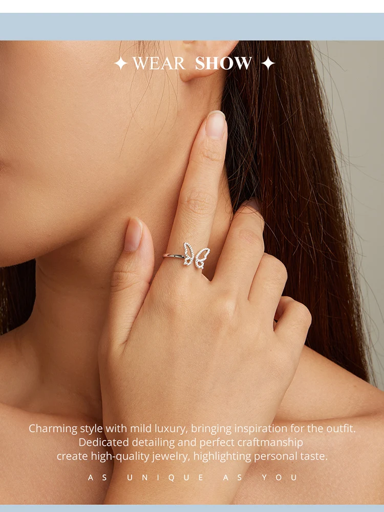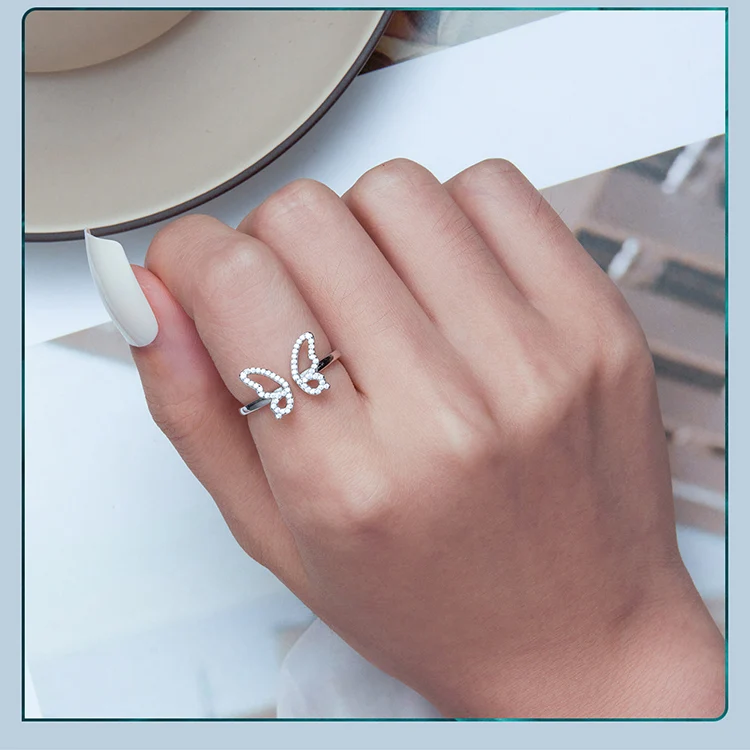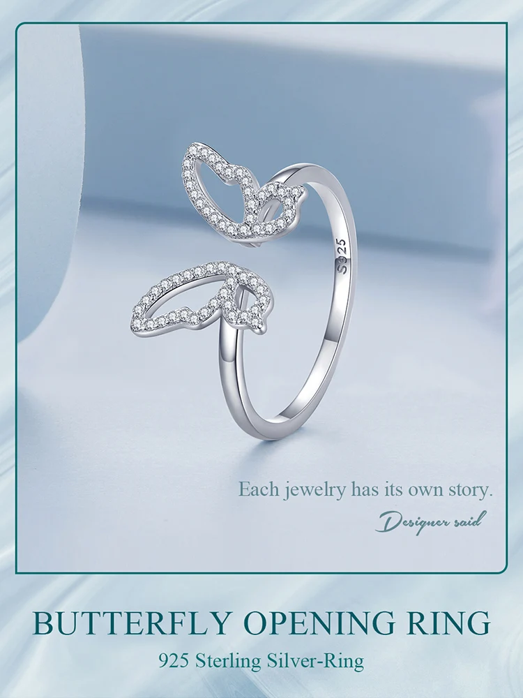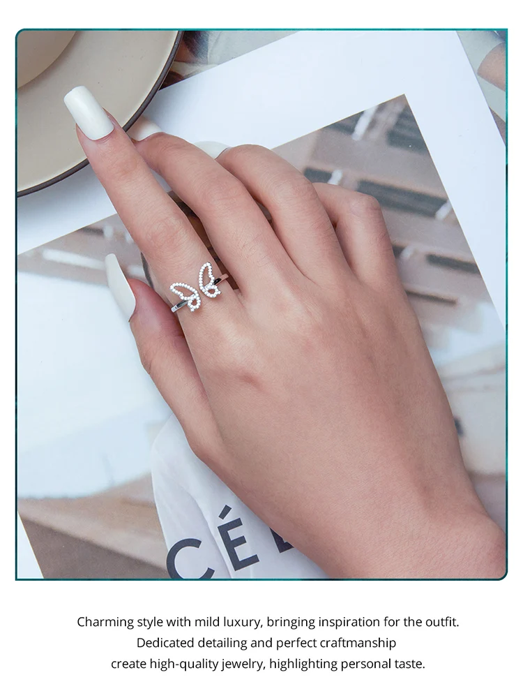 ❤ [Description] The wings of the butterfly are full inlaid with zircons, which is delicate and shining. The ring can be worn alone or with the horse-eye-shaped ring. You can choose two ways, and both of them are very interesting.