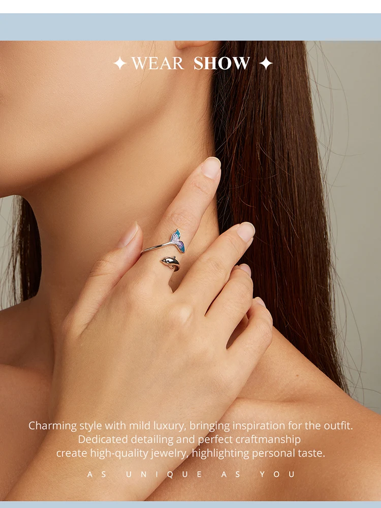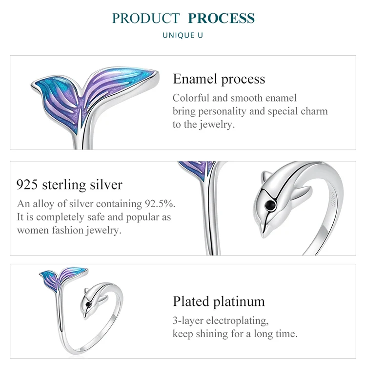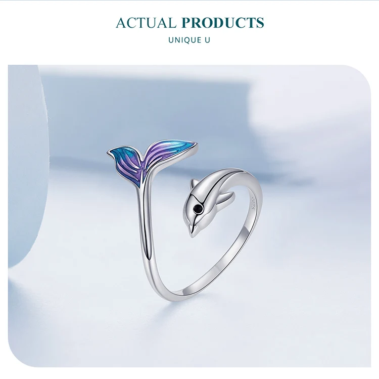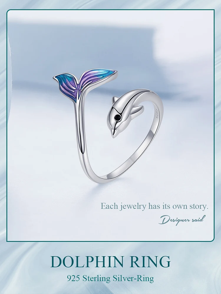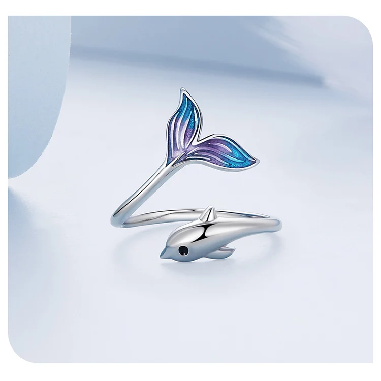 ❤ [Description] The lively and smart little dolphin leaped out of the water, revealing its beautiful blue purple tail. This sweet dolphin ring design is novel and fashionable, fresh and lovely.