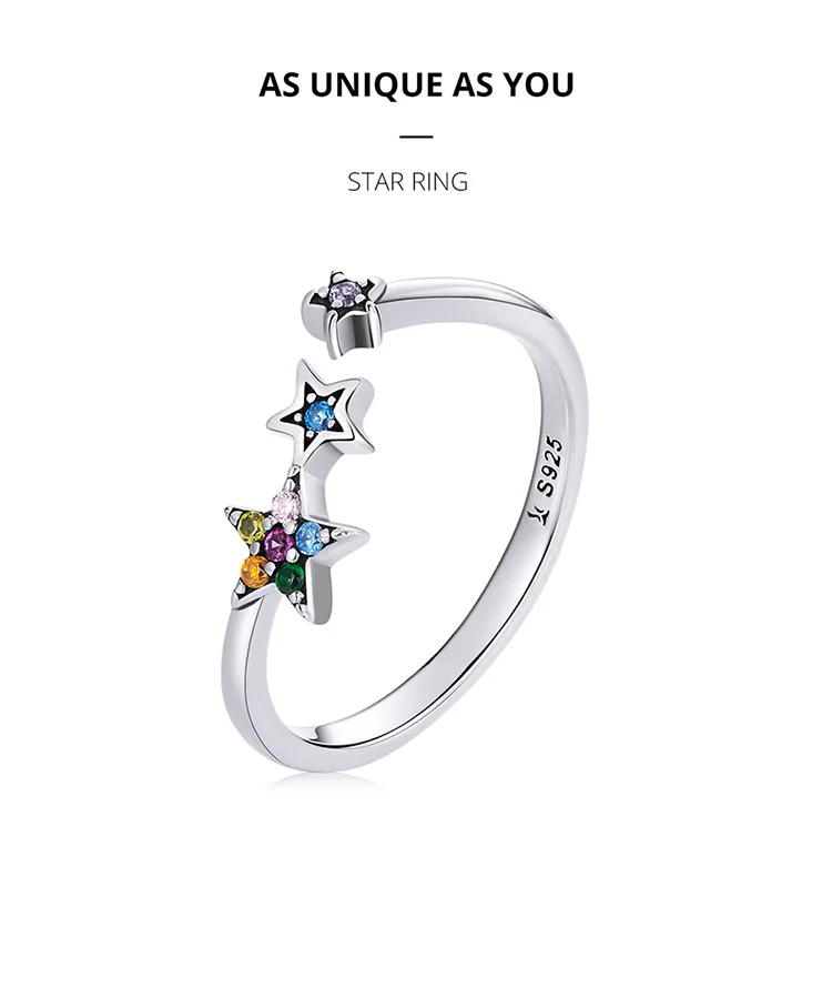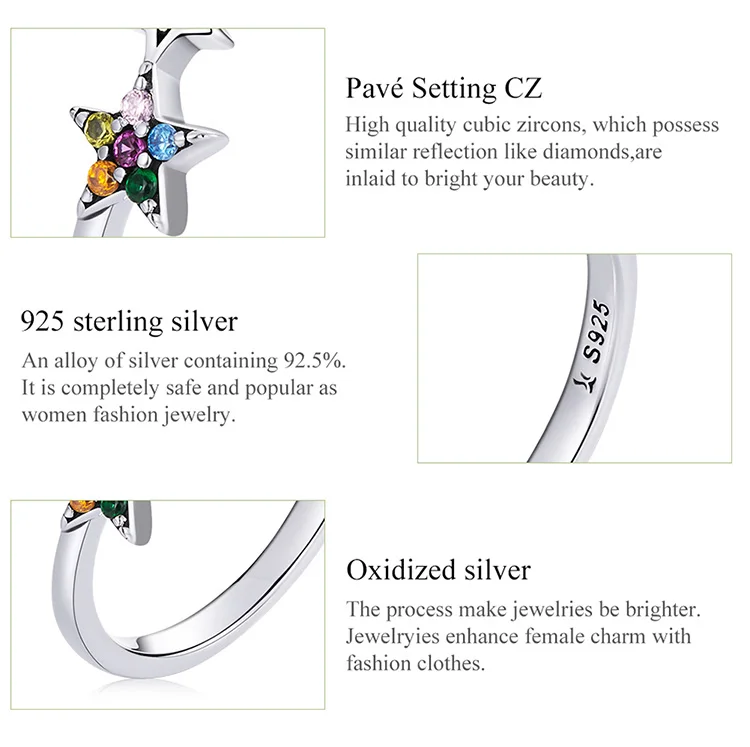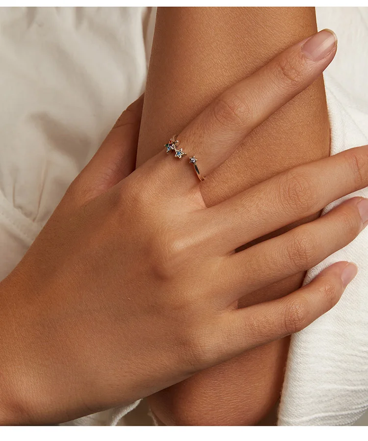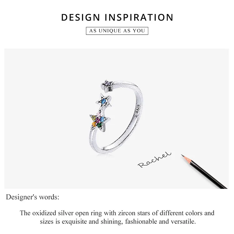 ❤ [Description] The oxidized silver open ring with zircon stars of different colors and sizes is exquisite and shining, fashionable and versatile.