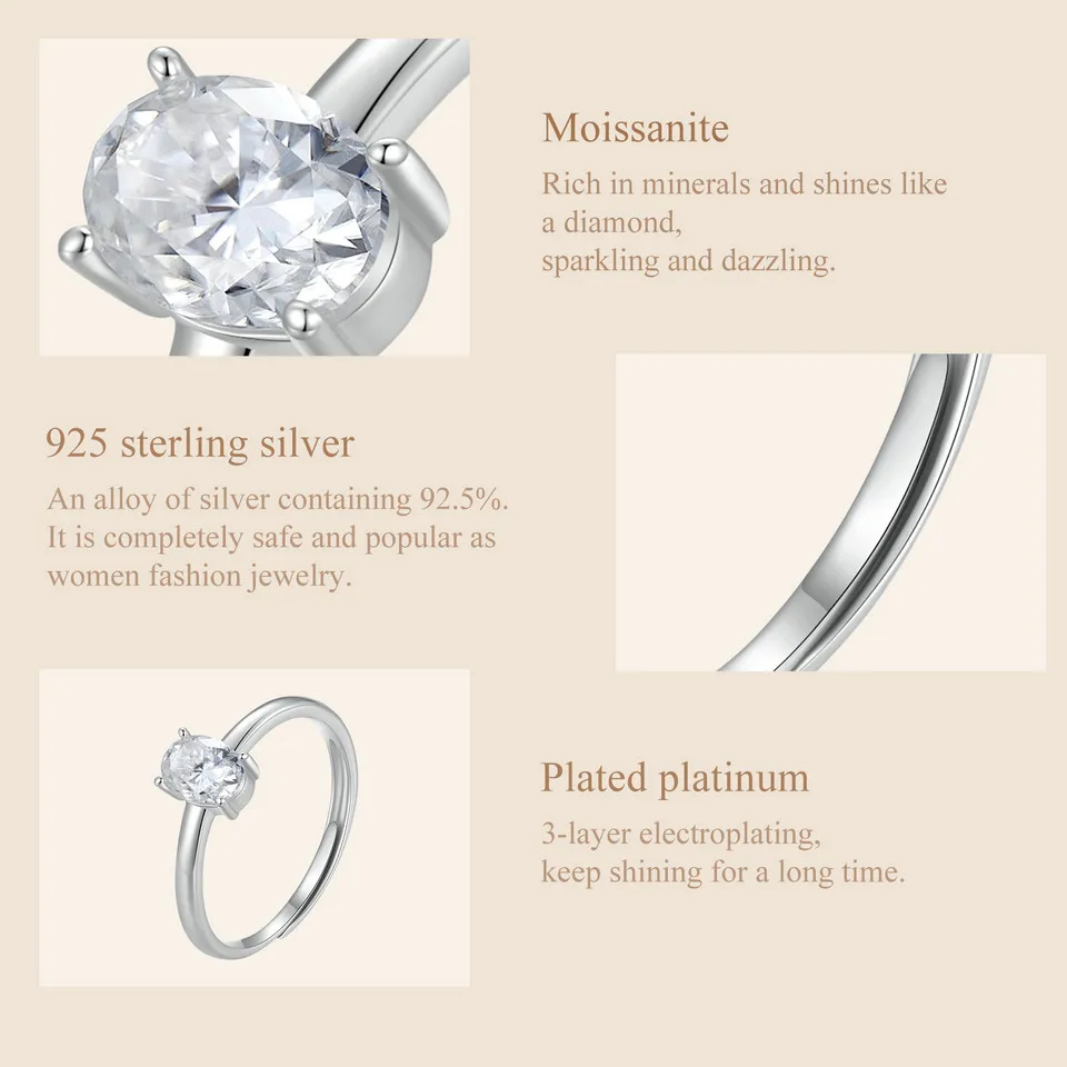 ❤ [Description] Simple and classic egg-shaped Moissanite for daily lift, exquisite and shining,representing love, romantic and sweet.