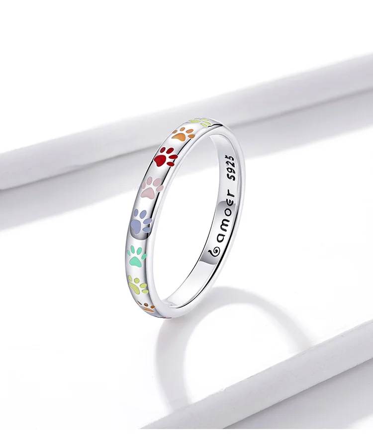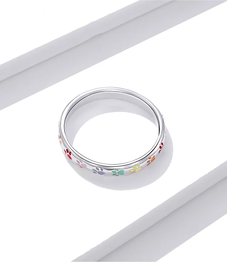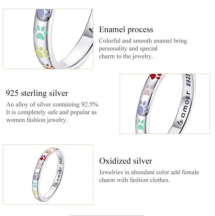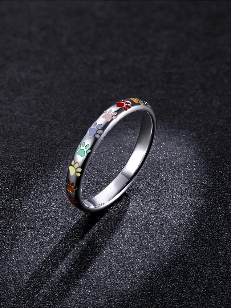 ❤ 【Description】Metal oxidation process ring, dotted with colored claw-printed drip oil,wearing between the fingers, like the intimate companionship of the budding pet.
