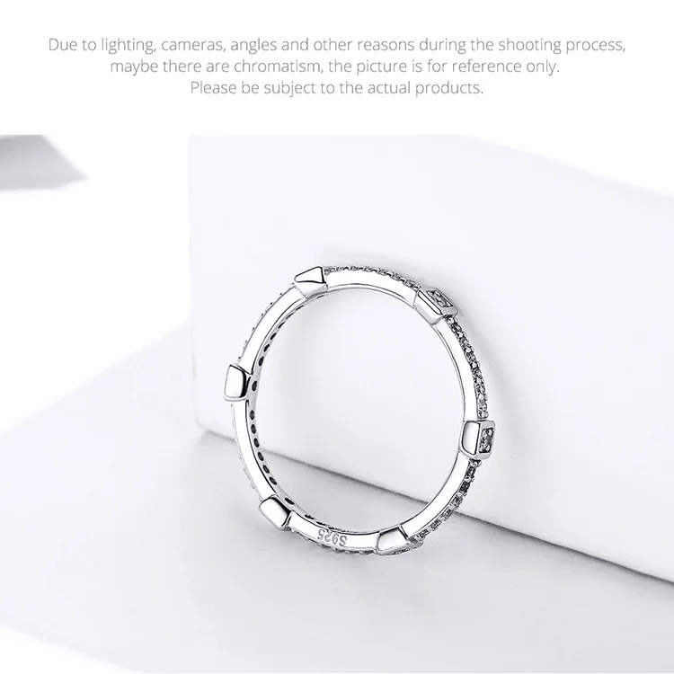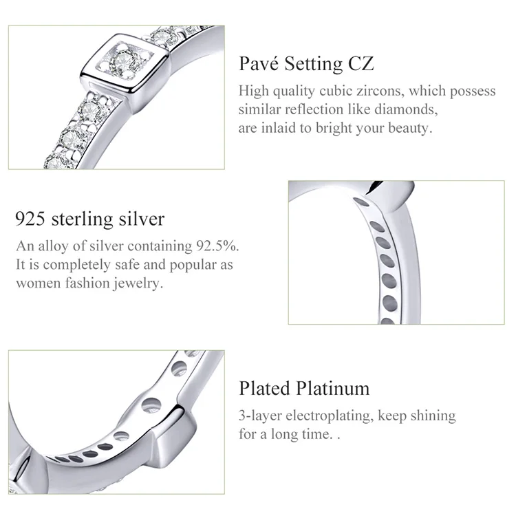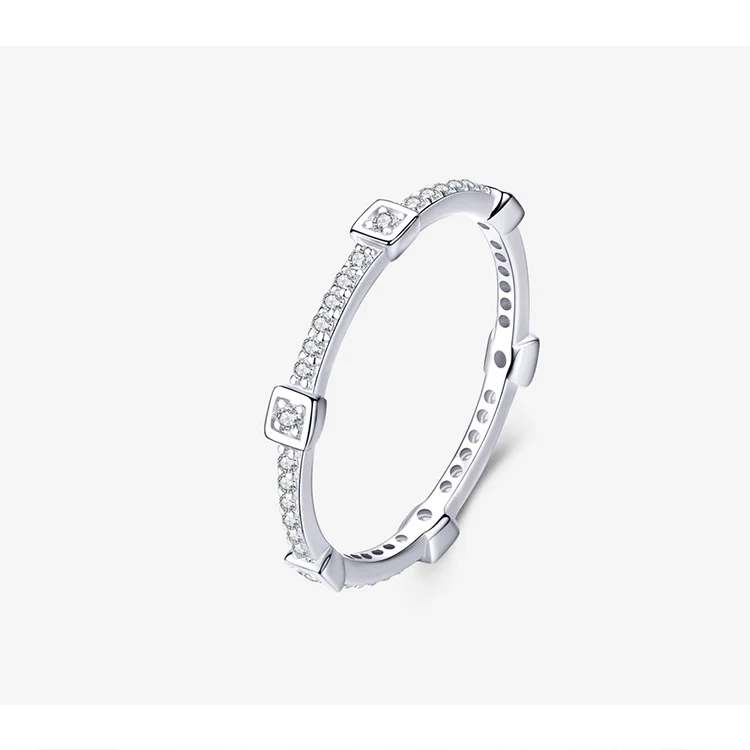 bamoer Square Geometric Stackable Finger Rings for Women Clear CZ 925 Sterling Silver Engagement Statement Jewelry SCR551