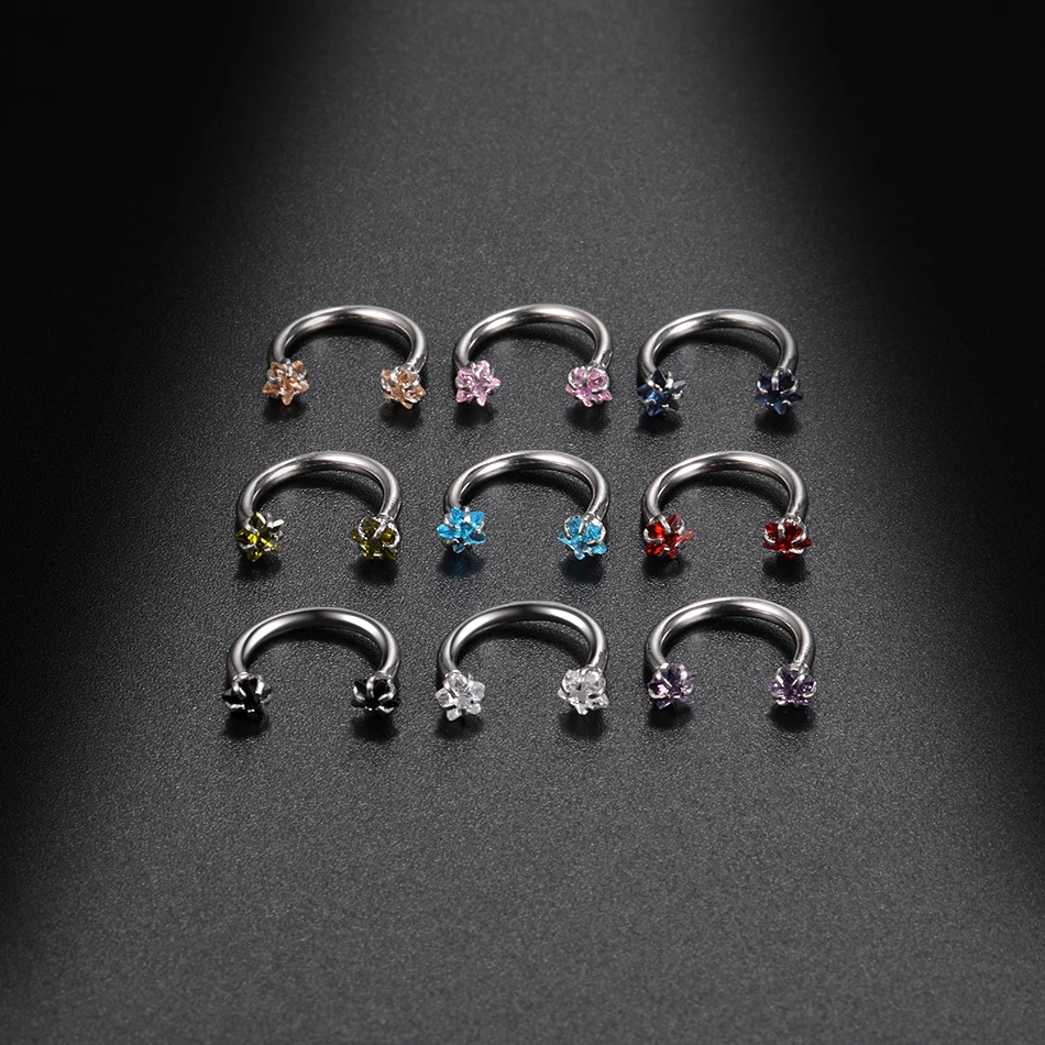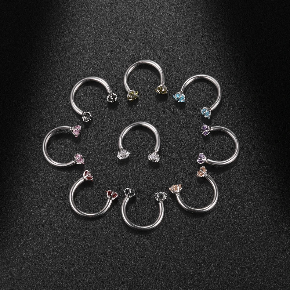 1 Pc Mix Color Crystal Barbells Horseshoe Nose Ring Lip BCR Body Piercing Earring Tragus Ring Ear Cartilage Helix Body Piercings