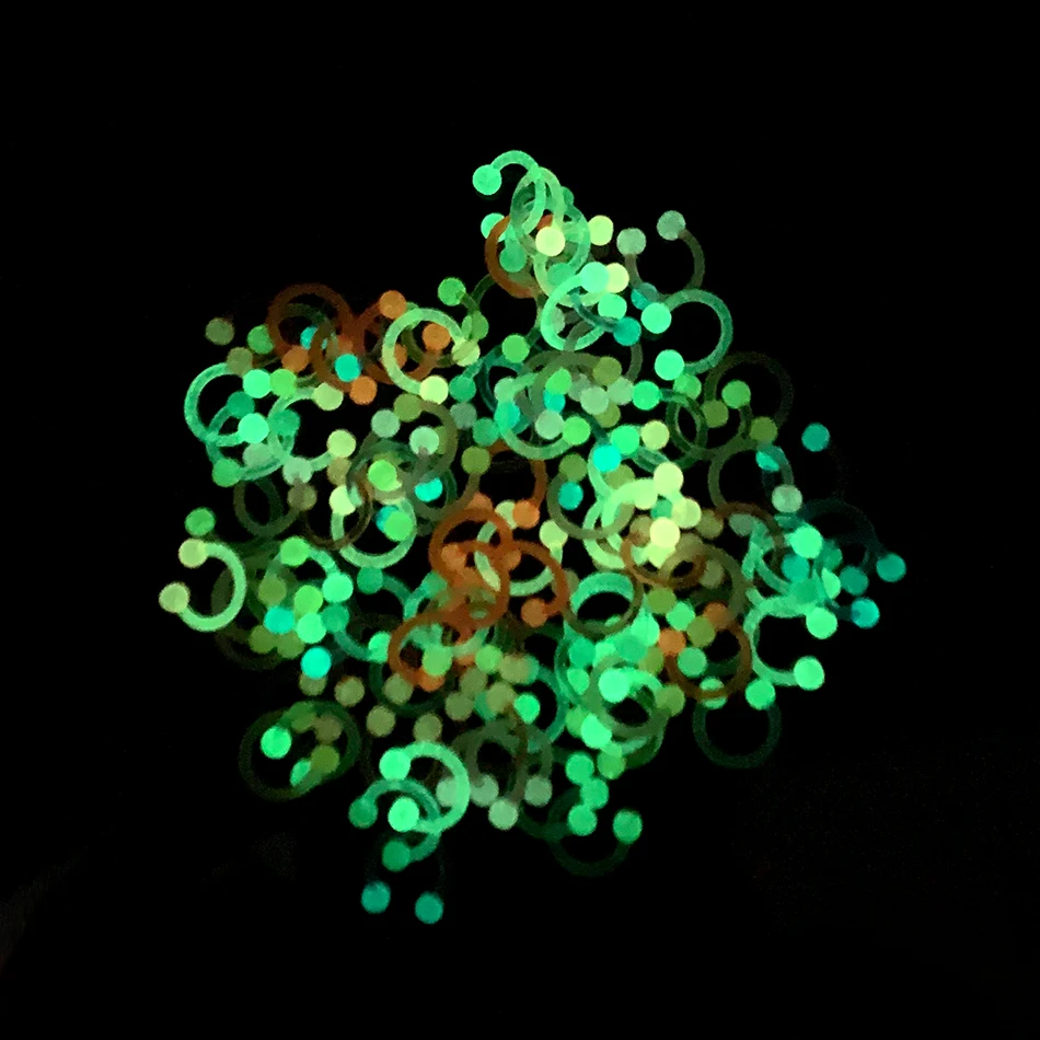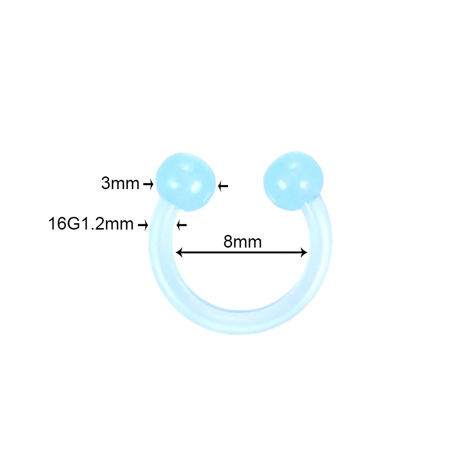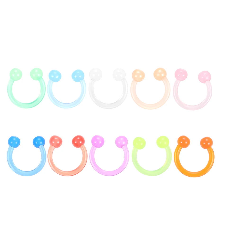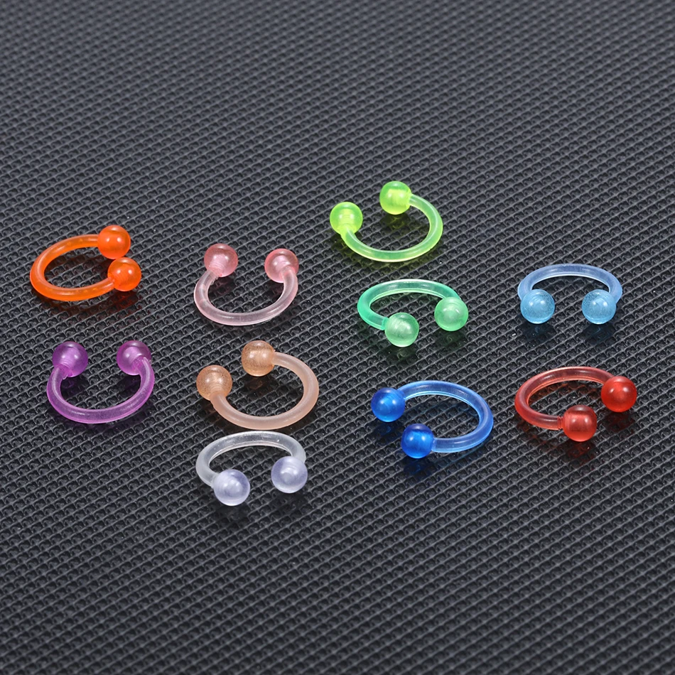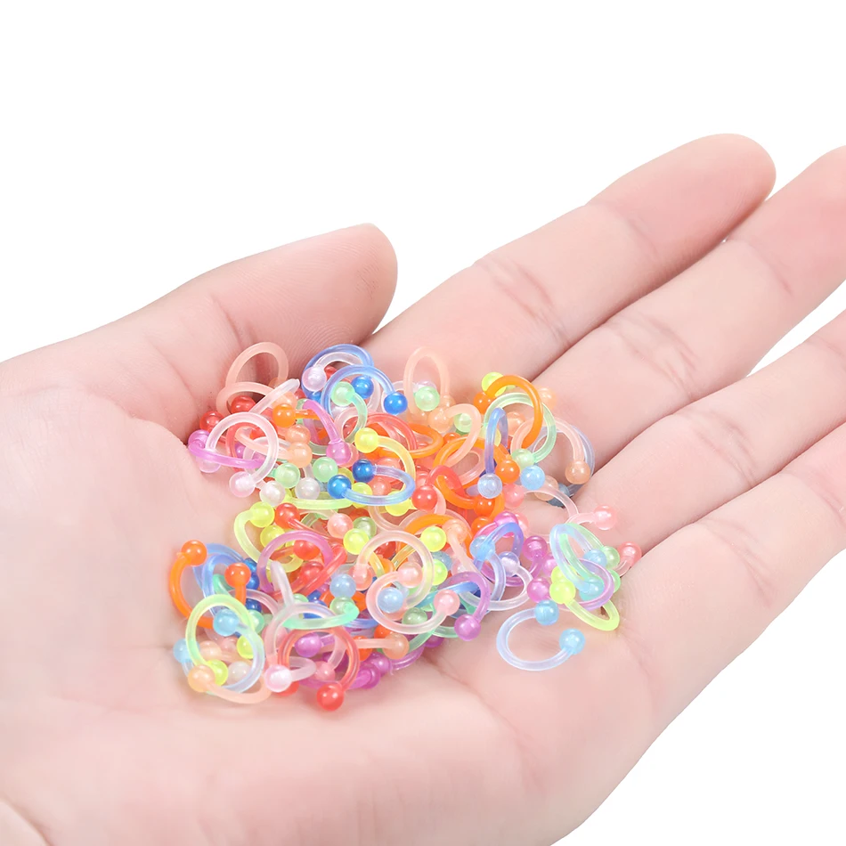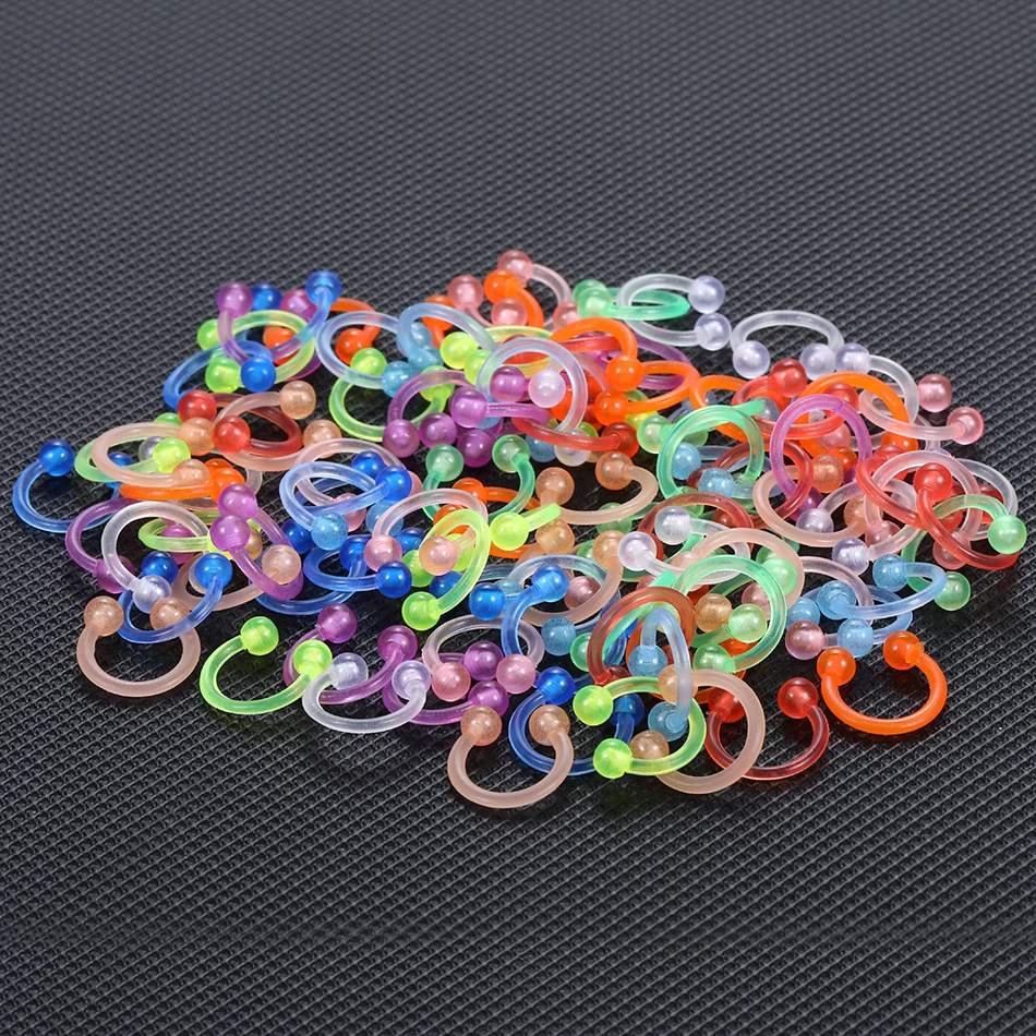 100Pcs/set Acrylic Circular Barbell Horseshoe Ring 16G Luminous Nose Piercing Ear Piercing Septum Ring Body Piercing Jewelry