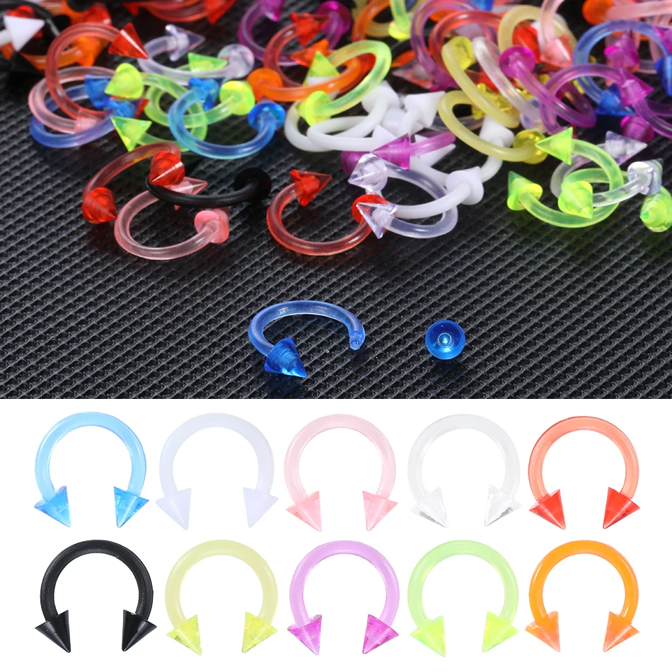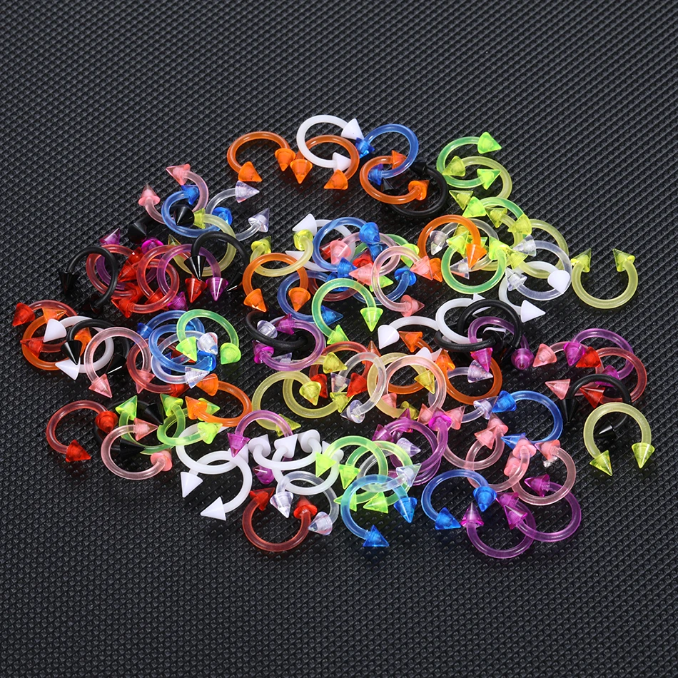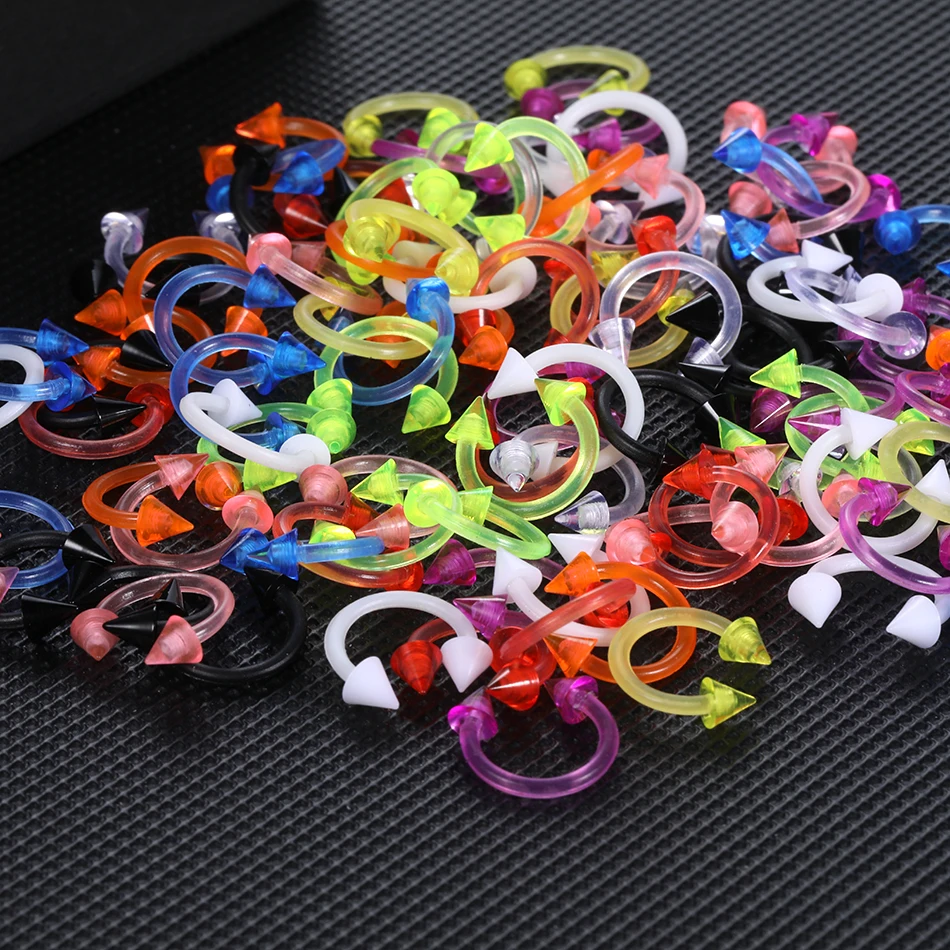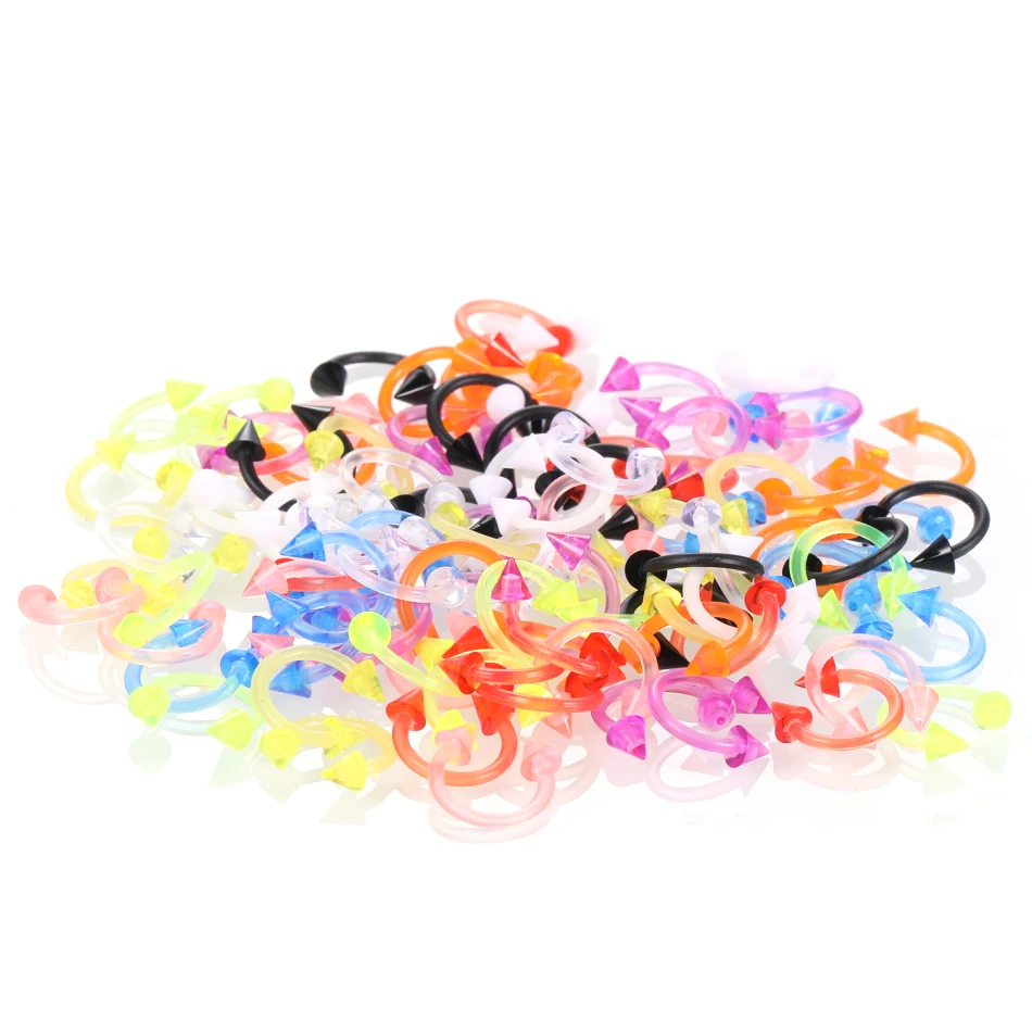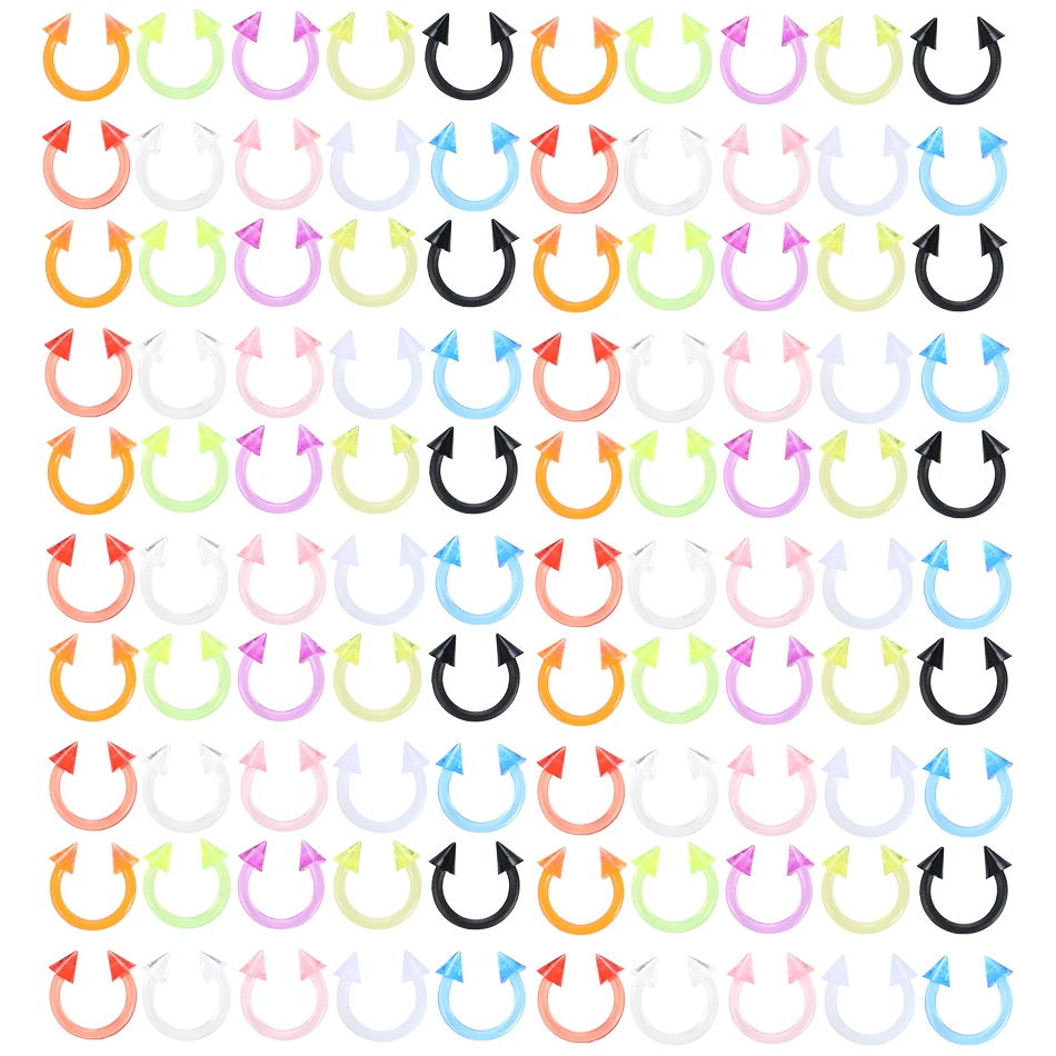 100Pcs/set Acrylic Horseshoe Nose Ring 16G Nose Piercing Helix Ear Eyebrow Piercing Women Men Septum Ring Body Piercing Jewelry