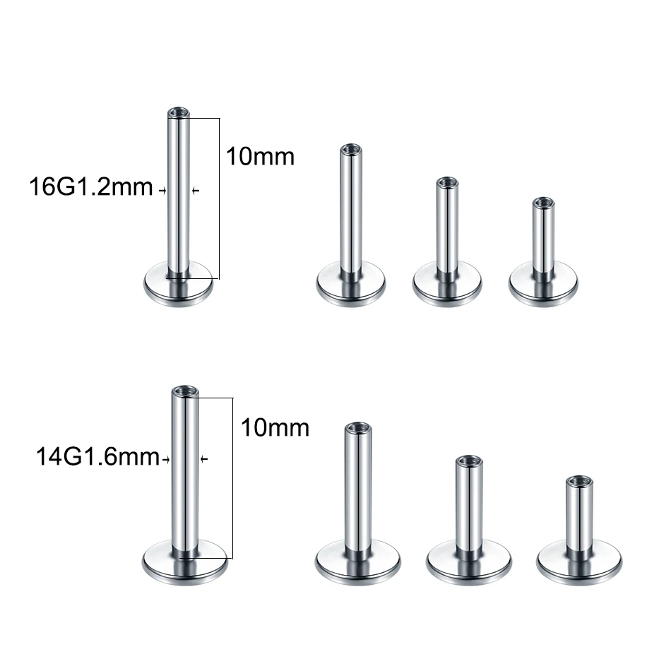 10Pcs/set Titanium Ear Studs Lip Labret Barbell Piercing Internally Threaded Replacement Accessories Body Piercing Jewelry Parts
