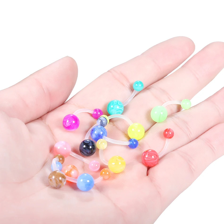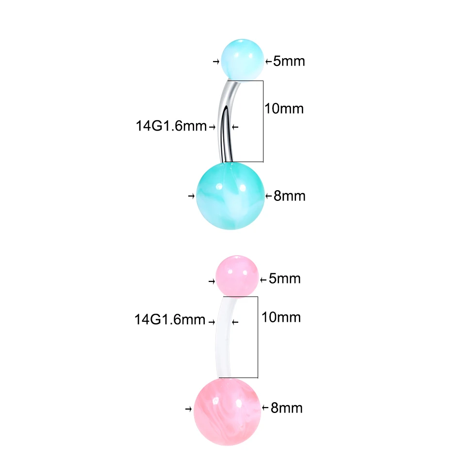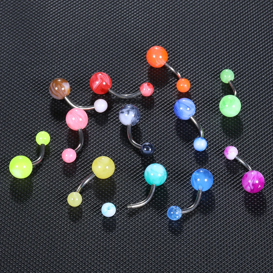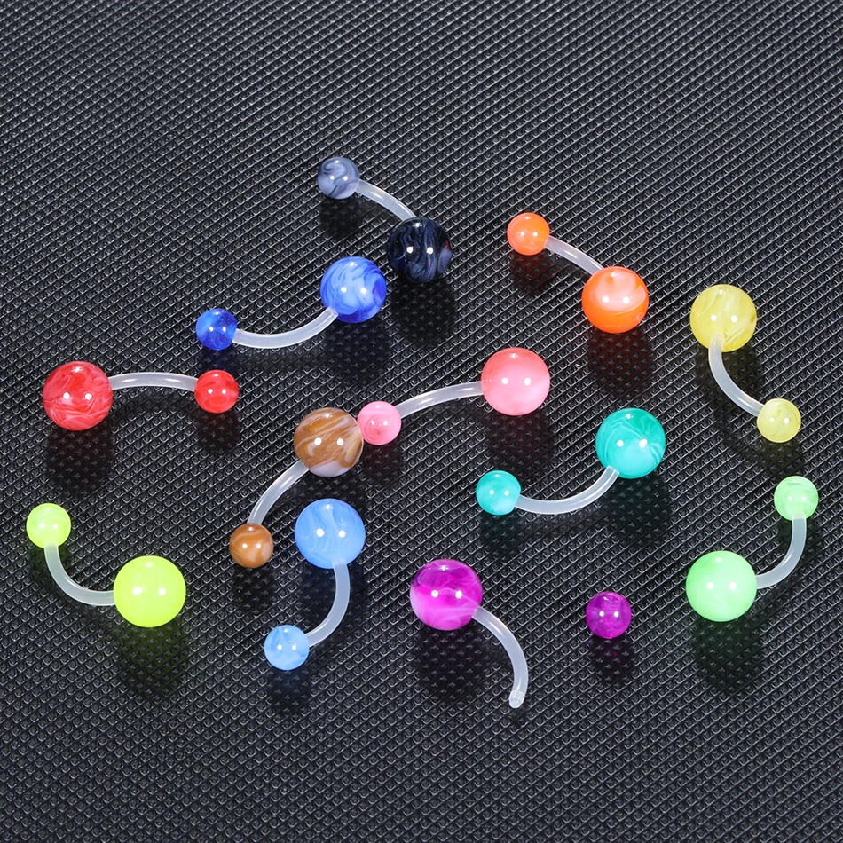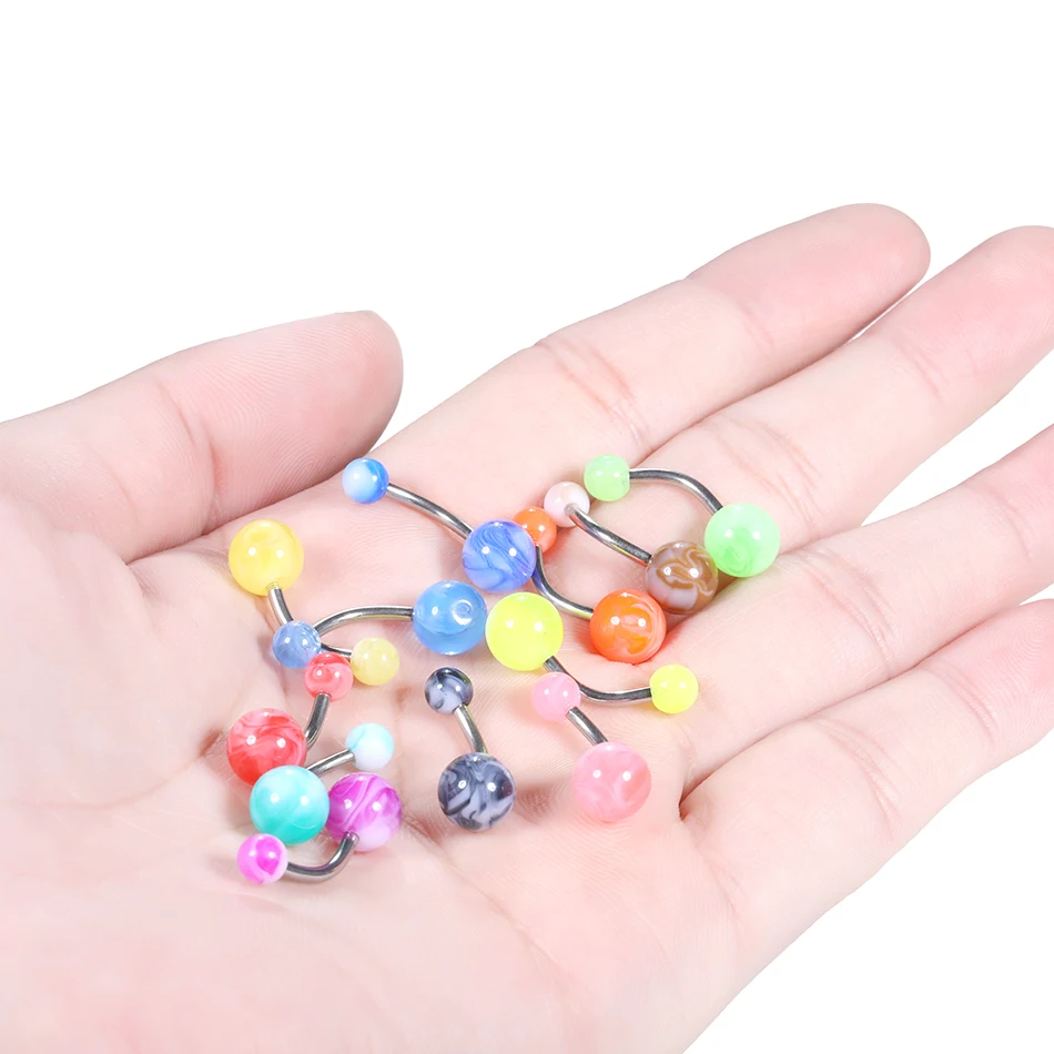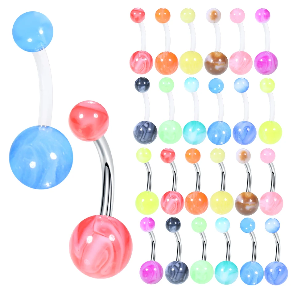 12Pcs/set Acrylic Ball Belly Ring Bar Belly Button Rings Sexy Steel Barbell Navel Ring Women Ombligo Piercing Body Jewelry 14G