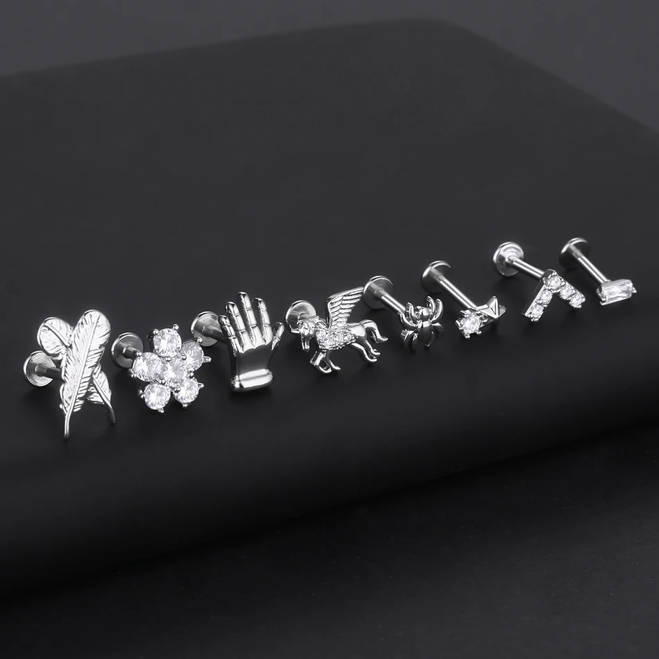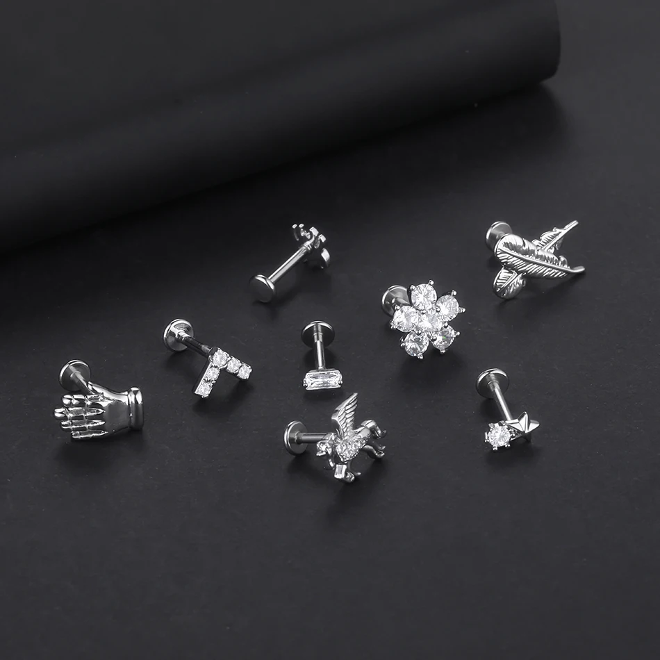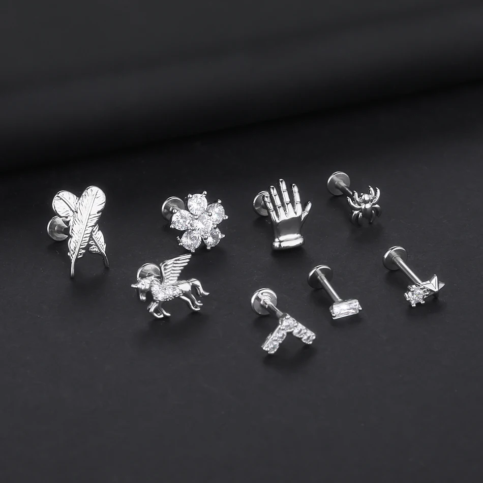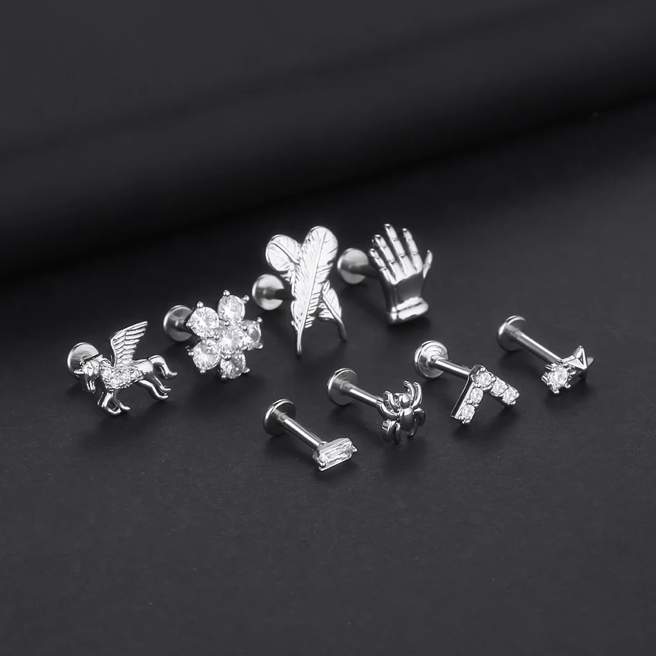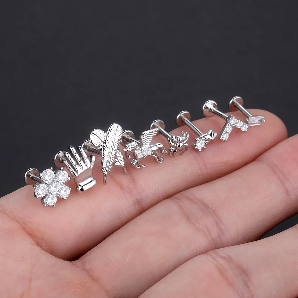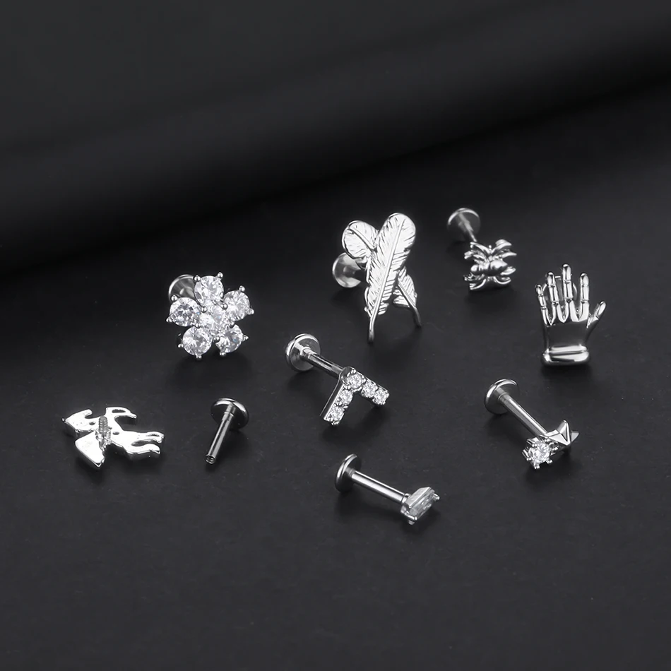 16G Stainless Steel Labret Piercing Internal Thread Lip Monore Ring Crystal Ear Cartilage Tragus Helix Piercing Body Jewelry 16G