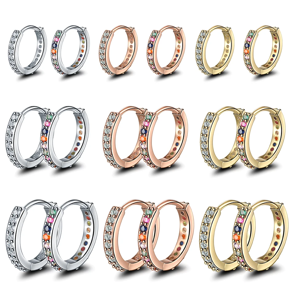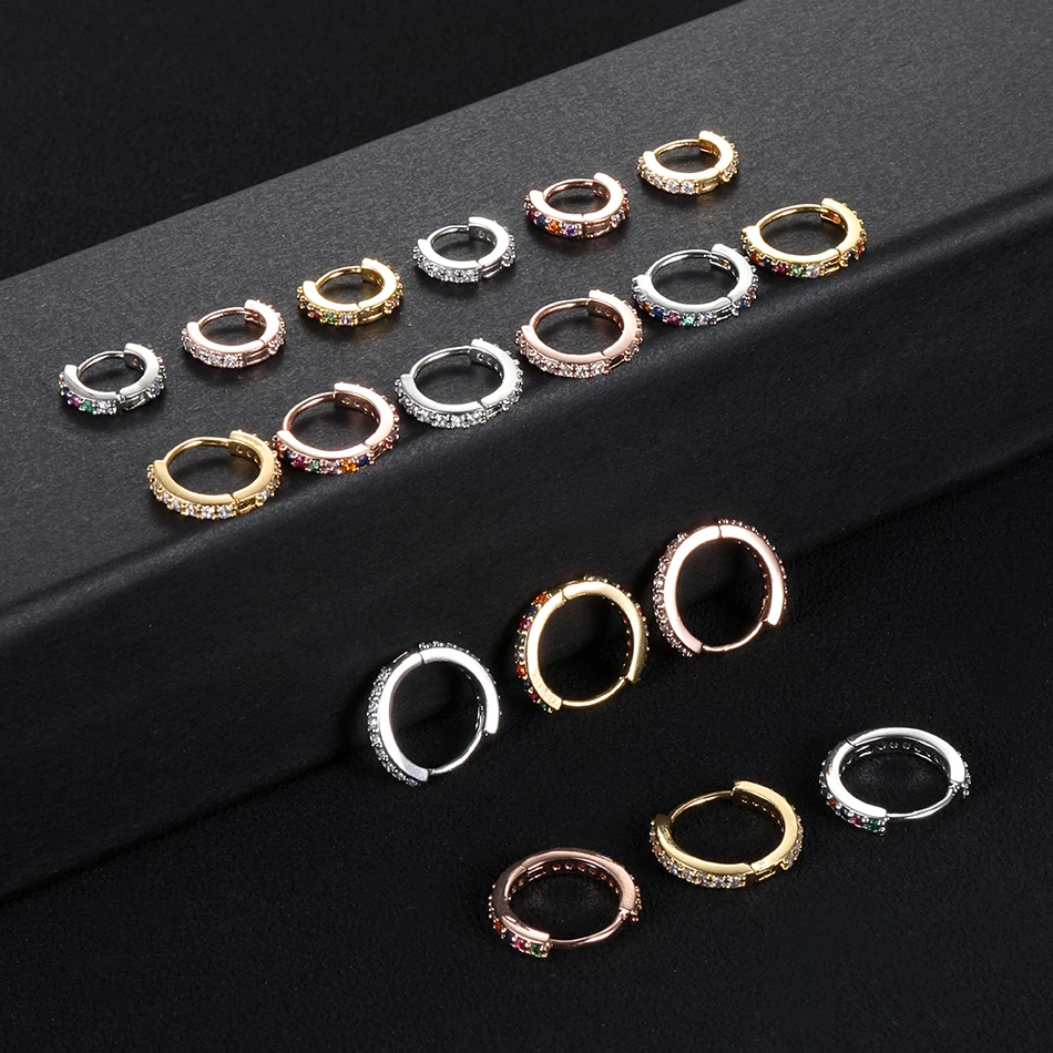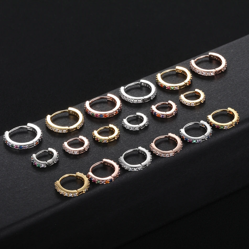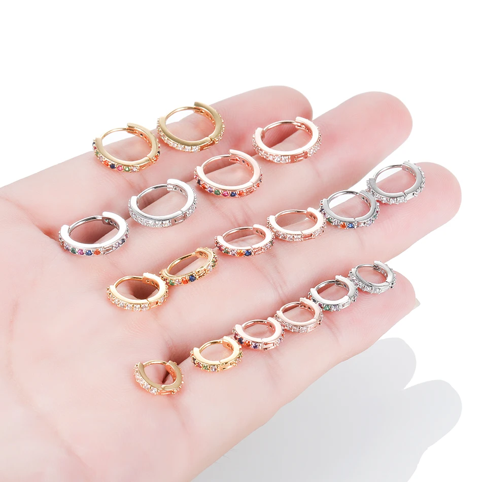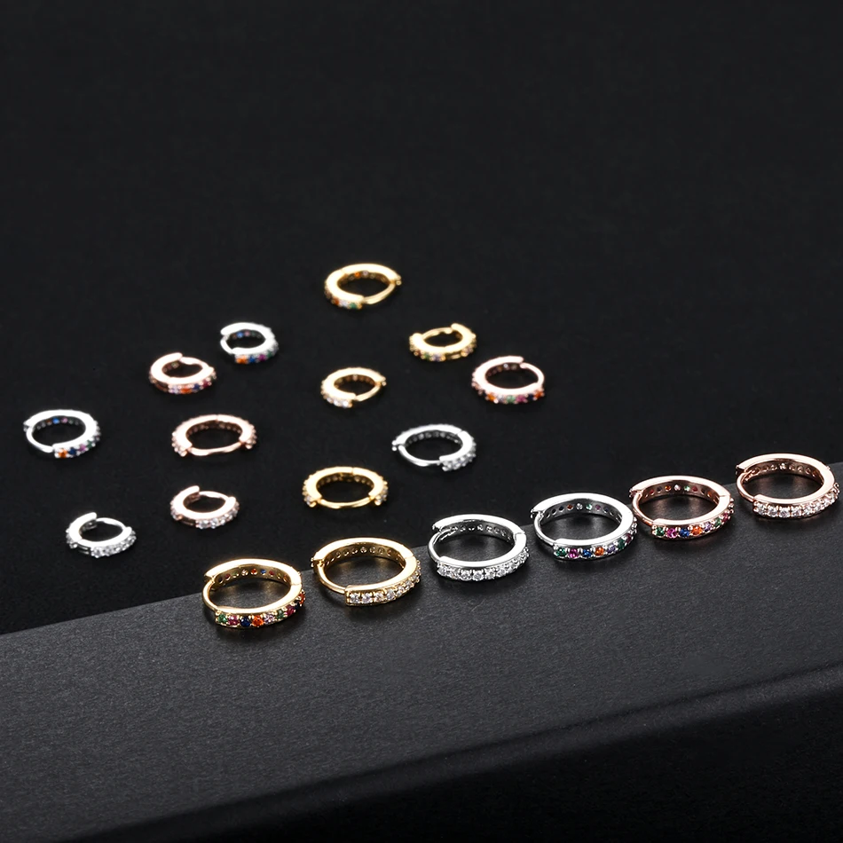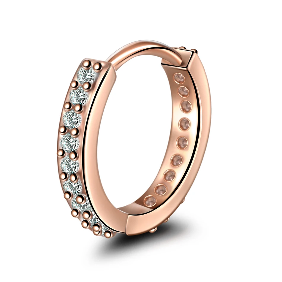 1Pc Copper Zircon Helix Cartilage Piercing Round Nose Hoop Rings Clear Zircon Earrings For Women Fashion Body Piercing Jewelry
