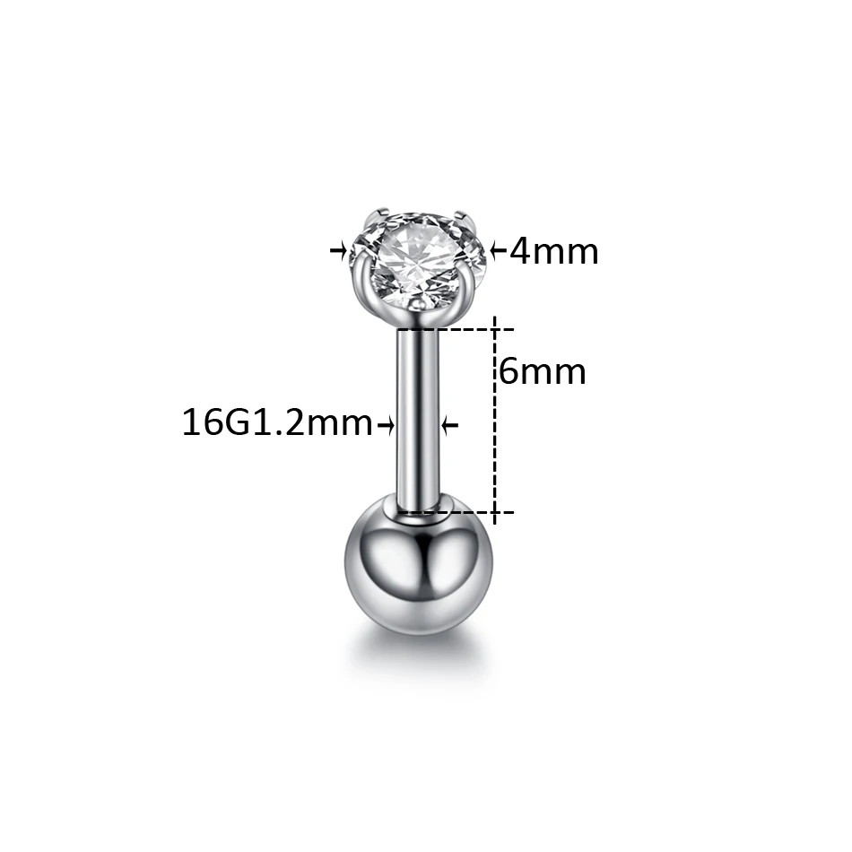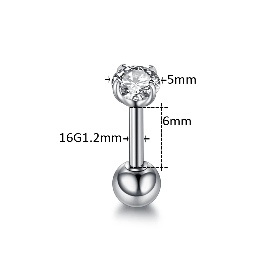 1PC Crystal Ear Stud Helix CZ Stainless Steel Sexy Barbell Women Zircon Ear Cartilage Bar Tragus Helix Stud Earring Piercing