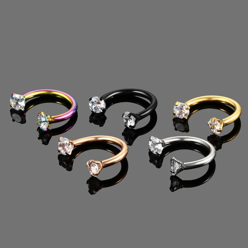 1Pc Crystal Nose Ring Barbells Horseshoe Ring Lip BCR Cartilage Earrings Tragus Piercing Helix Piercing Body Jewelry