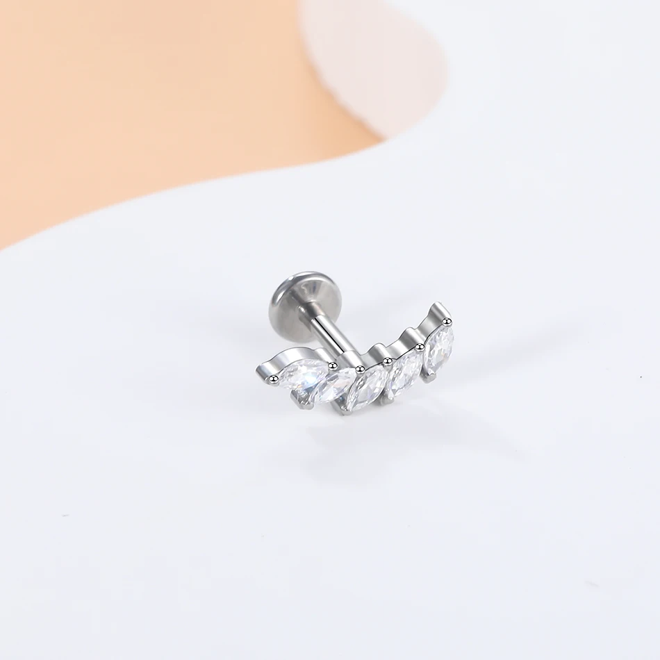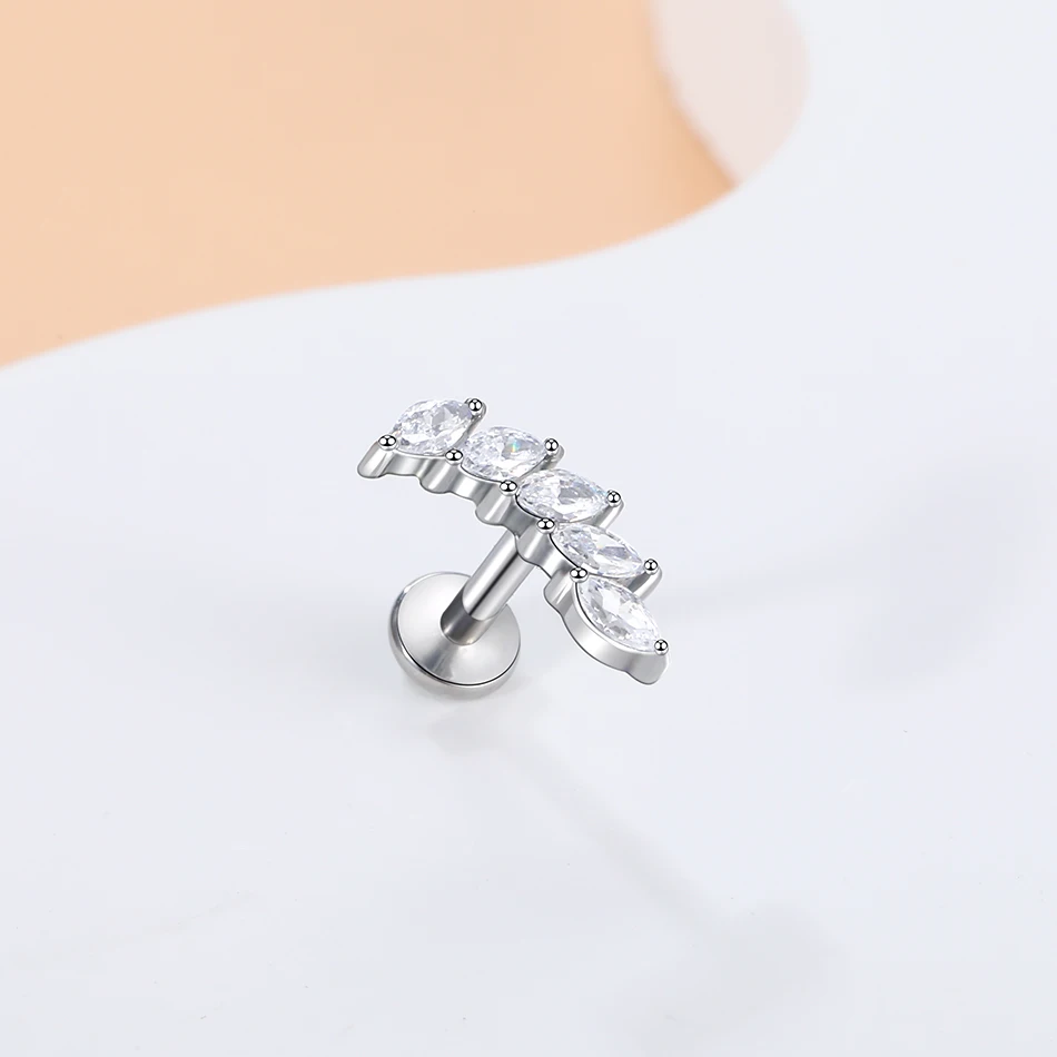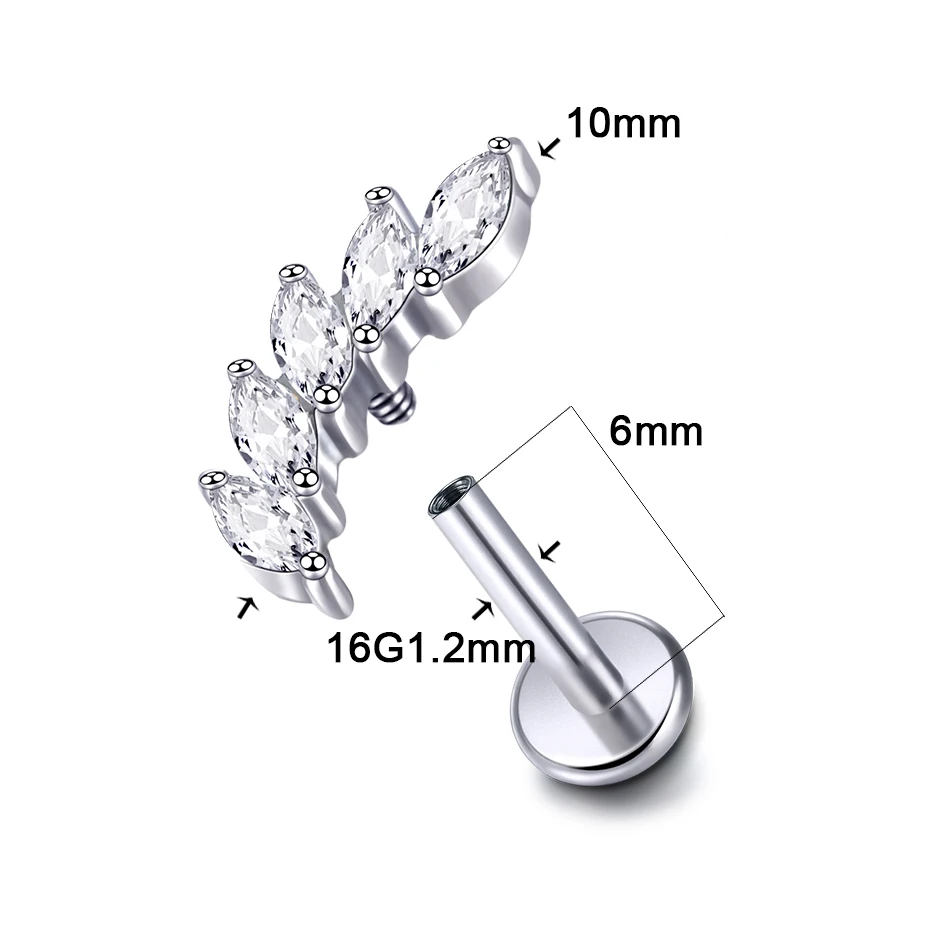 1Pc G23 Titanium Crystal Ear Tragus Labret Ring Nose Stud Internally Threaded Helix Ear Cartilage Piercing Earring for Women 16G