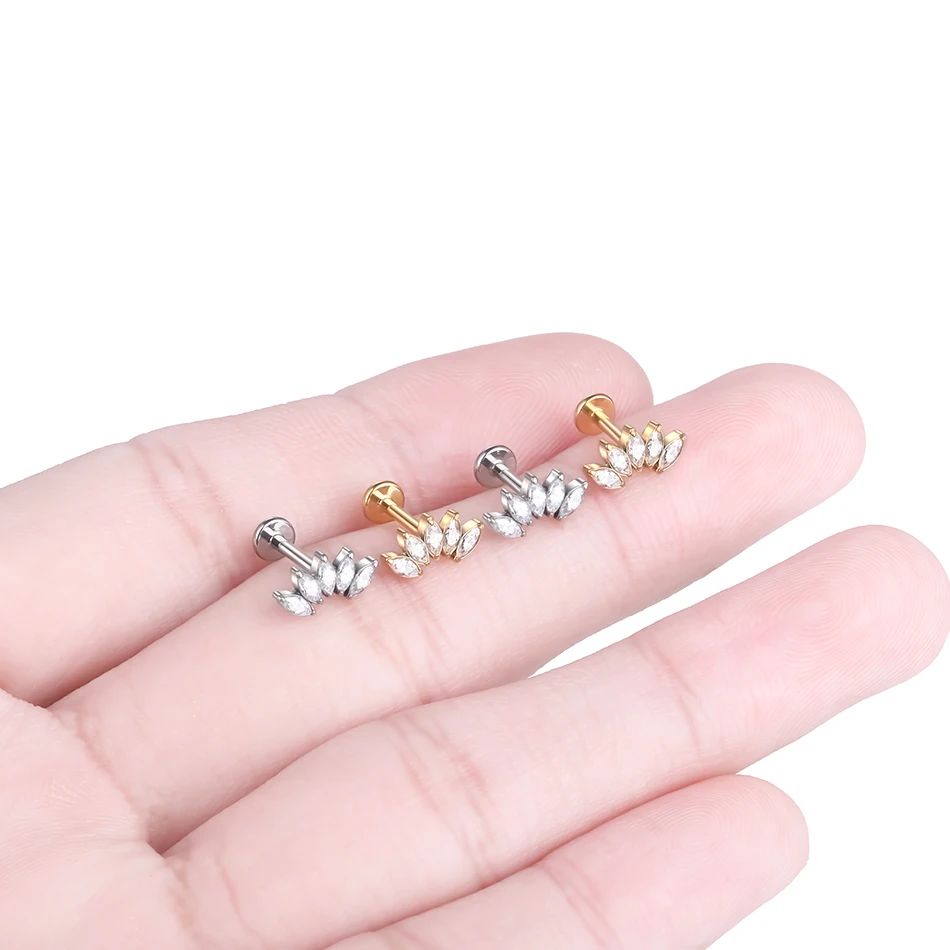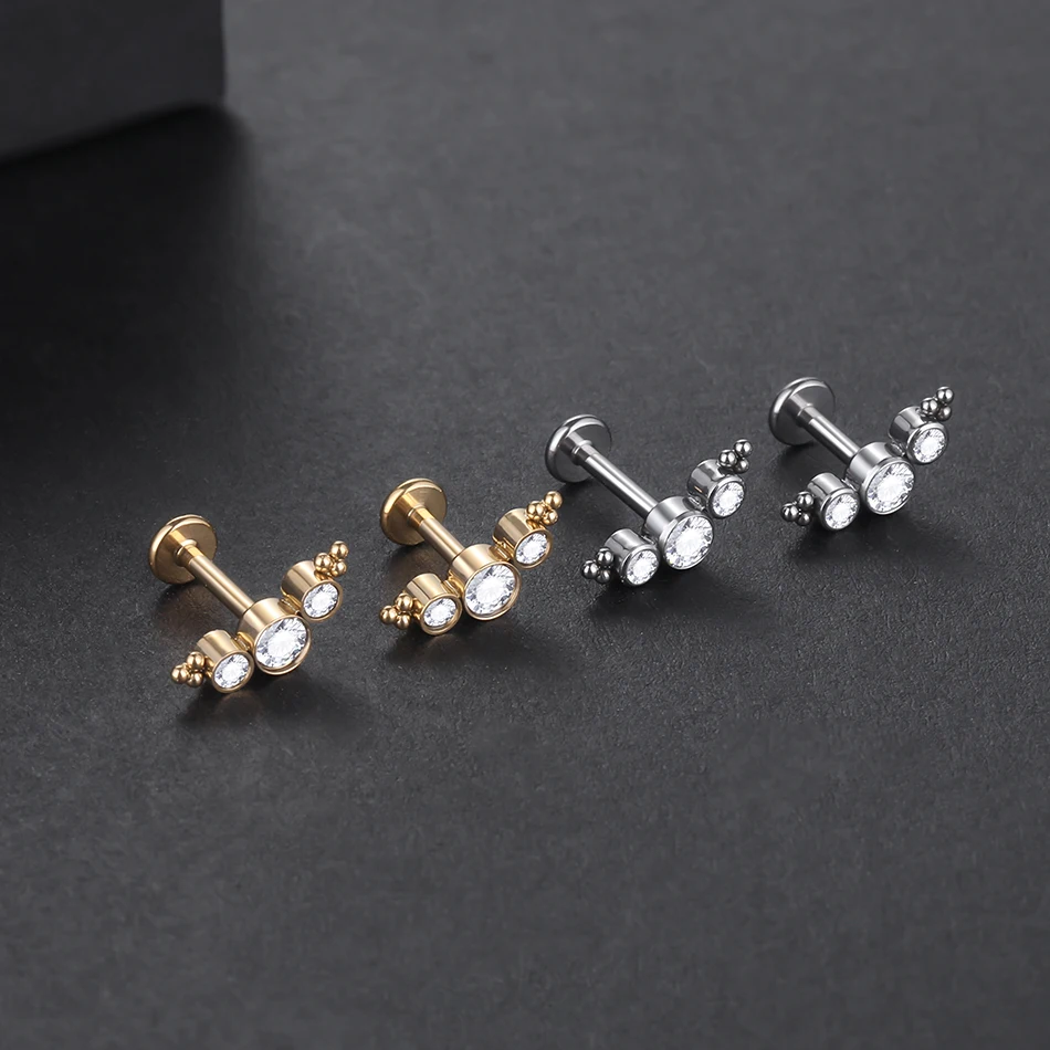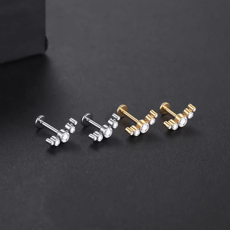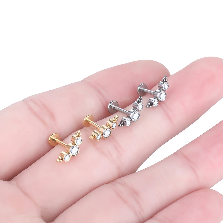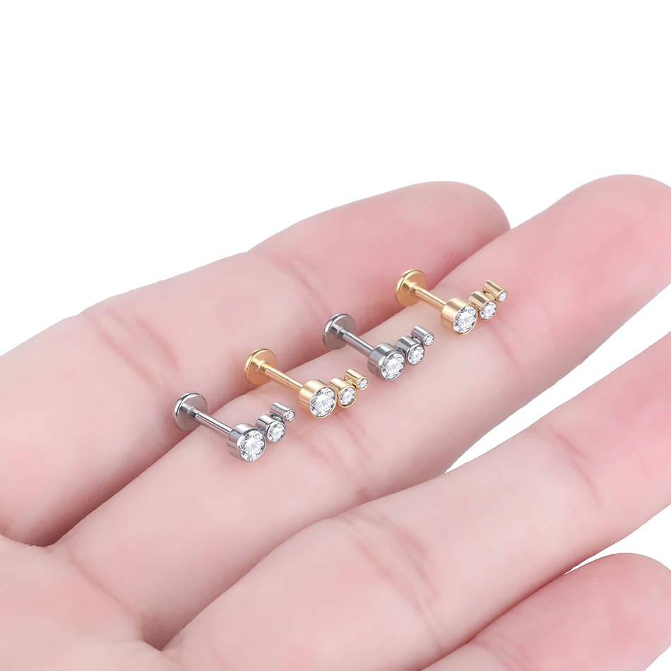 1Pc G23 Titanium Ear Tragus Earring Stud Internally Threaded CZ Crystal Labret Ring Cartilage Helix Piercing Body Jewelry 16G