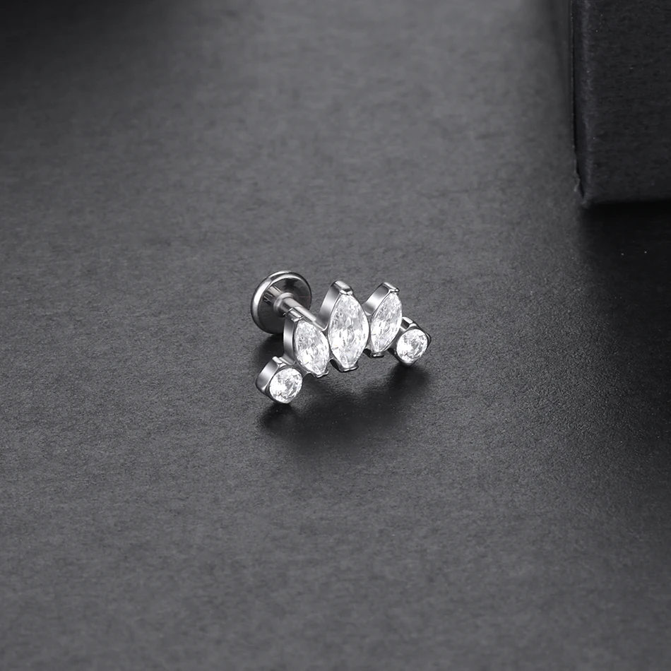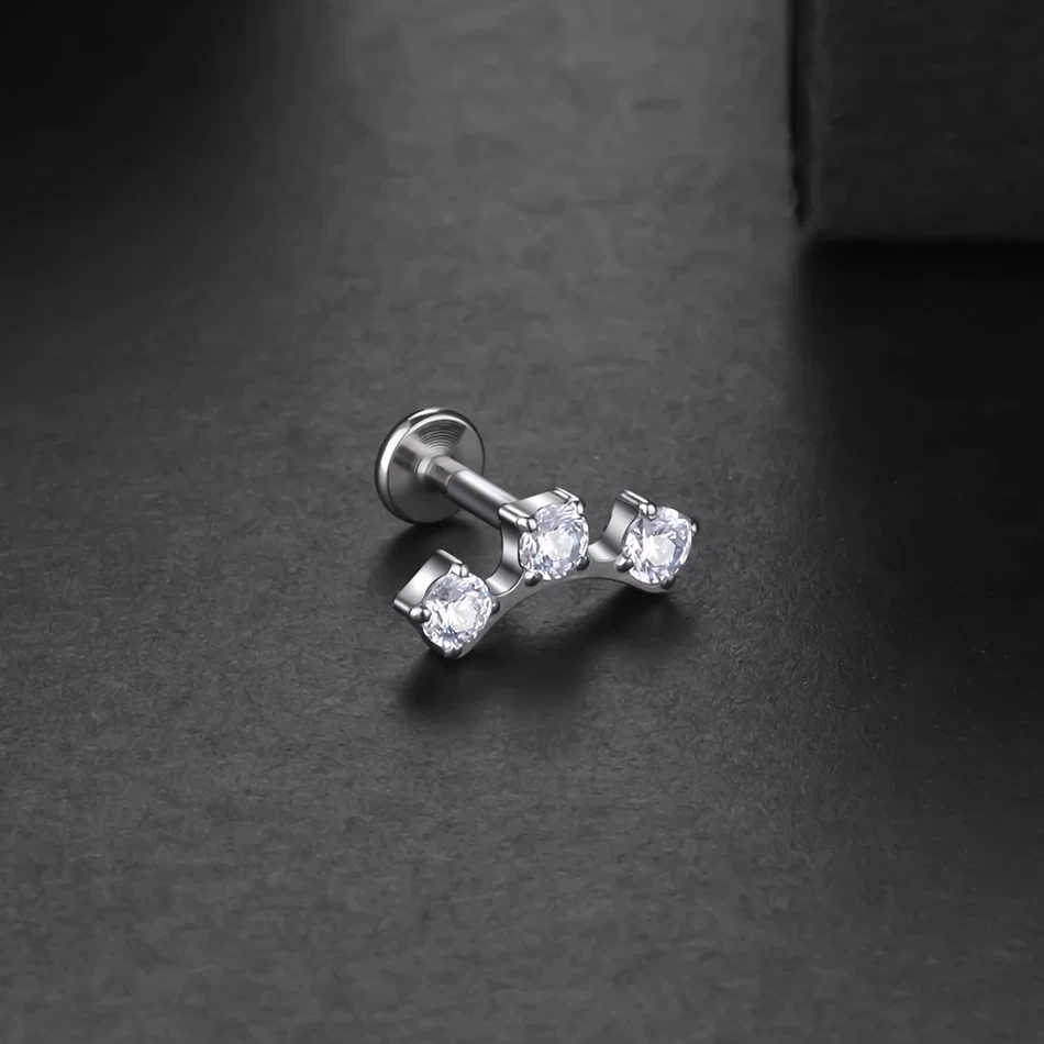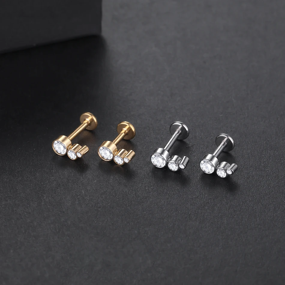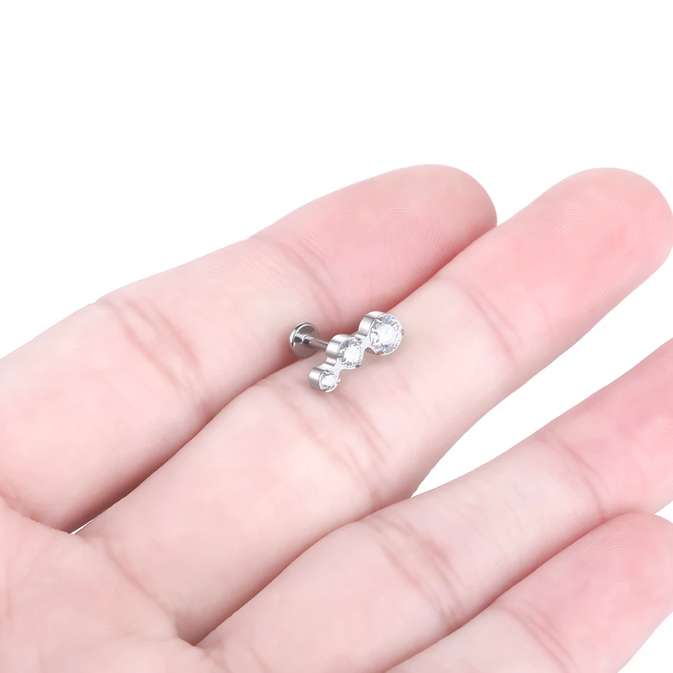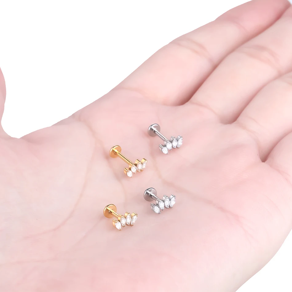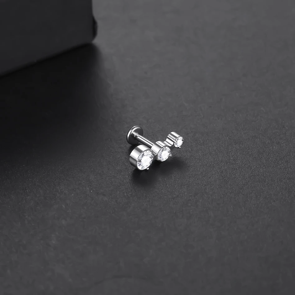1Pc G23 Titanium Ear Tragus Earring Stud Internally Threaded CZ Crystal Labret Ring Cartilage Helix Piercing Body Jewelry 16G