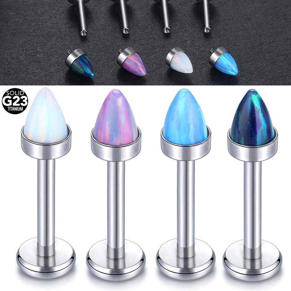 1Pc G23 Titanium Internally Threaded Labret Lip Ring Piercing Opal Monroe Lip Stud Tragus Helix Piercing Earring for Women 16G