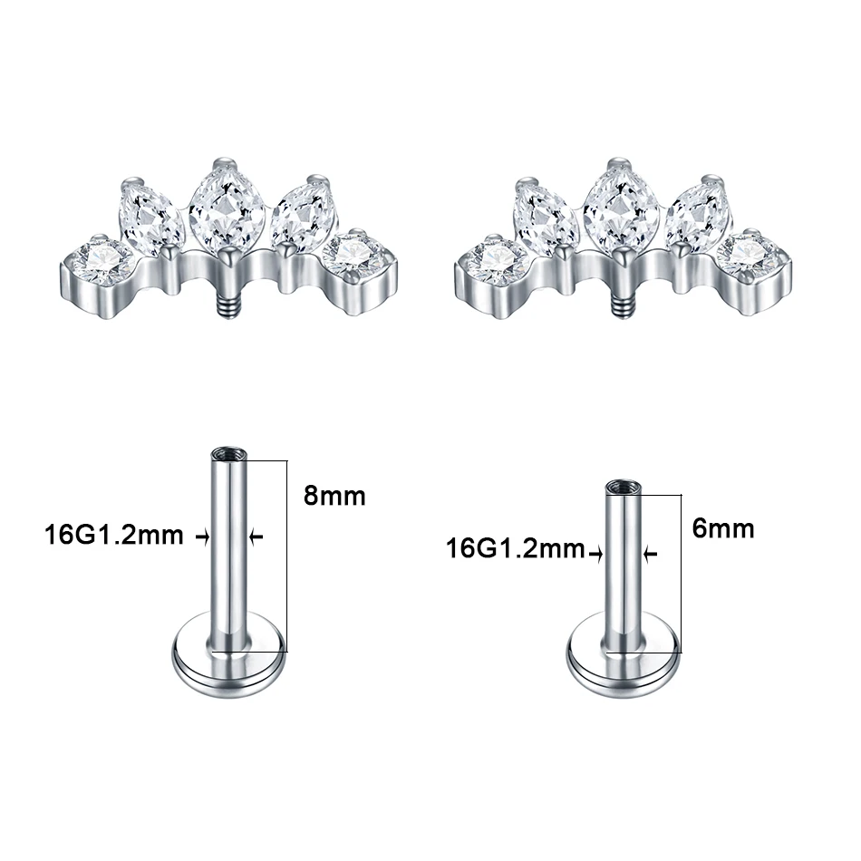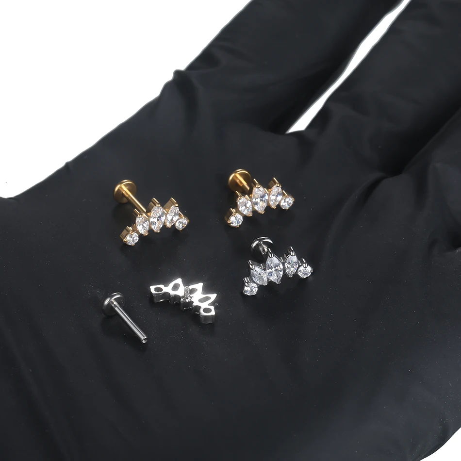 1Pc G23 Titanium Labret Piercing Ear Tragus Helix Piercing Crystal Lip Stud Ring Cartilage Earring Piercing Body Jewelry 16G