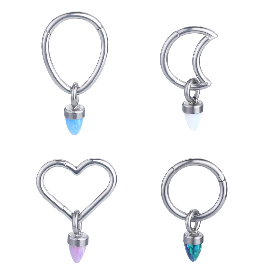 1Pc G23 Titanium Nose Hoop Ring Earrings Nipple Ring Decoration Hinged Segment Ring Ear Cartilage Opal Pendant Women Gift