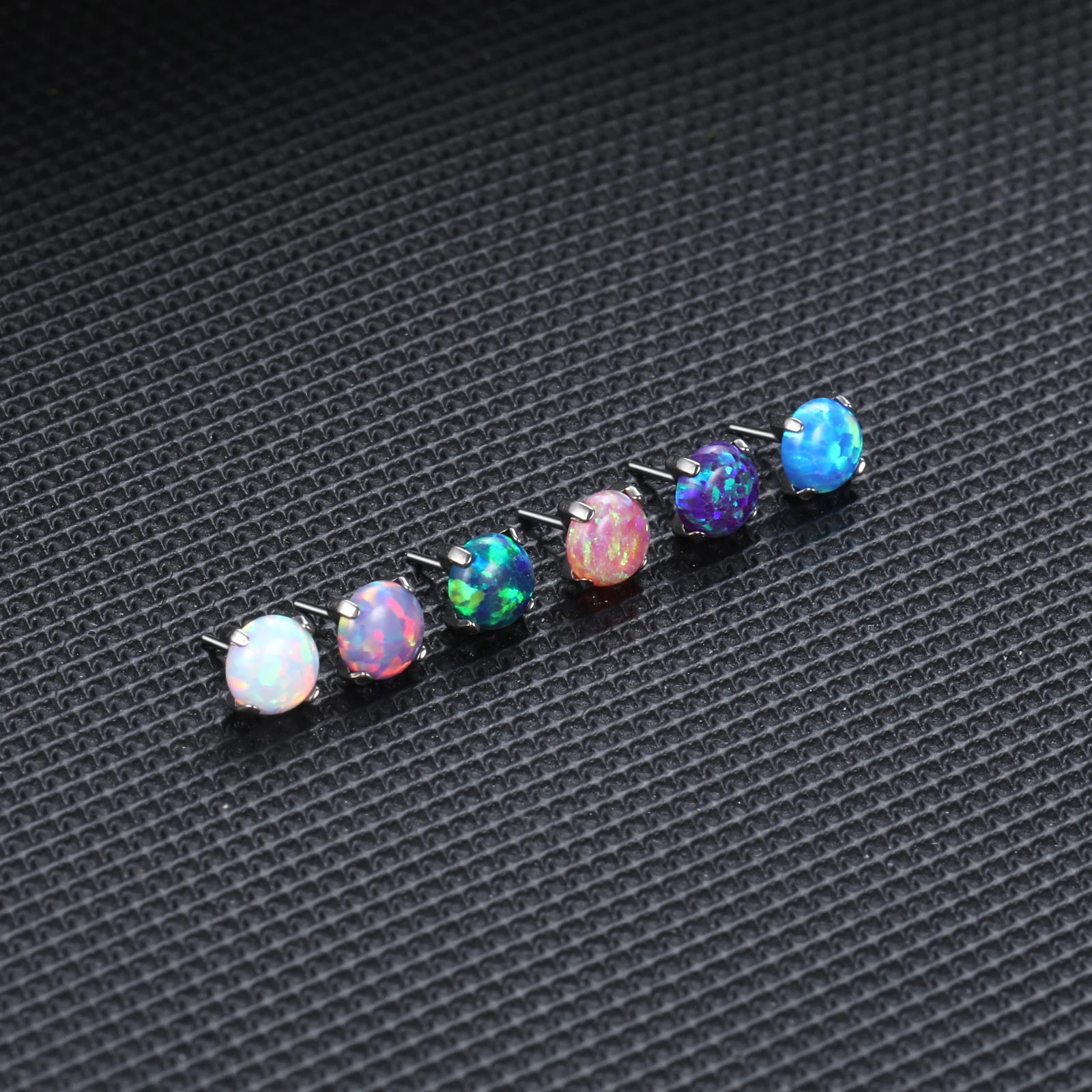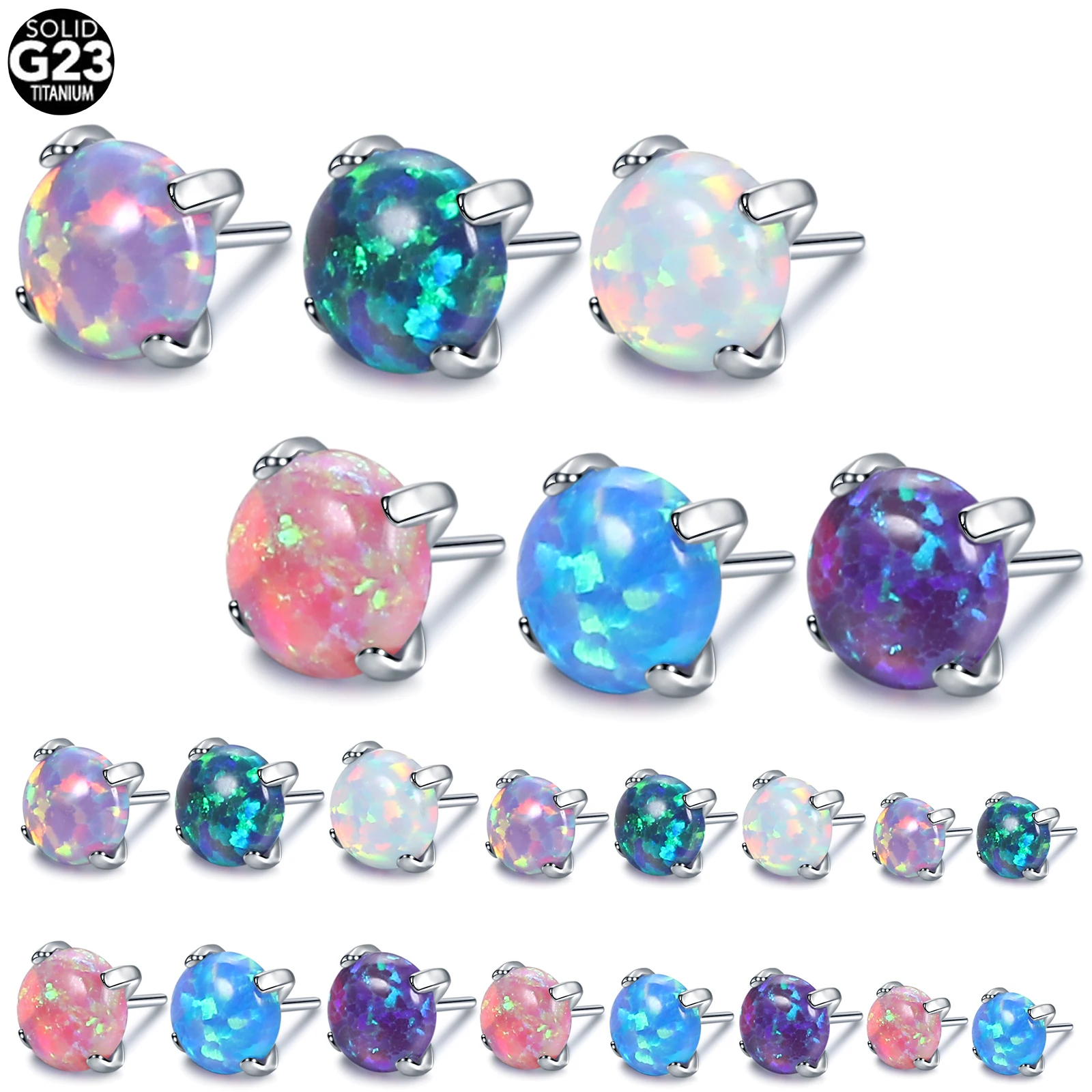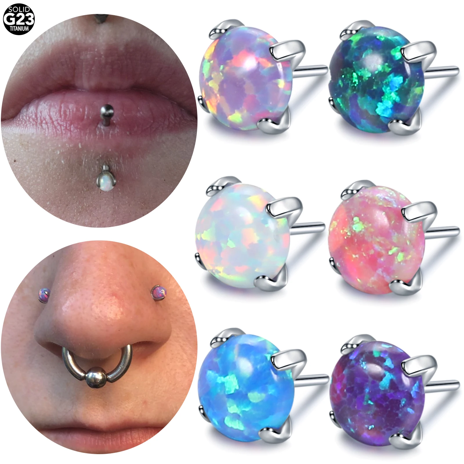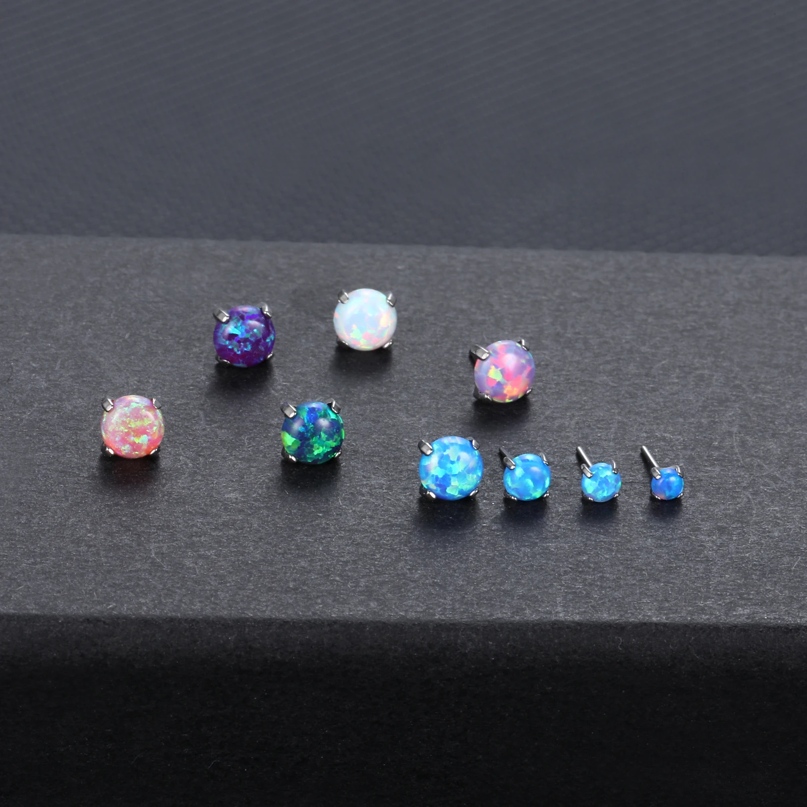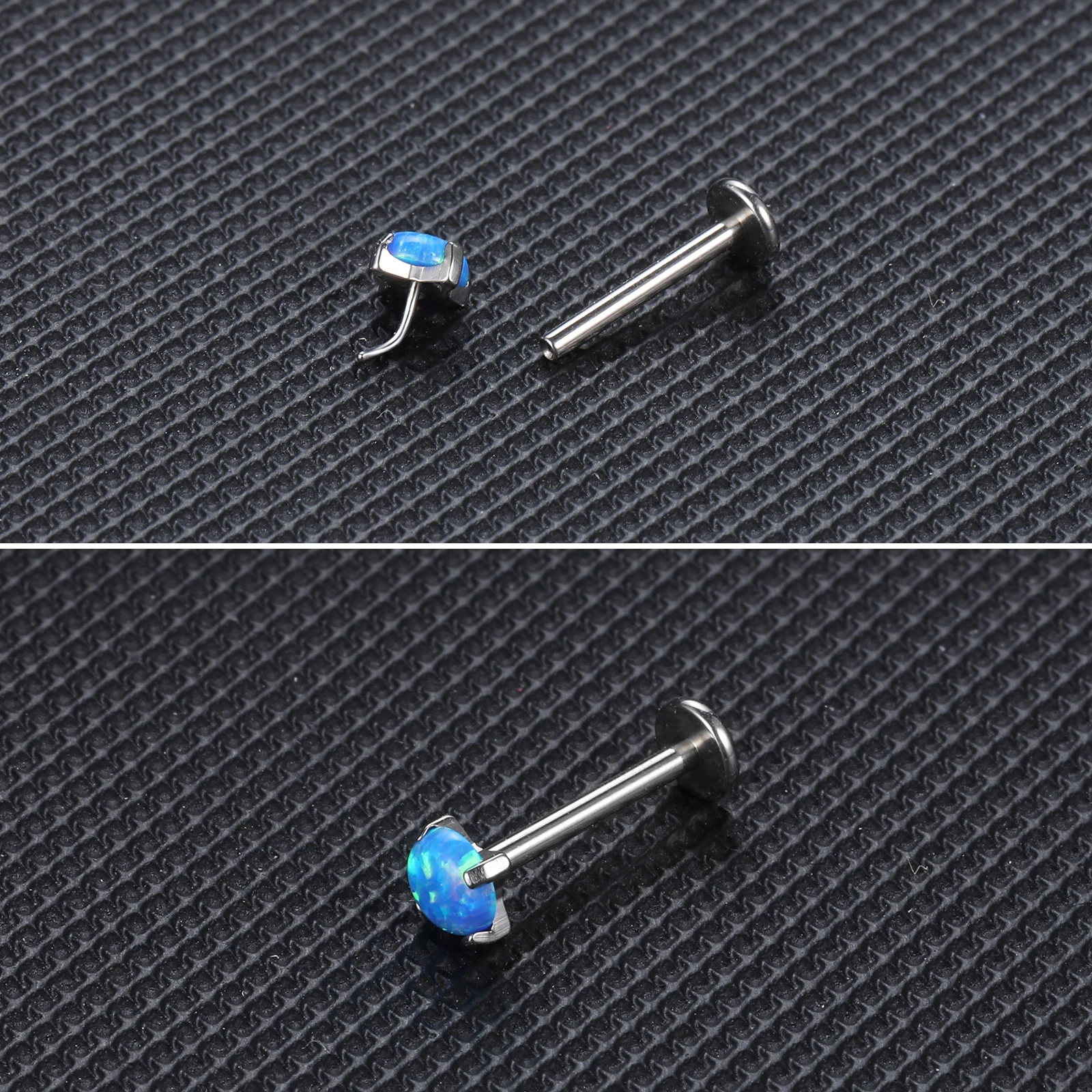 1Pc G23 Titanium Push in Ear Cartilage Tragus Helix Earring Piercing Opal Stone Labret Stud Lip Ring Piercing Body Jewelry