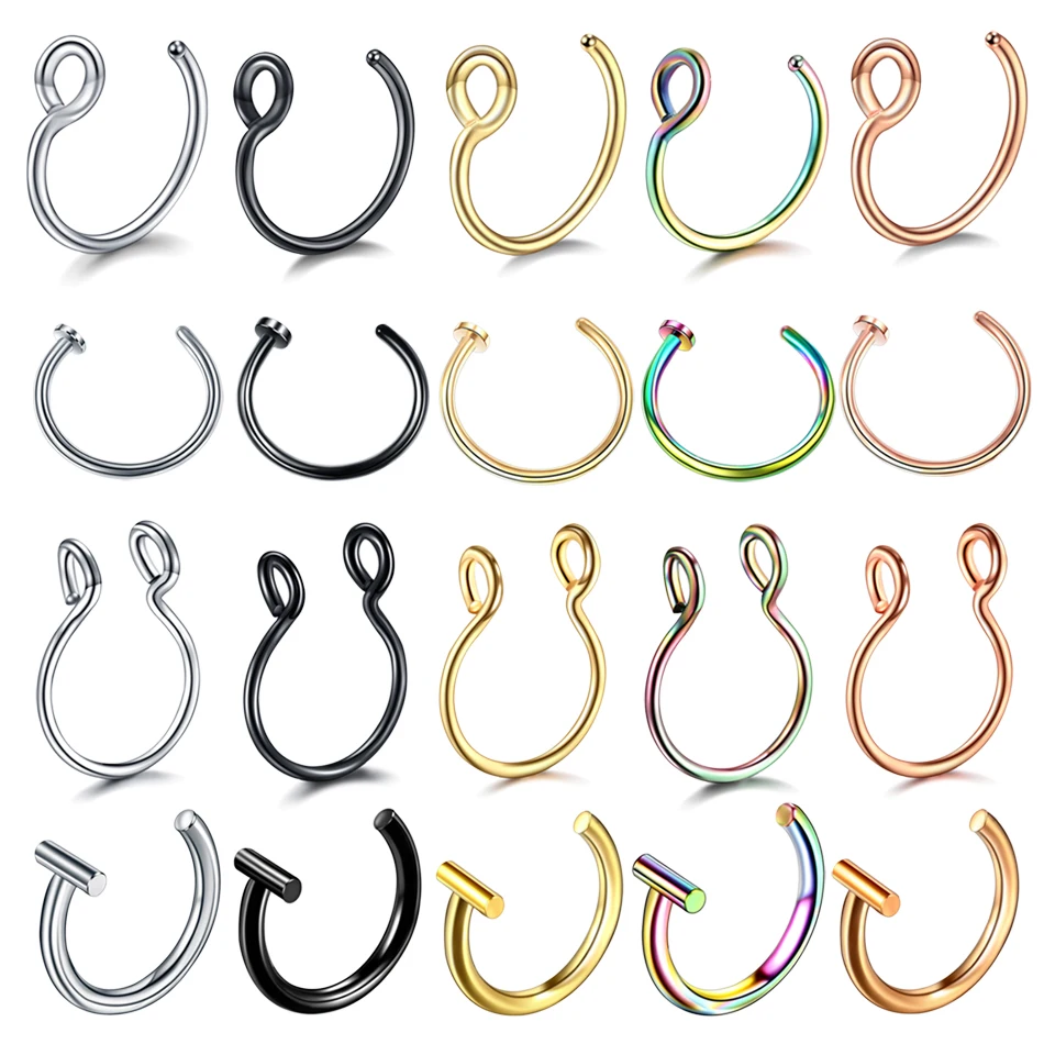 1Pc Stainless Steel Nose Rings Fake Nose Piercings Hoop Ear Piercing Tragus Nariz Rings Ear Cartiliage Tragus Sexy Body Jewelry
