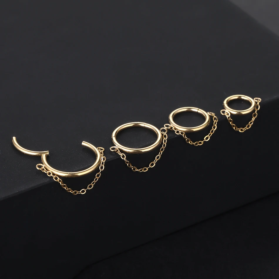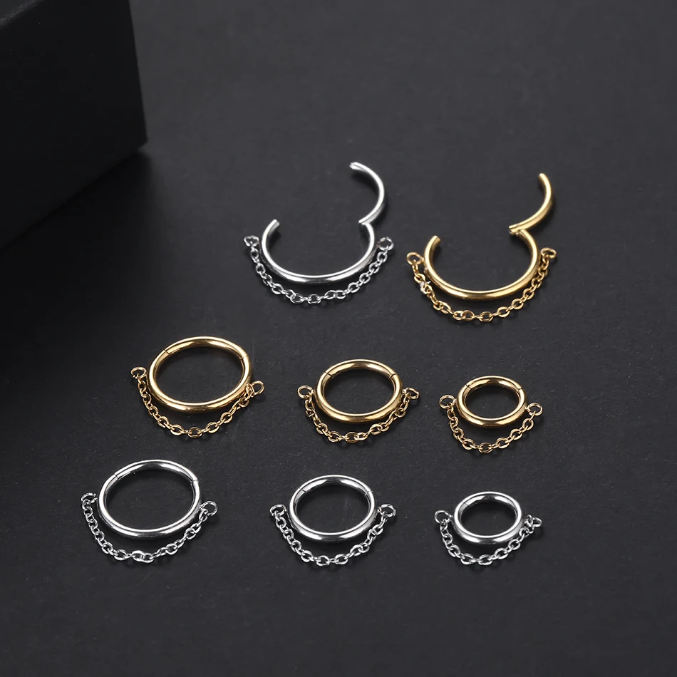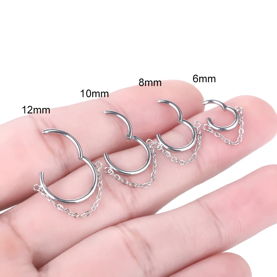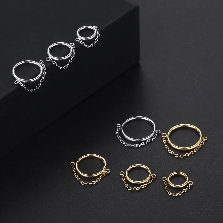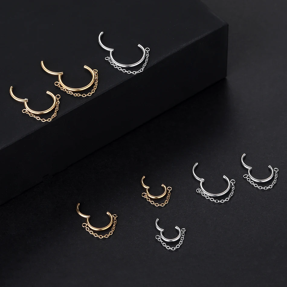 1PC Surgical Steel Hinged Segment Nose Clicker Septum Ring with Chain Nose Ring Cartilage Earring Helix Piercing Body Jewelry