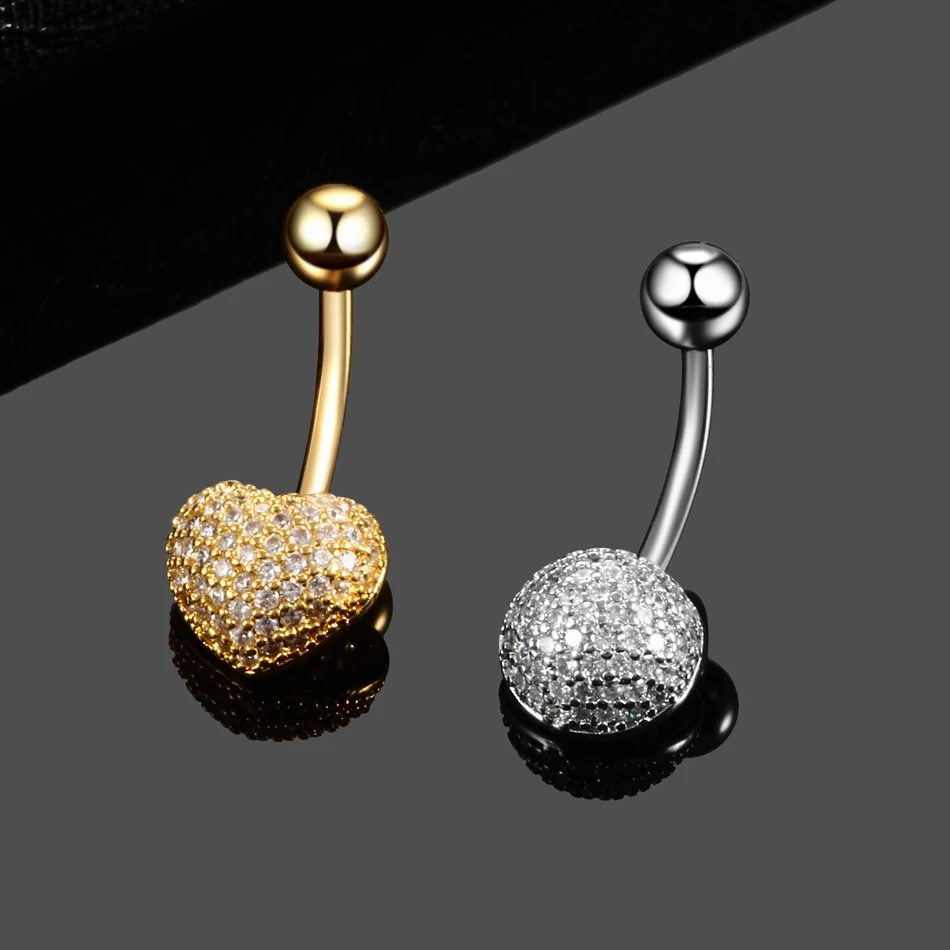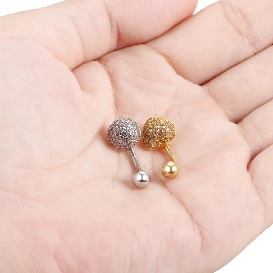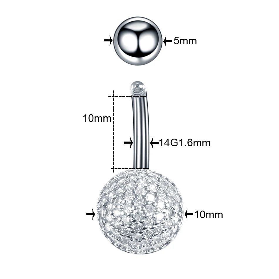 1Pc Surgical Steel Navel Piercing Dangling Navel Belly Button Ring Oreja 14G Double Round Cubic Zirconia Belly Piercing Jewelry